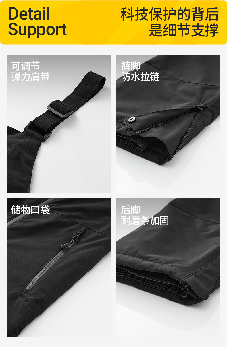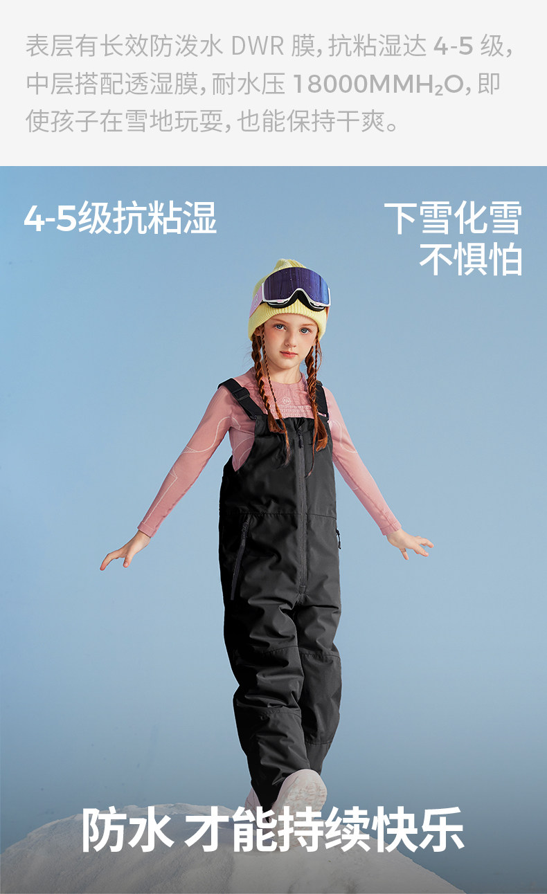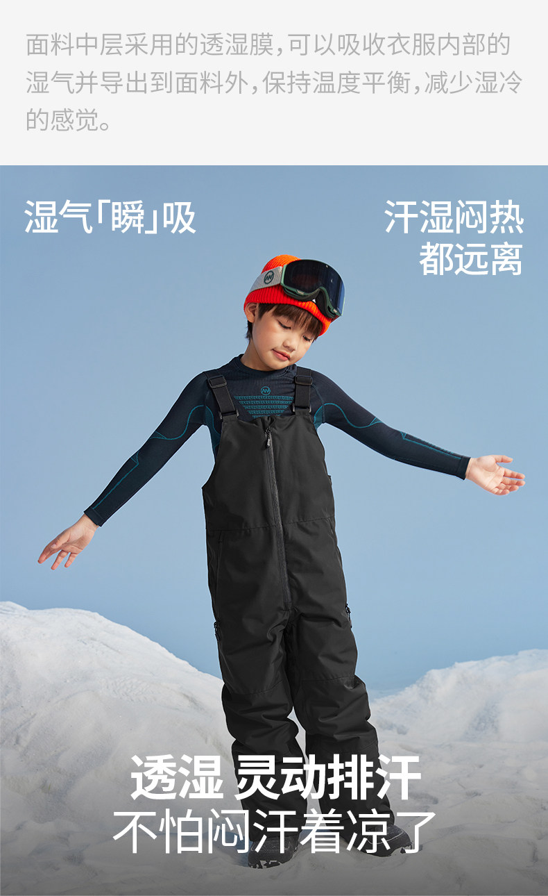 Nanend Nanen Ice and Snow Warrior Single and Double Board Children's Ski Pants, Warm and Waterproof Black Ski Overalls