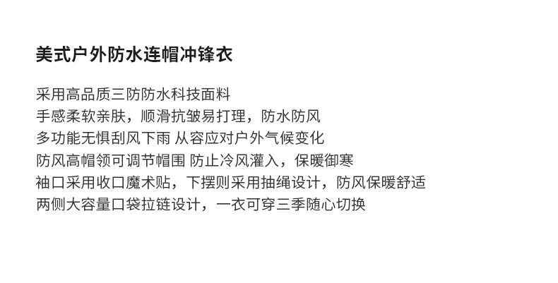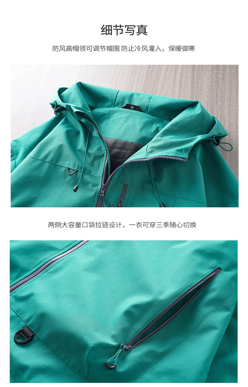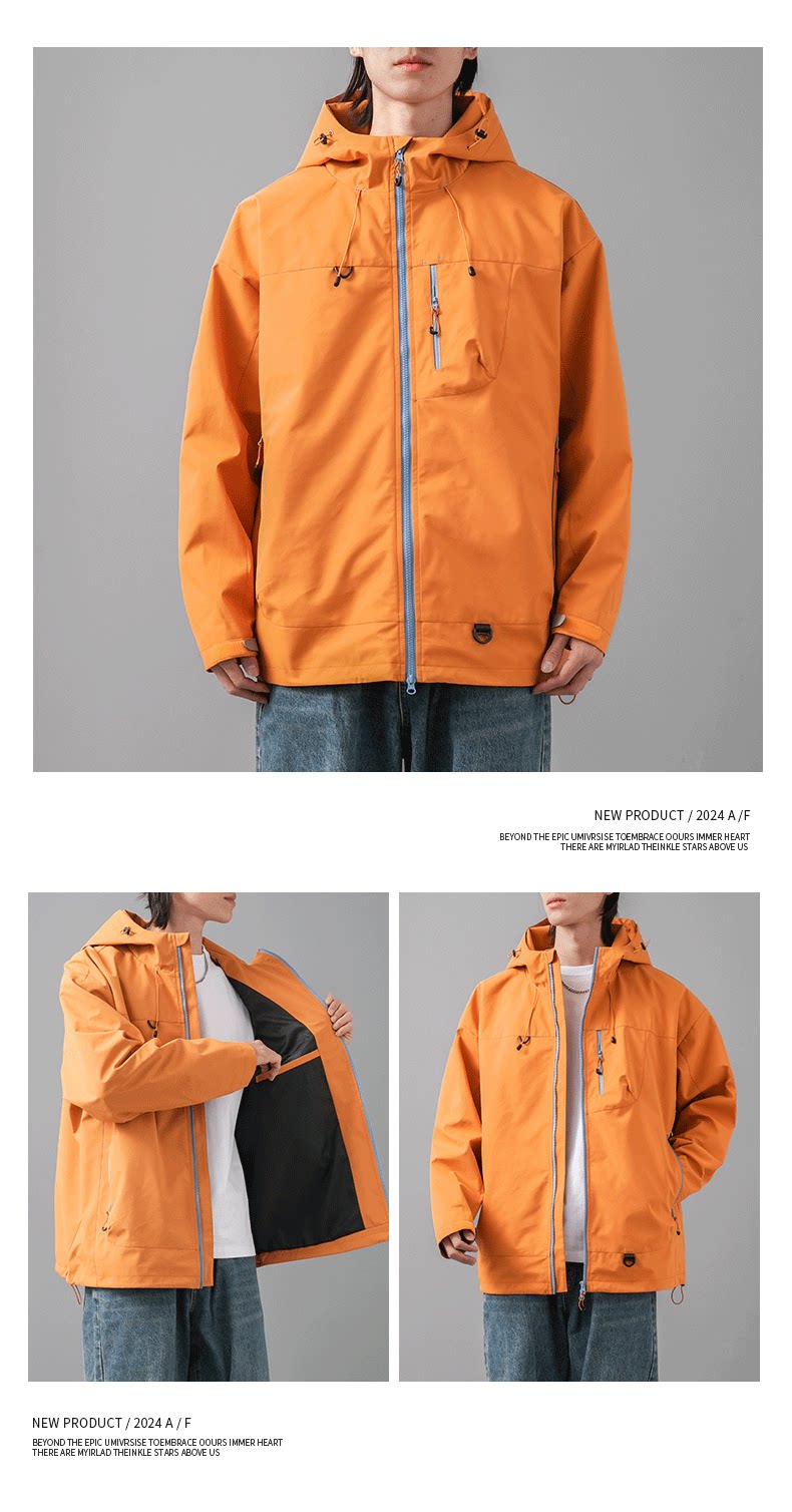 American-Style Three-Proof Jacket for Men, Spring and Autumn, Youth Outdoor Windproof and Waterproof Mountaineering Clothing, Workwear Jacket, Hooded Coat