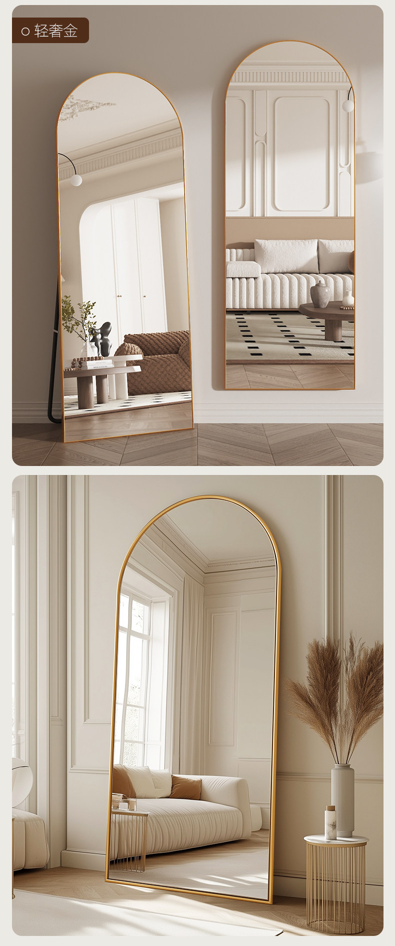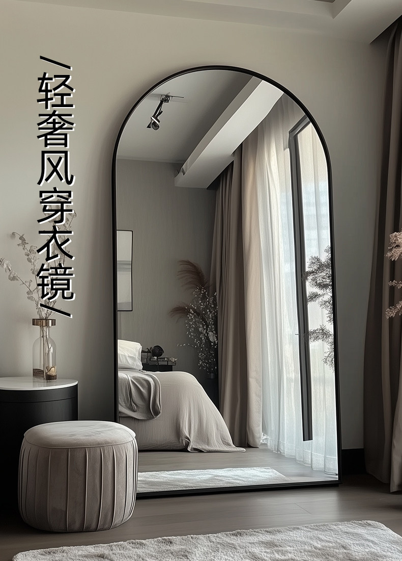 Luxurious and High-End Full-Length Floor-Standing Dressing Mirror for Home Use, Suitable for Girls' Bedrooms, Wall-Mounted, Popular in Clothing Stores for Trying on Clothes