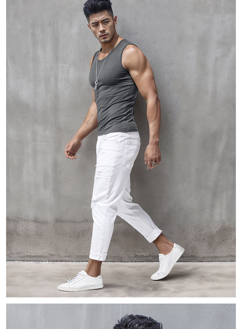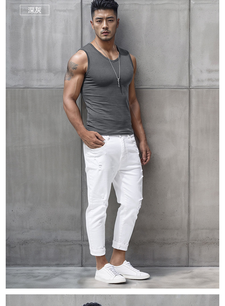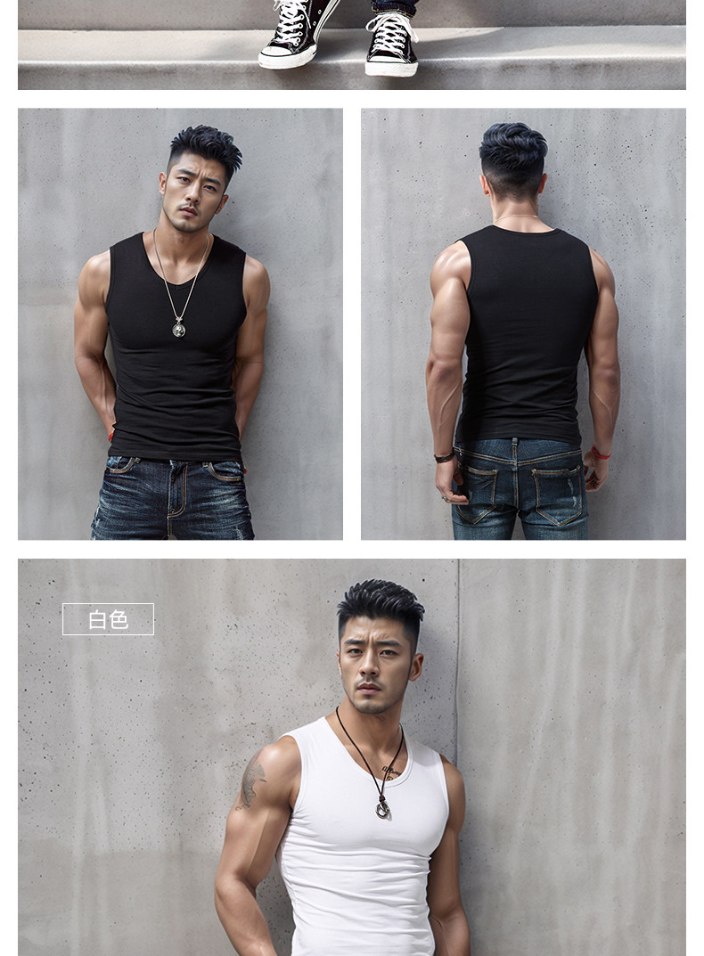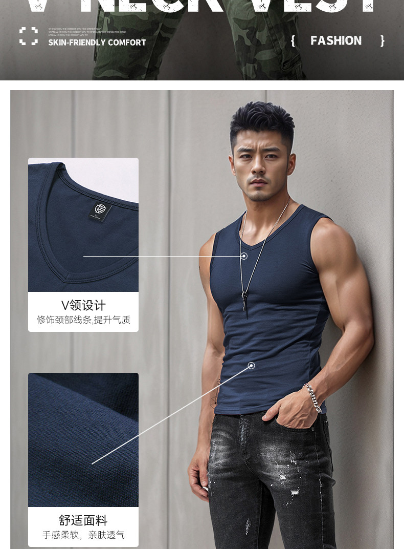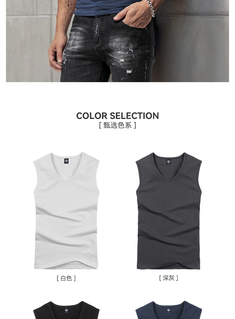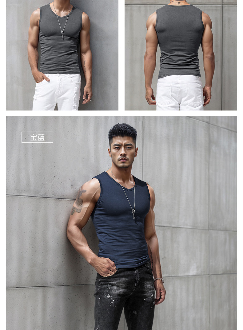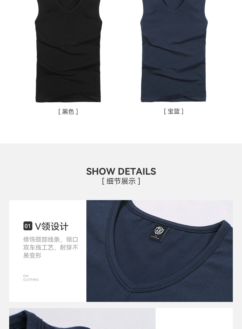 Men's Wide Shoulder Vest Pure Color Cotton V Neck Bottoming Sleeveless T-Shirt Men's Tight Sports Fitness Slim Summer Trbottomy