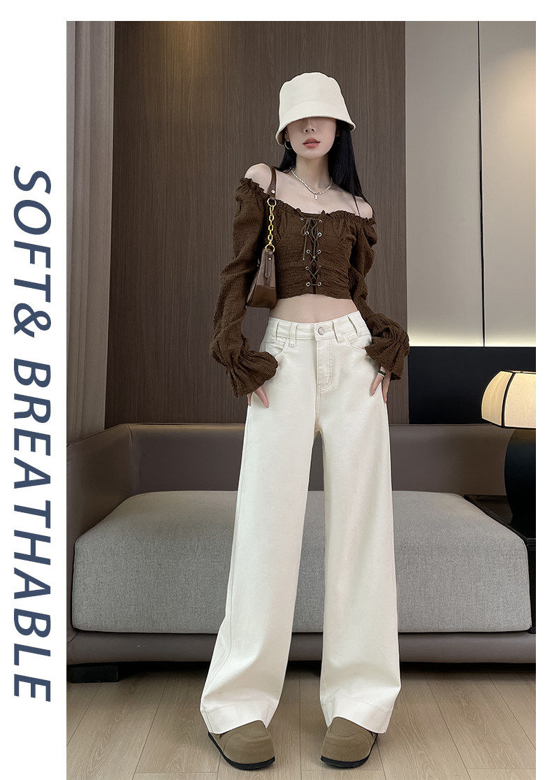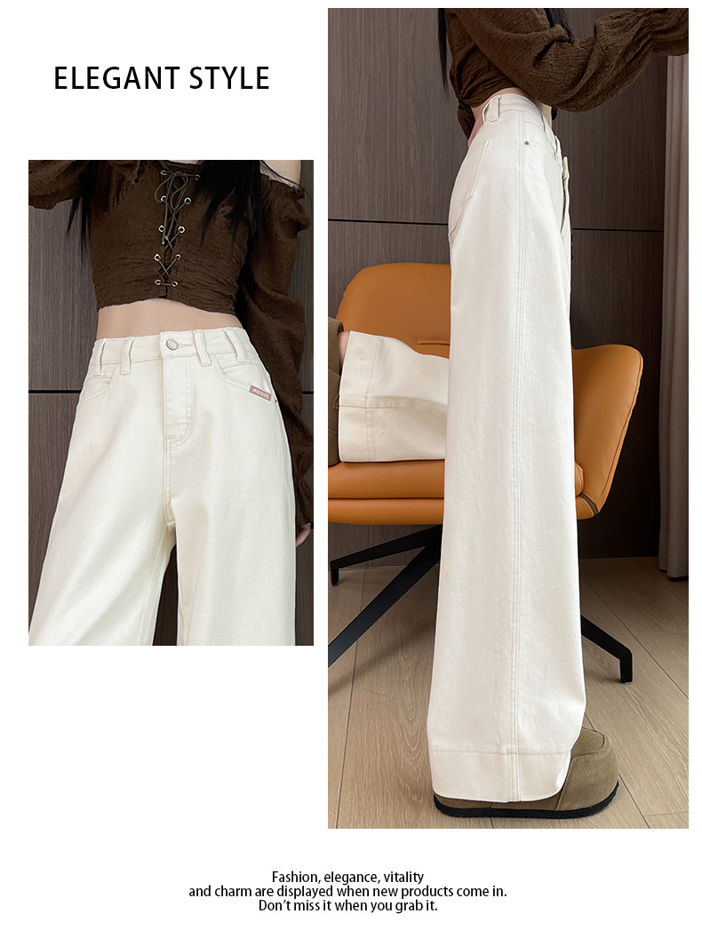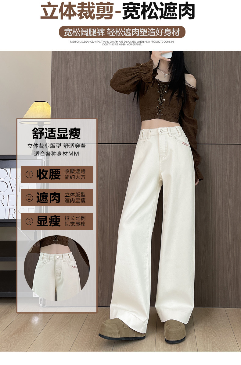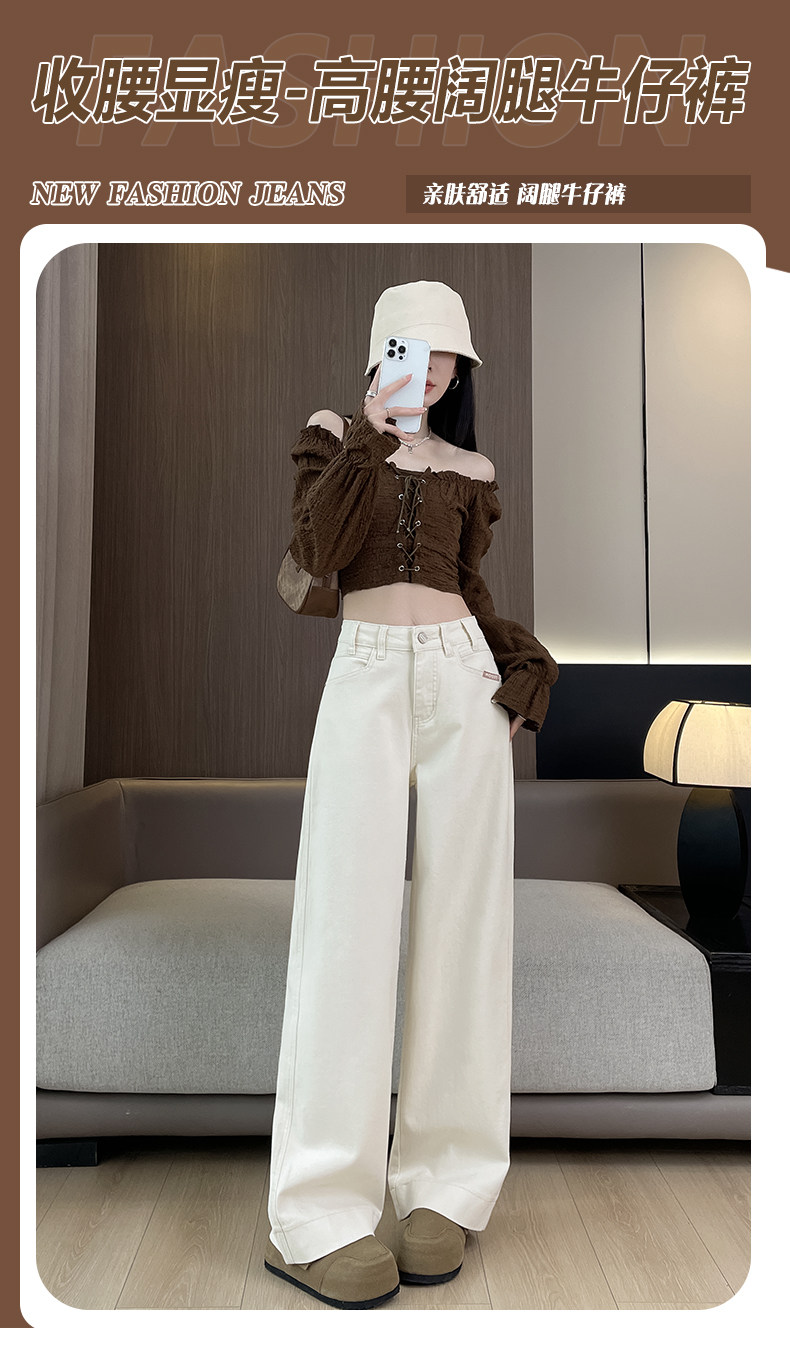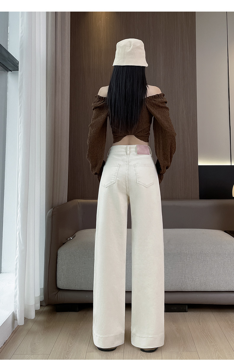 Apricot High-Waisted Narrow Wide-Leg Jeans for Women 2026 Spring and Autumn New Loose Floor-Length Pants with Drapey Straight-Leg Trousers