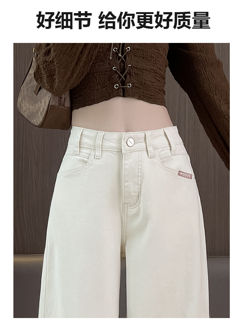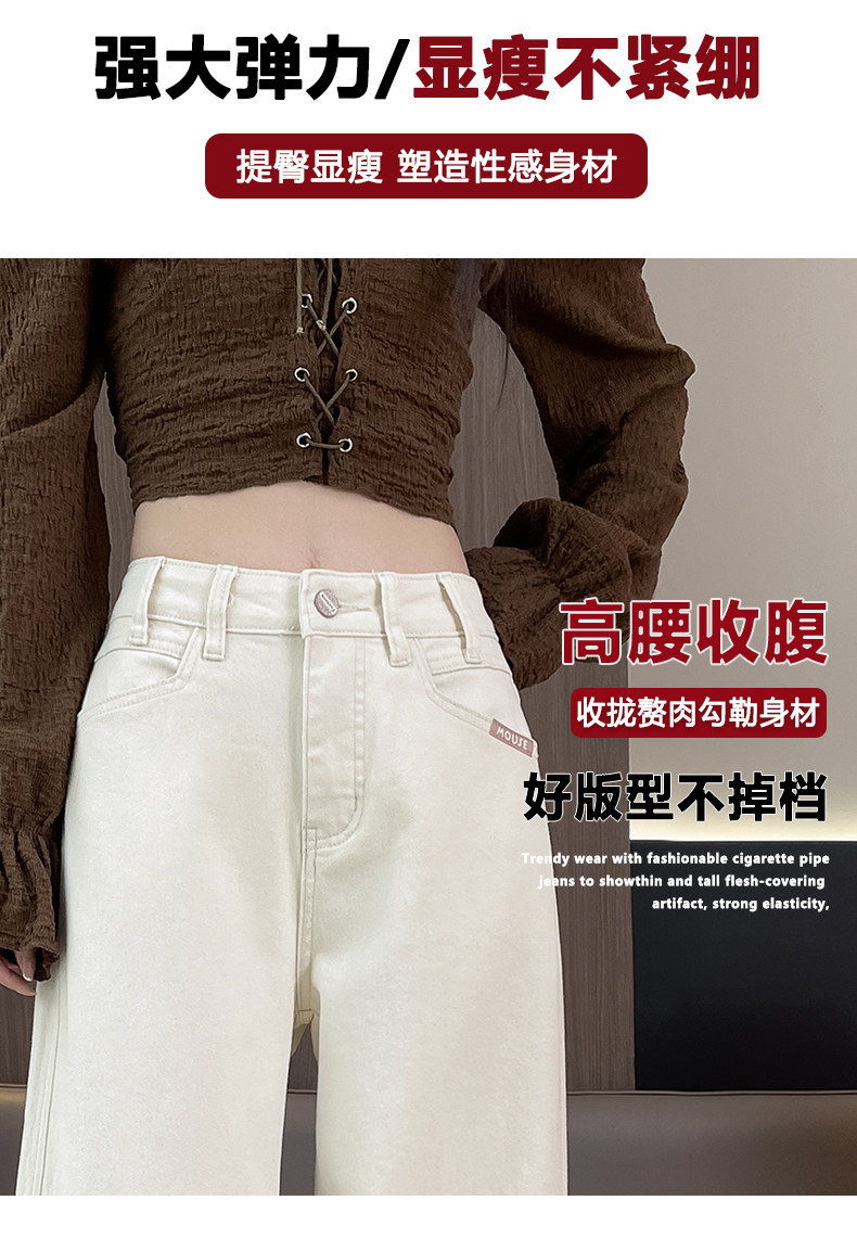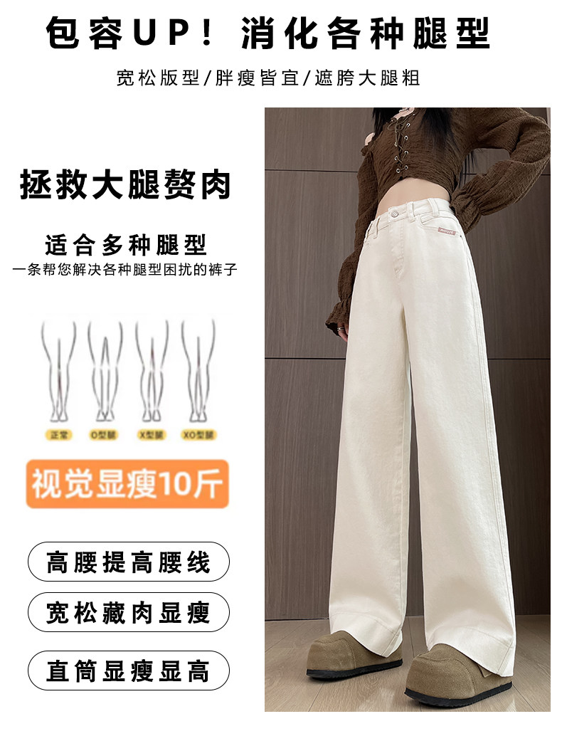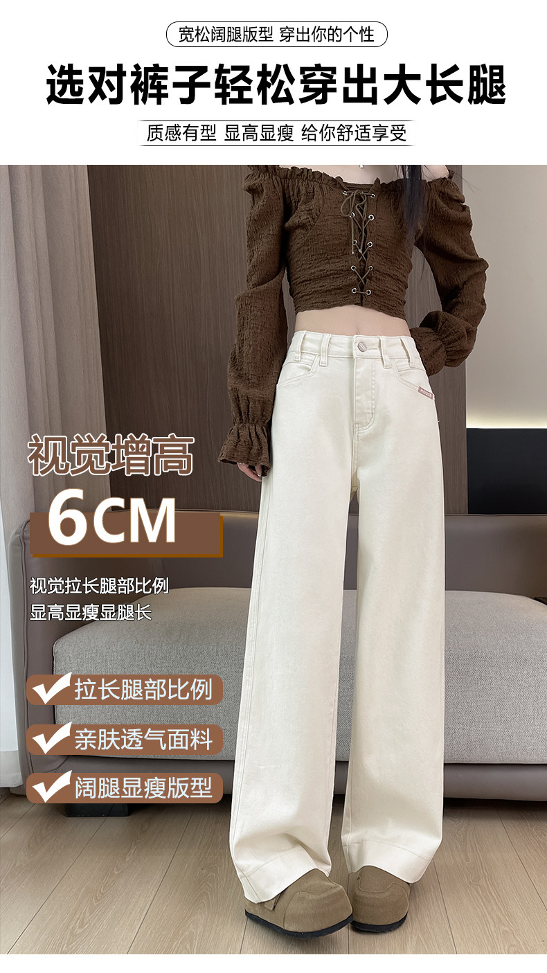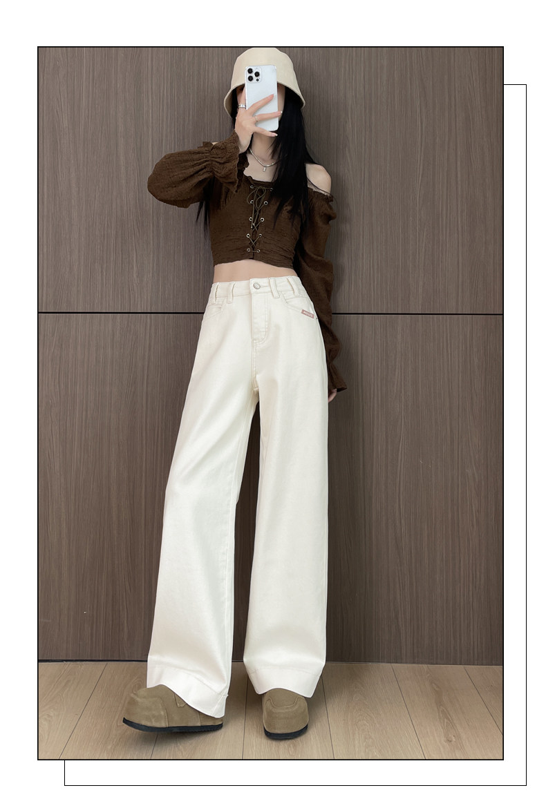 Apricot High-Waisted Narrow Wide-Leg Jeans for Women 2026 Spring and Autumn New Loose Floor-Length Pants with Drapey Straight-Leg Trousers