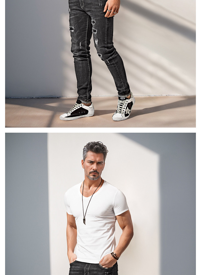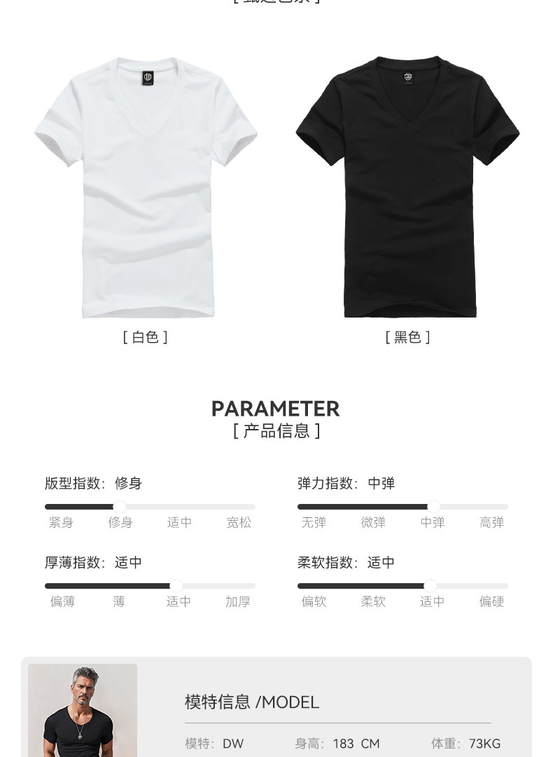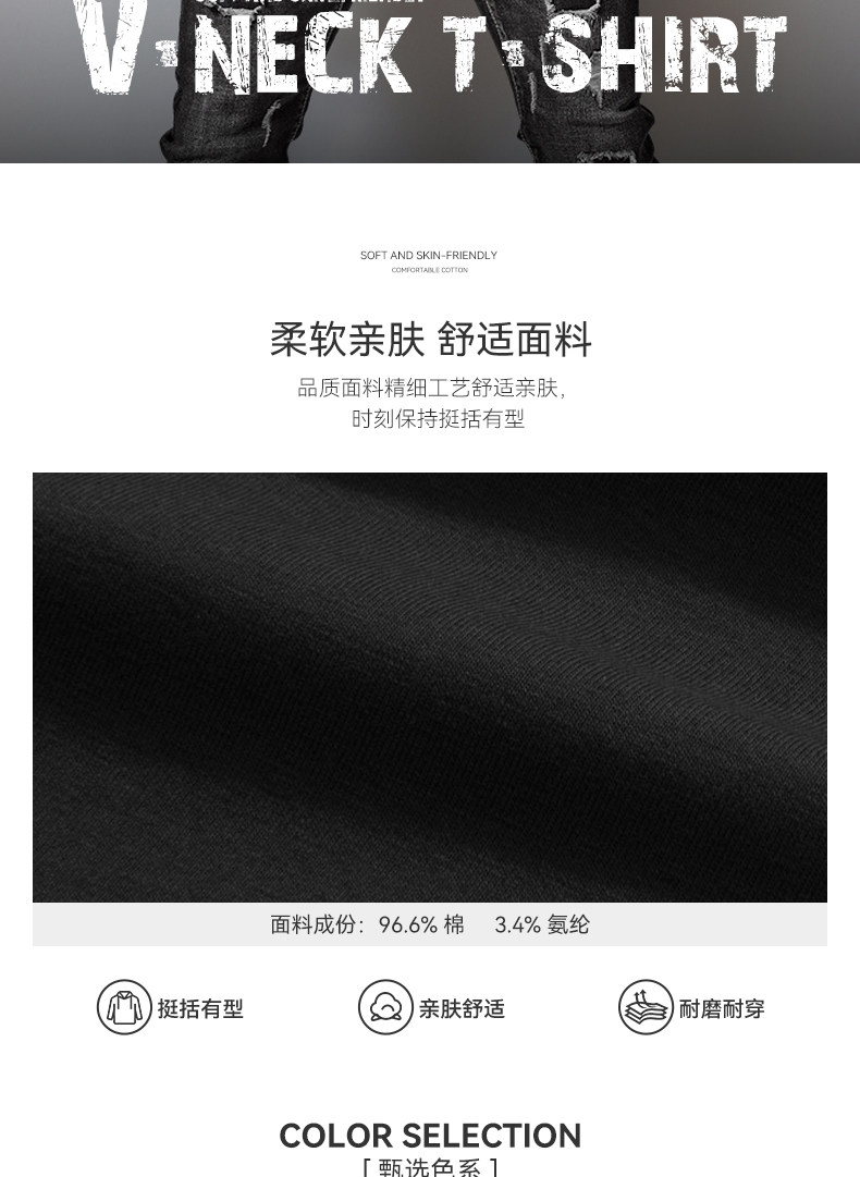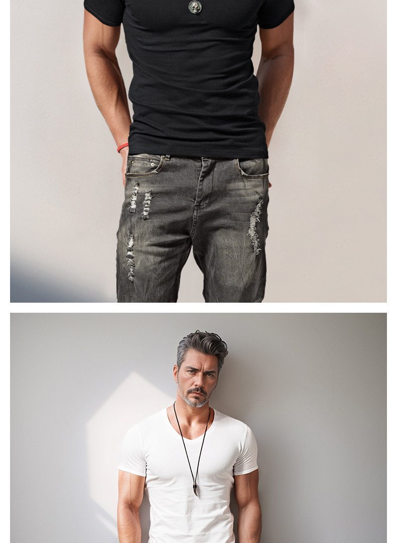 V-Neck Short-Sleeve T-Shirt for Men, Solid Color Cotton, Slim Fit, Tight-Fitting Clothing, Half-Sleeve Tee, Stretchy Base Shirt, Sports Summer Top