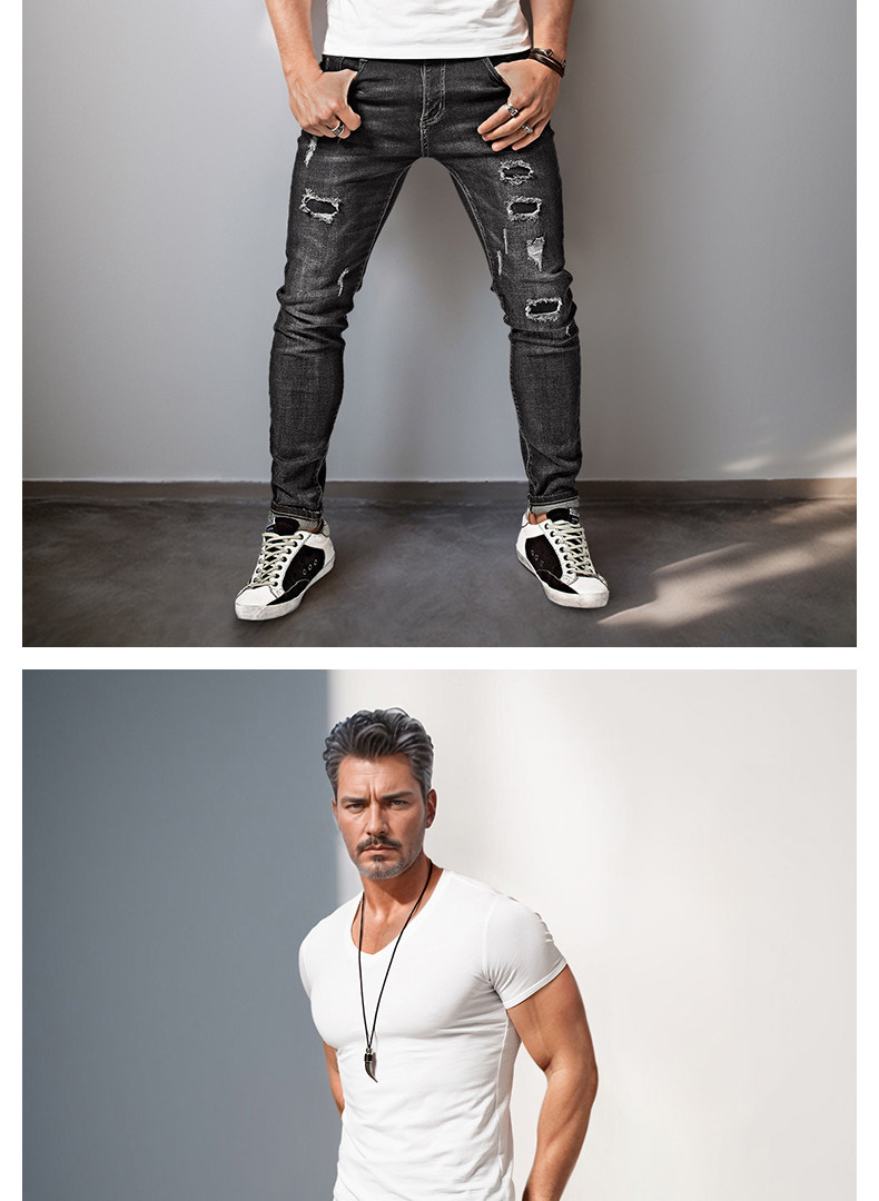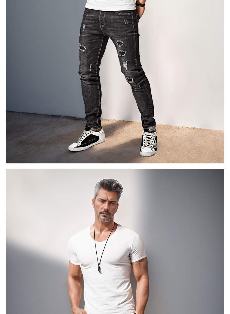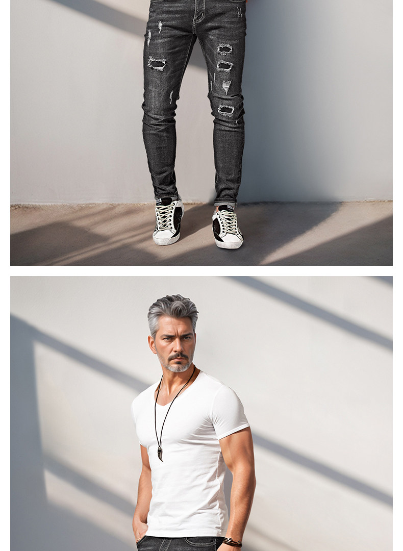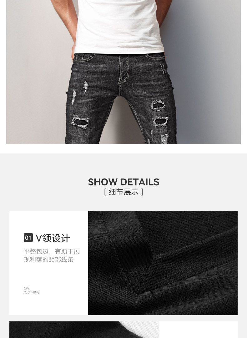 V-Neck Short-Sleeve T-Shirt for Men, Solid Color Cotton, Slim Fit, Tight-Fitting Clothing, Half-Sleeve Tee, Stretchy Base Shirt, Sports Summer Top