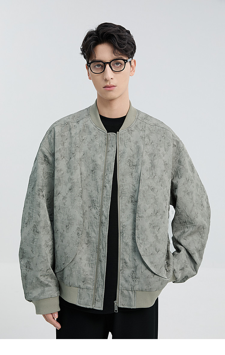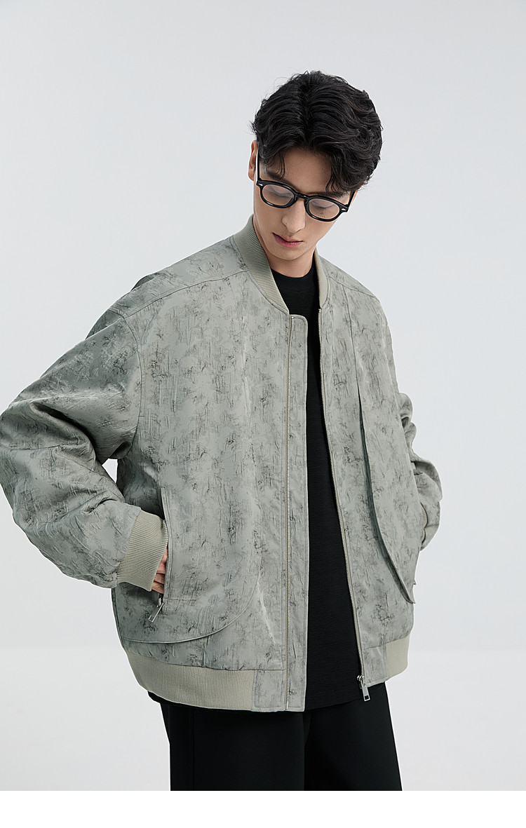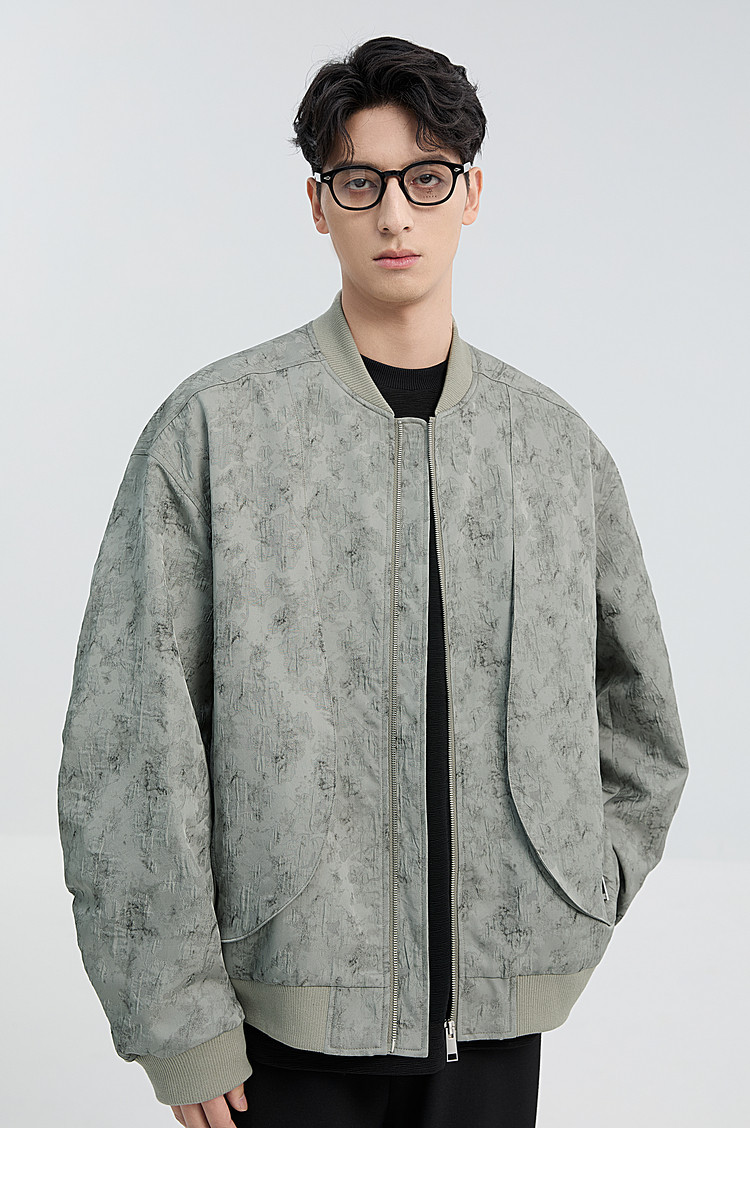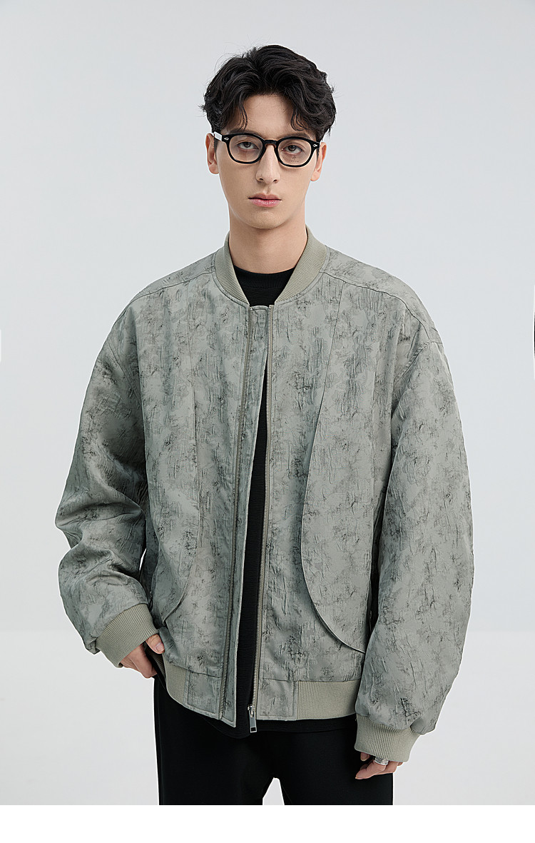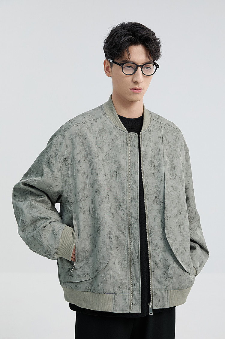 Mulberry silk high-end jacquard loose-leaf baseball collar jacket for men 25 spring and autumn new design fashionable loose jacket