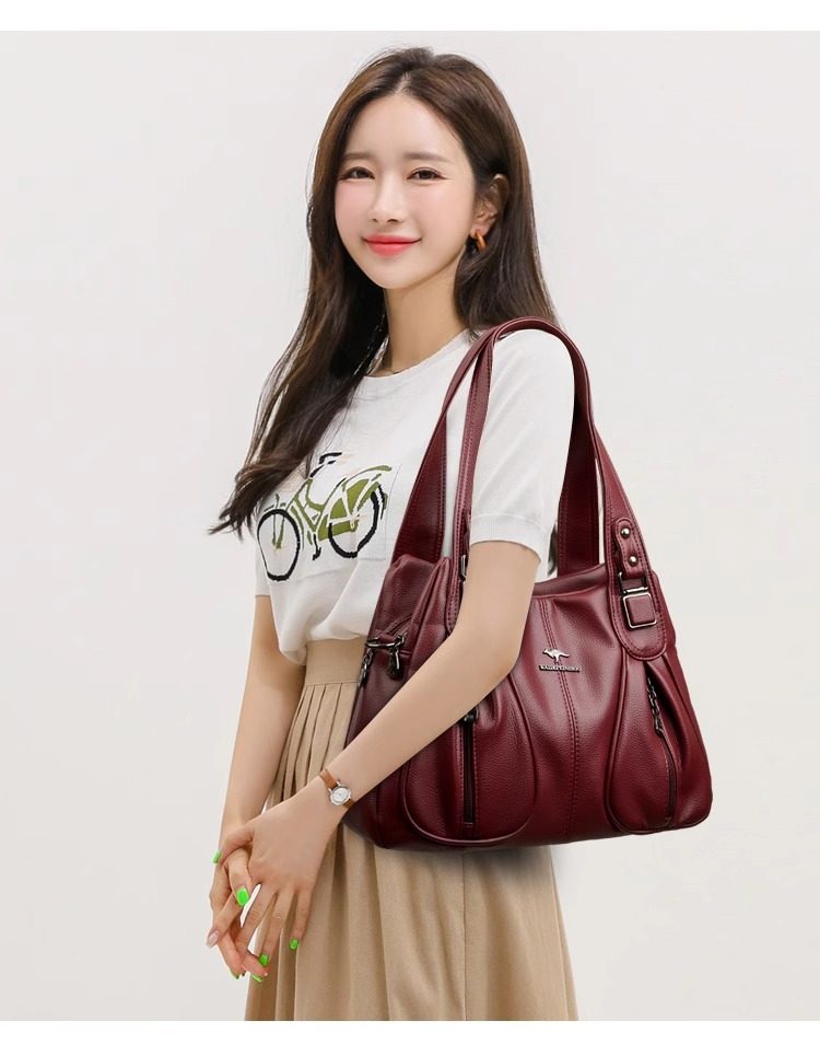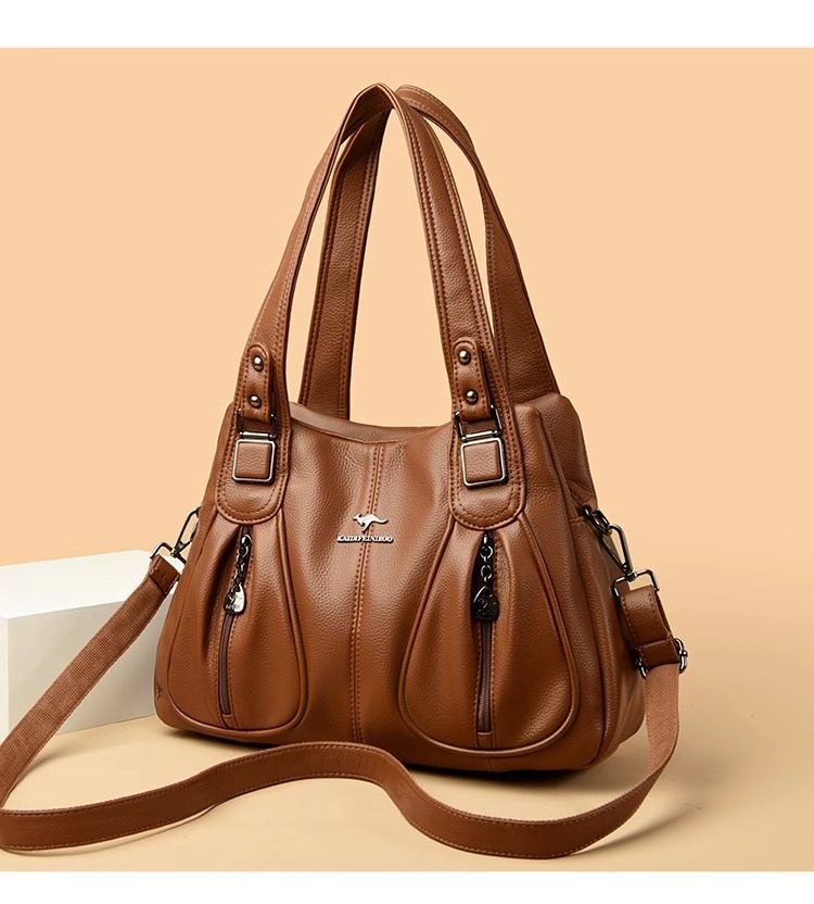 Hong Kong I.Tgreg genuine leather women's bag, fashionable middle-aged mother bag, versatile handbag, soft leather shoulder crossbody large bag