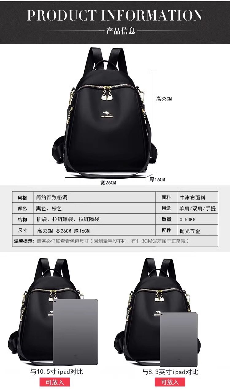Hong Kong I.Tgreg Fashion Women's Backpack Casual High-End Travel Canvas Small Backpack Oxford Cloth Versatile School Bag