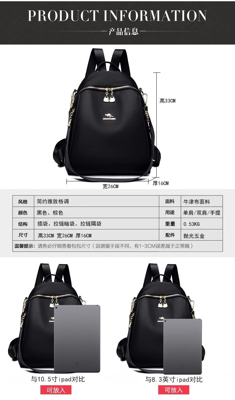 Hong Kong I.Tgreg Casual Large-Capacity High-End Women's Backpack Oxford Cloth School Bag Versatile Fashionable Canvas Bag