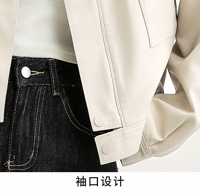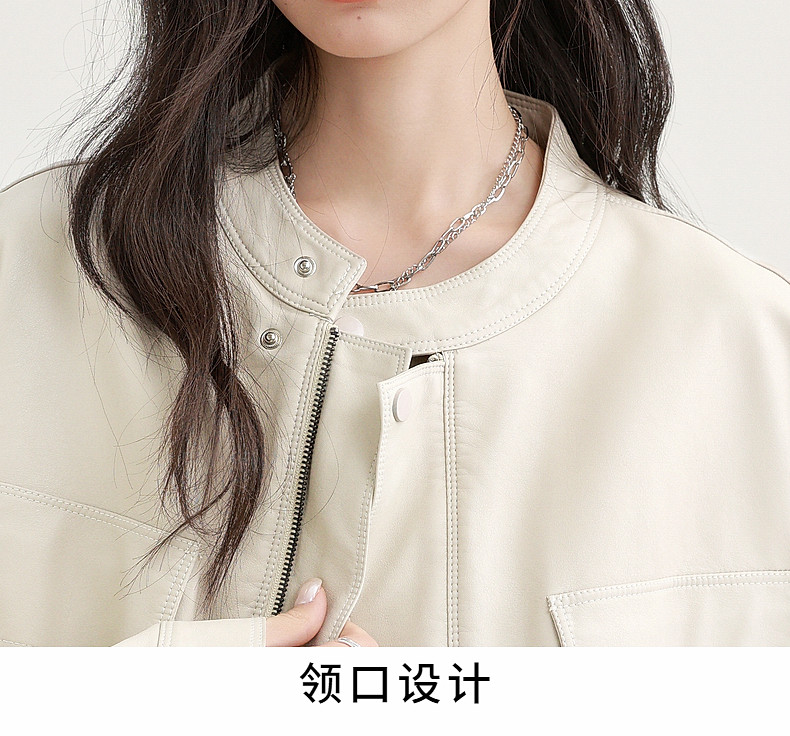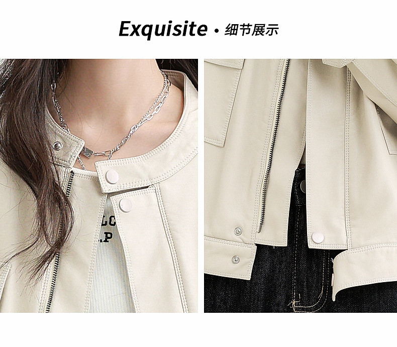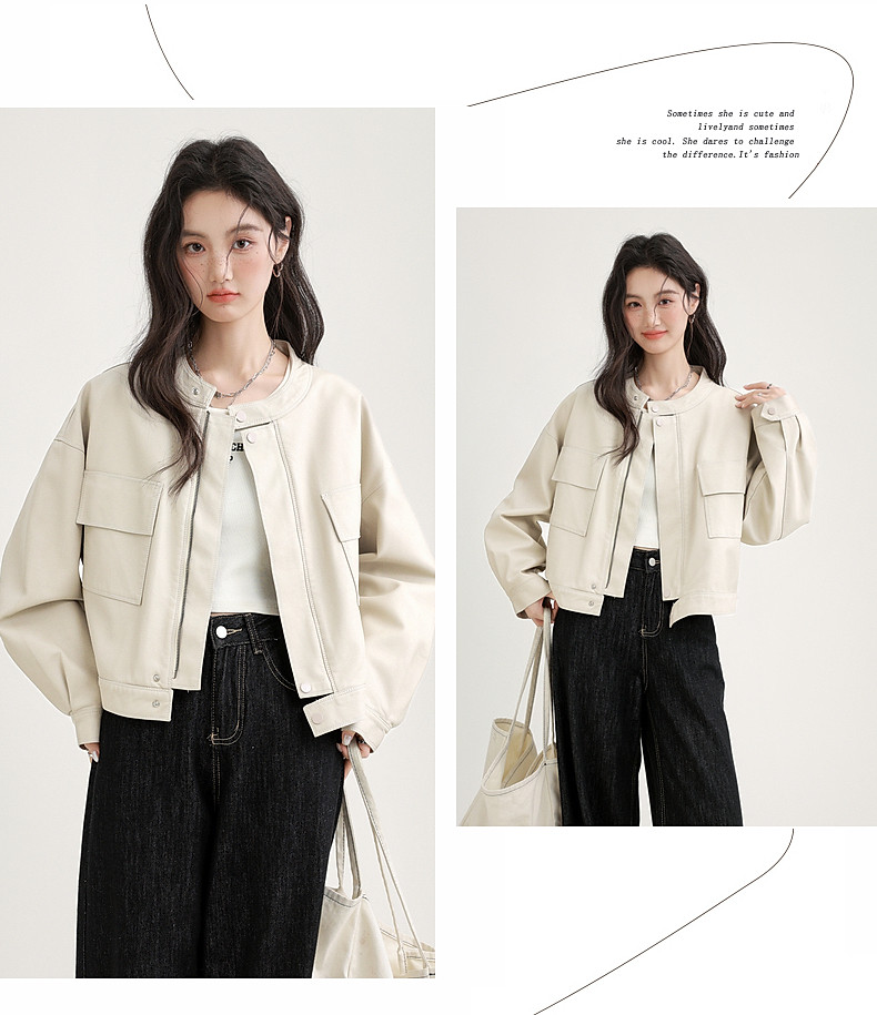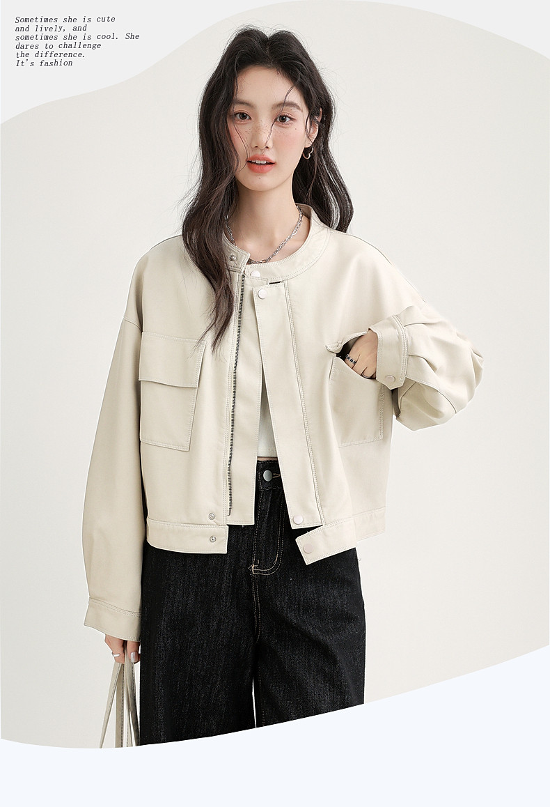 2025 Spring and Autumn New Vintage Stand Collar Pu Leather Jacket for Women, Loose Fit, Stylish Biker Style, Apricot Leather Jacket Top