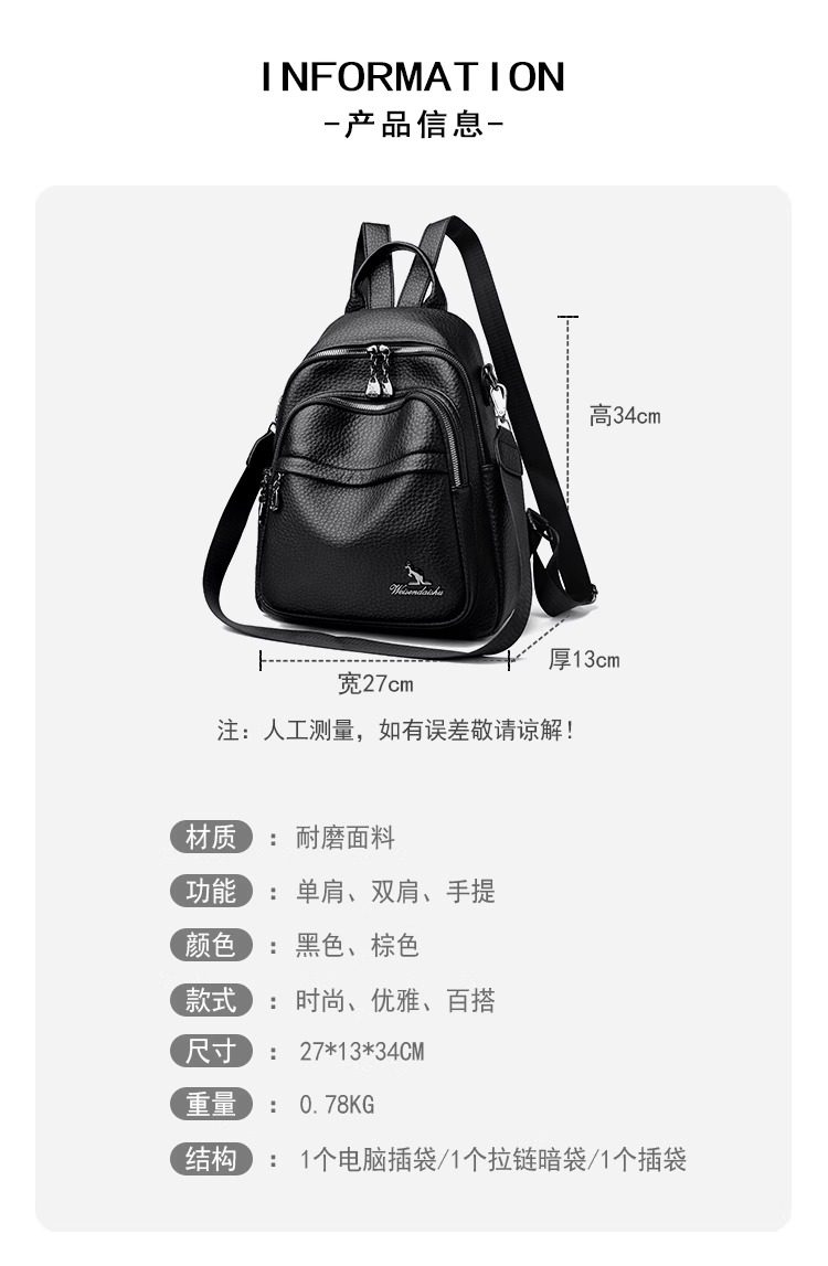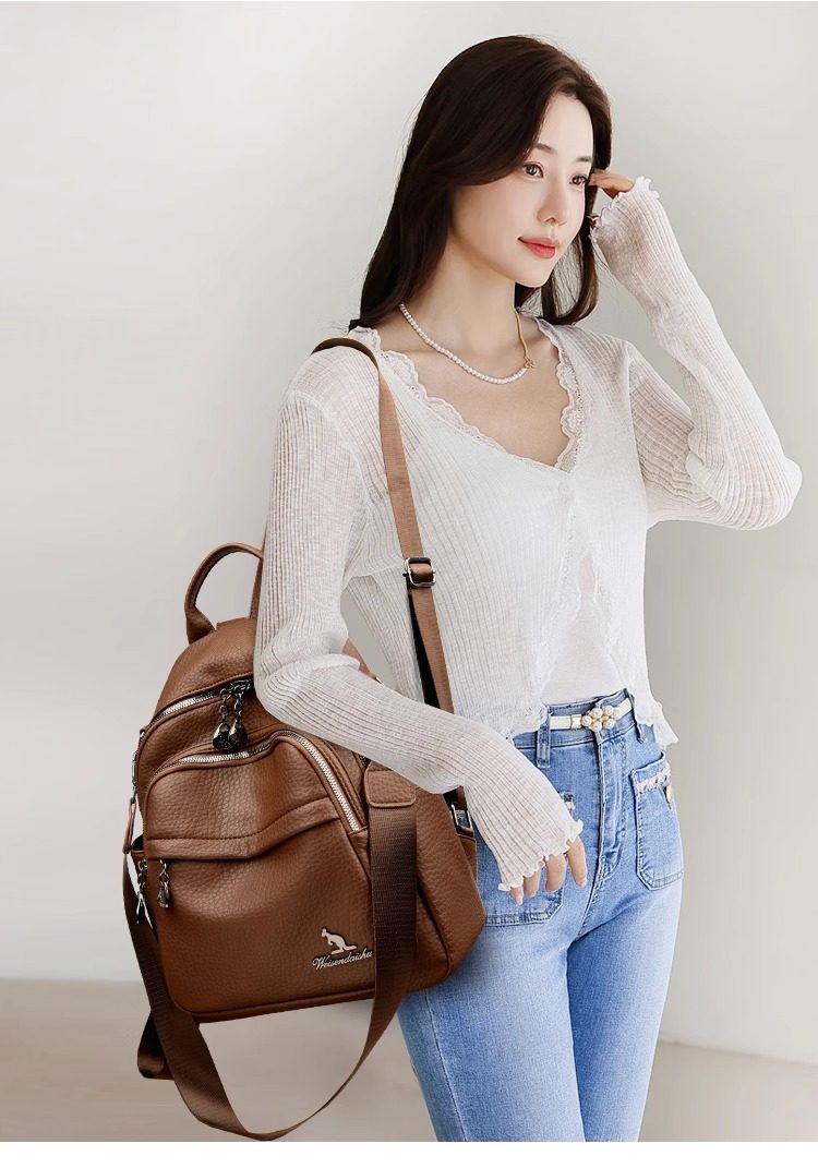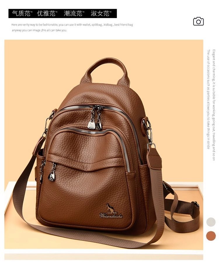 Hong Kong I.Tgreg Women's Fashion Backpack Genuine Leather Lightweight Versatile Mother Backpack Soft Leather Casual Travel Bag