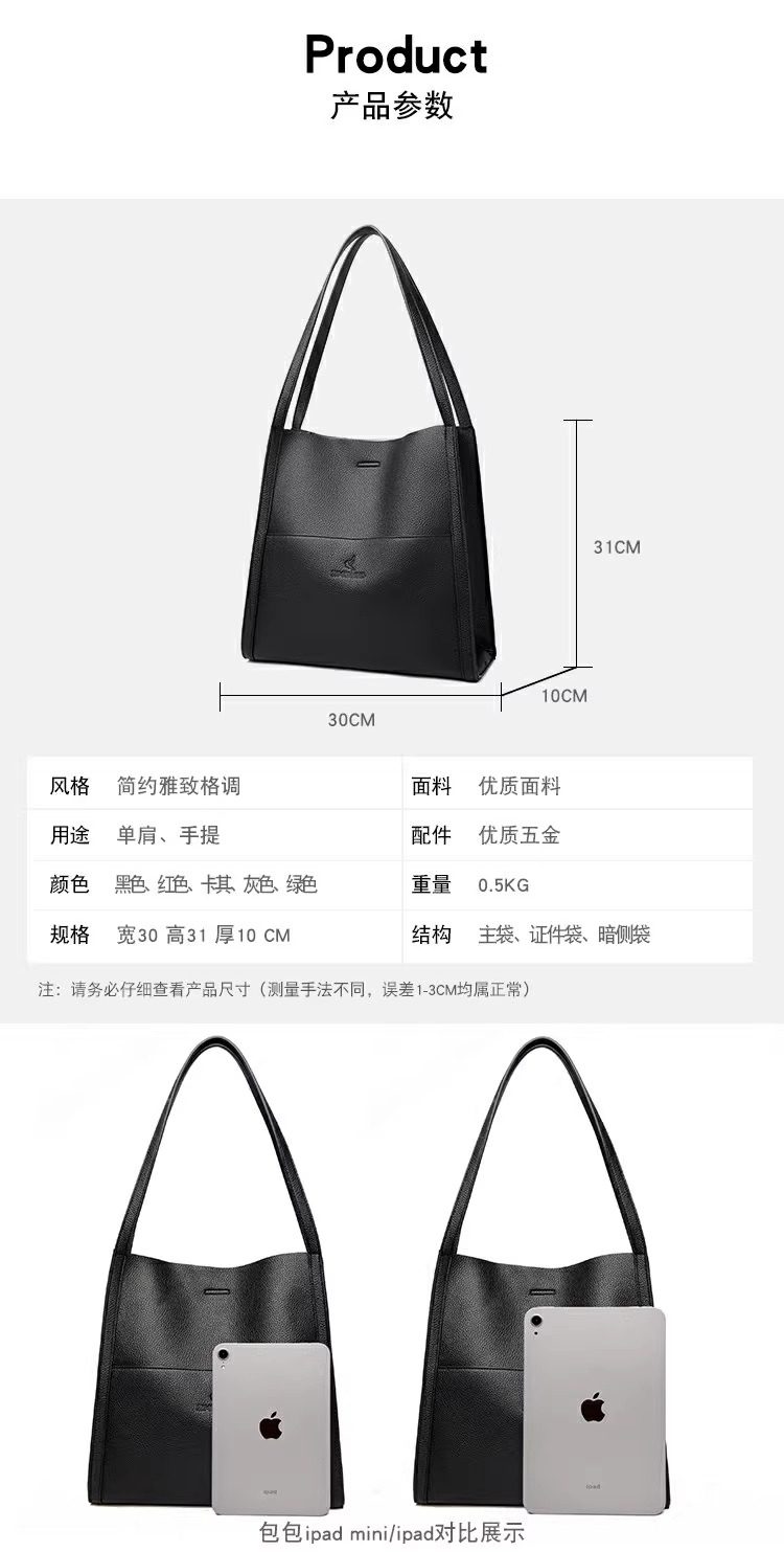 Hong Kong I.Tgreg Women's Genuine Leather Commuter Bag Cowhide Tote Bag Versatile Large Capacity Shoulder Bag Simple Large Bag
