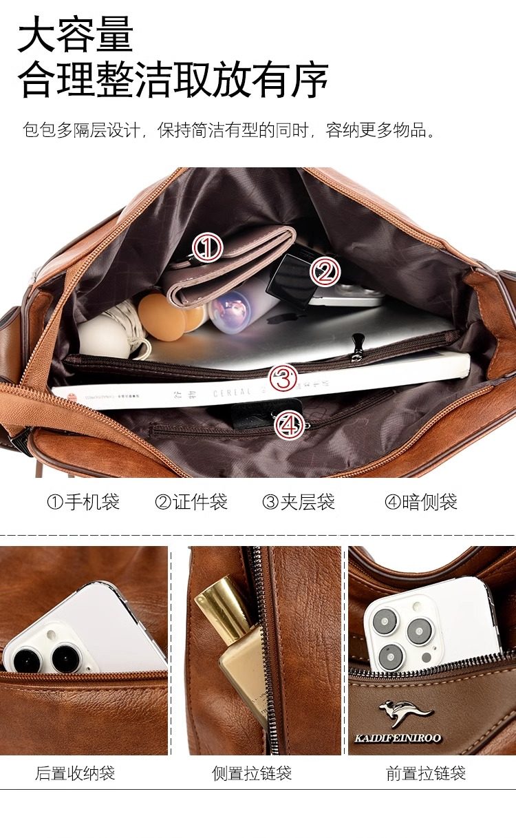 Hong Kong I.Tgreg Women's Fashion Crossbody Bag Versatile Simple Shoulder Bag Large Capacity Soft Leather Tote Bag Trendy
