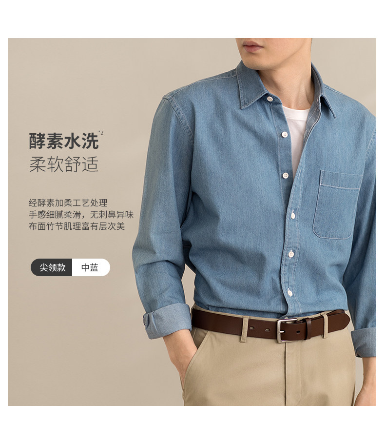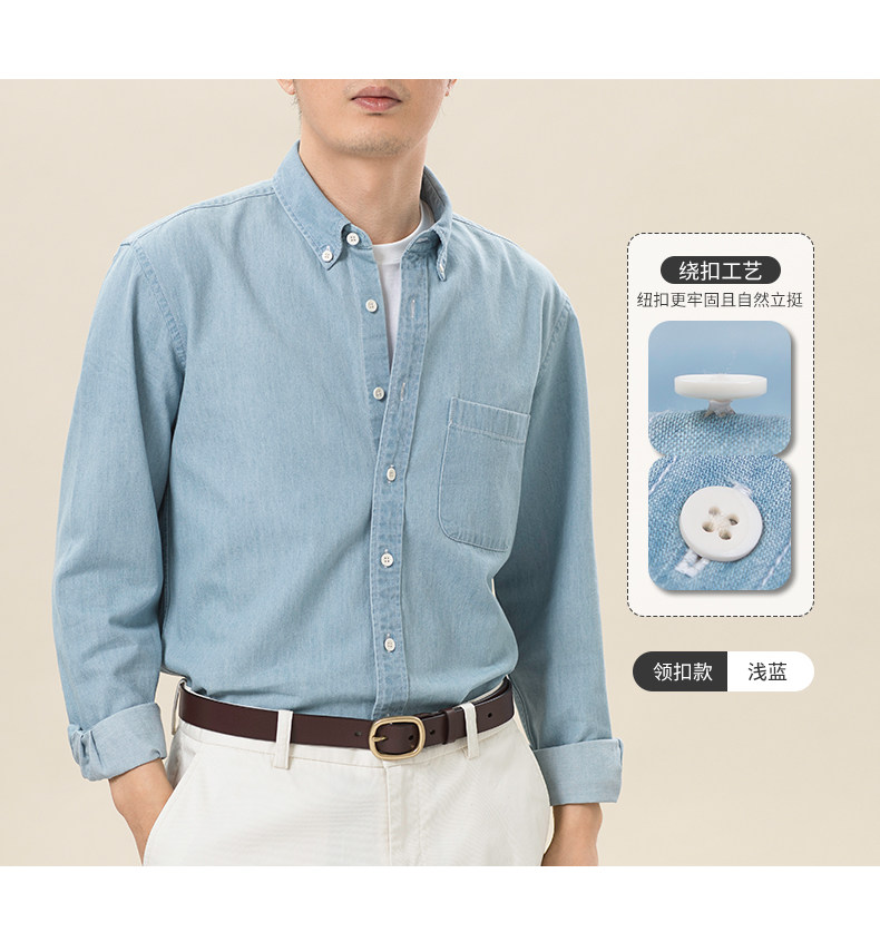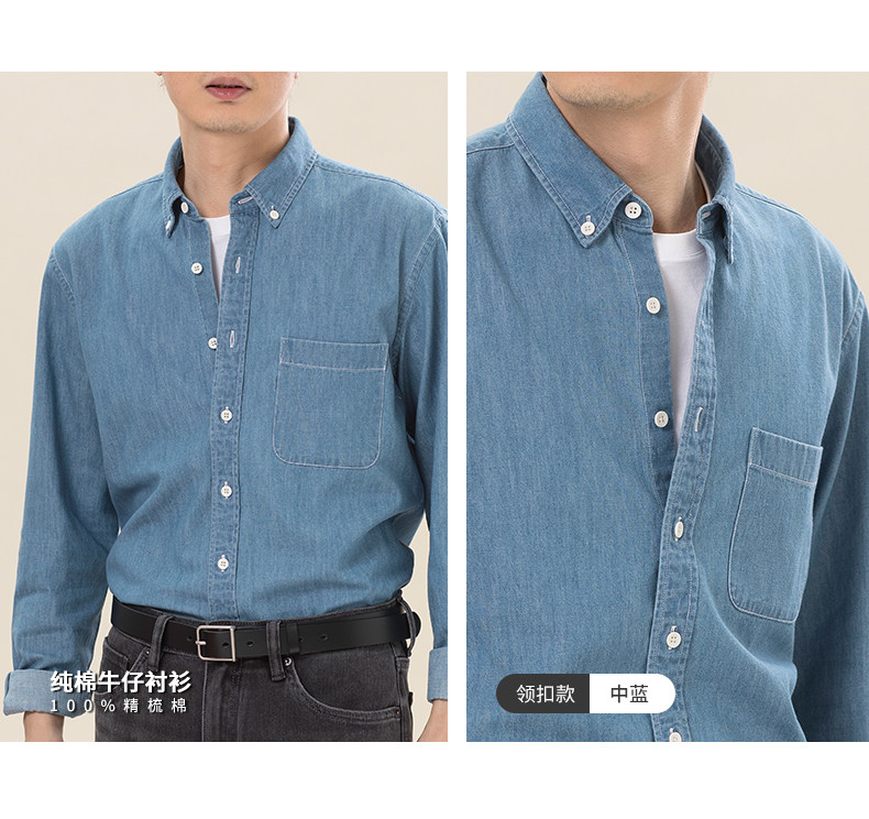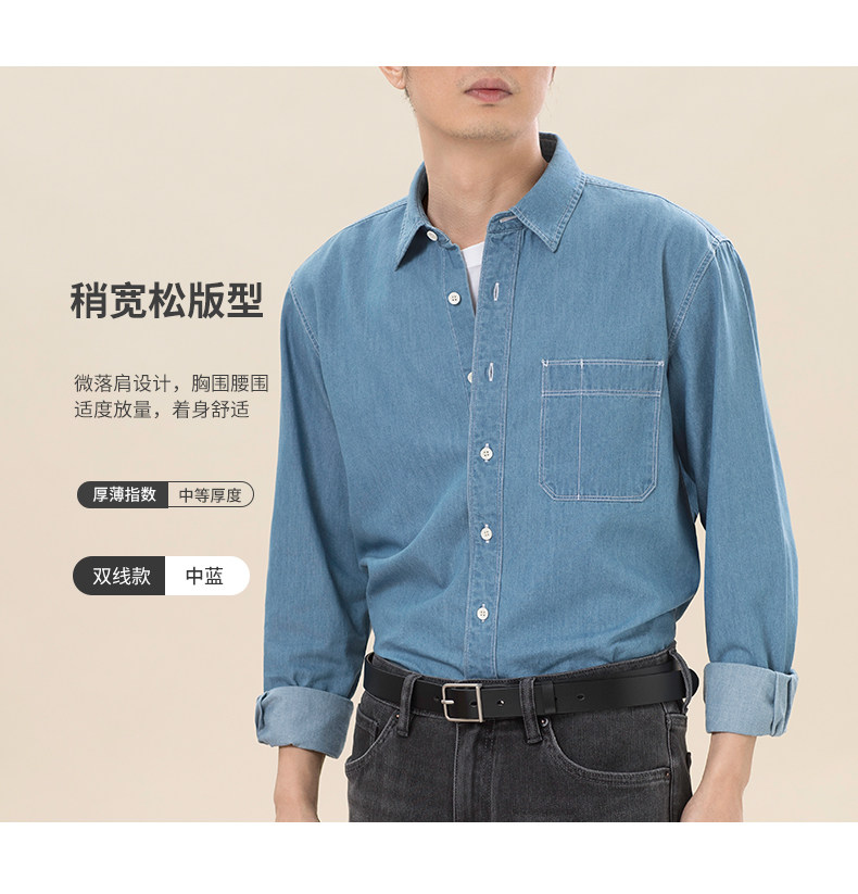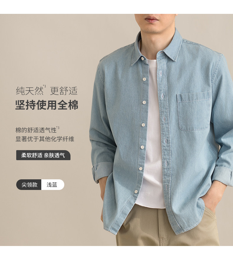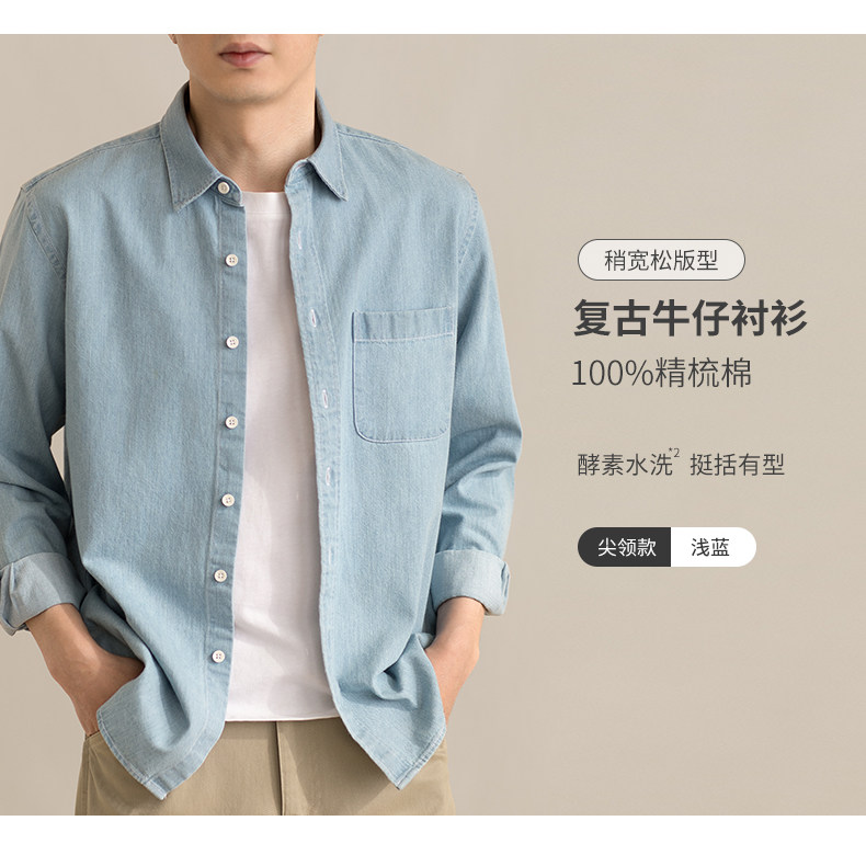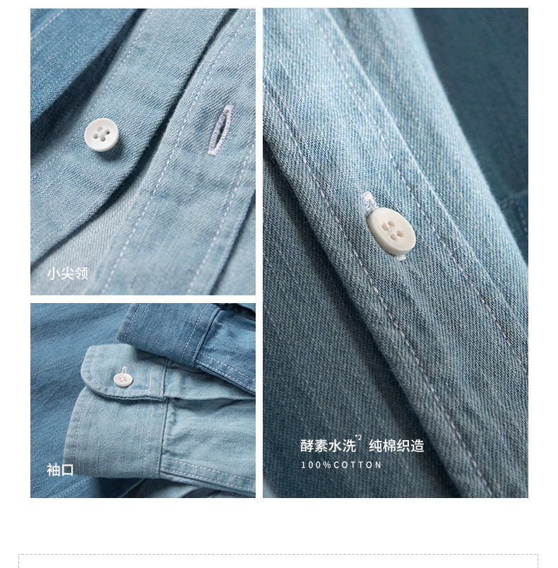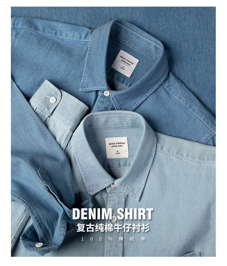 2025 Autumn New Pure Cotton Single Pocket Denim Vintage Shirt Men's Long Sleeve Shirt Jacket Youth Casual Student