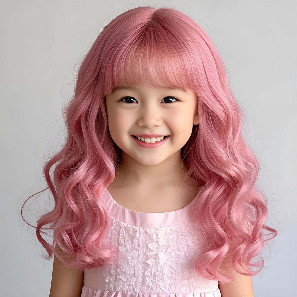 Rourou Princess Cosplay Children's Wig for Girls, Long Curly Hair, Fashionable, Sweet, Natural, Suitable for Daily Use, Photoshoots, and Performances, Full Head Wig