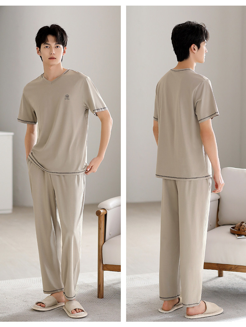 Catman pajamas men's summer men's cotton silk short-sleeved trousers 2025 new summer style streamlined home clothes summer
