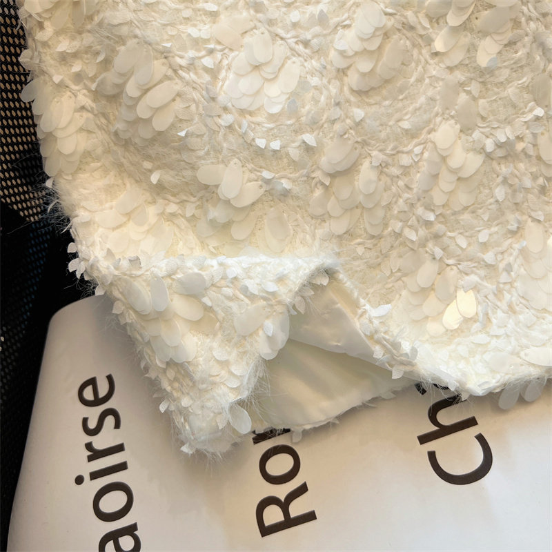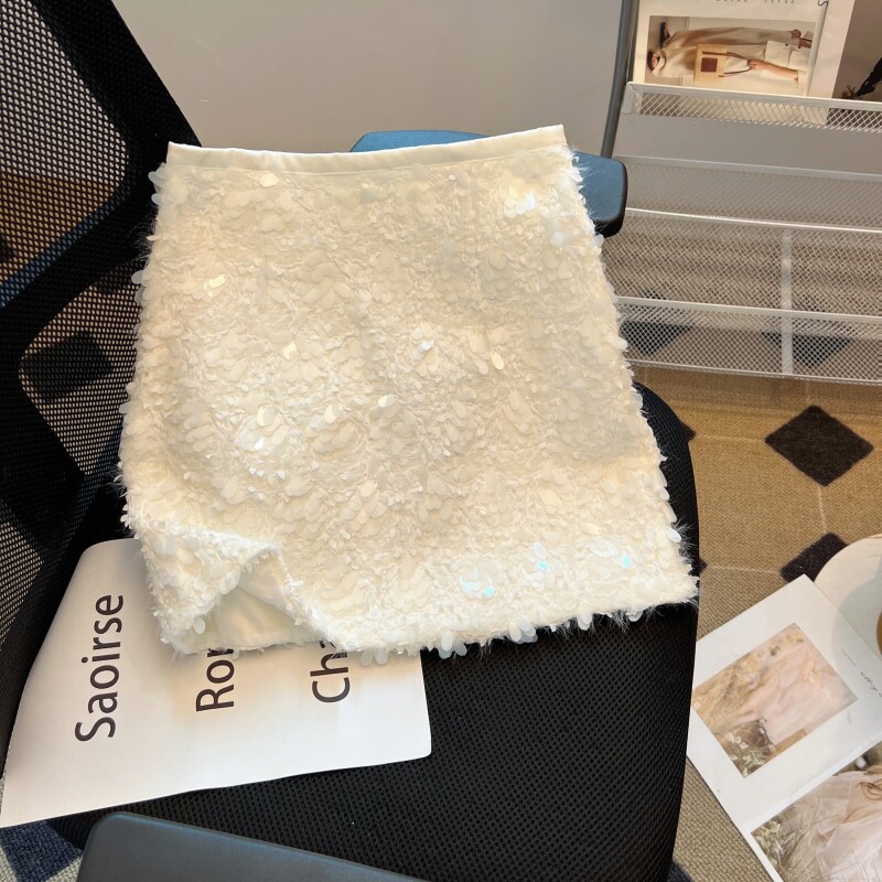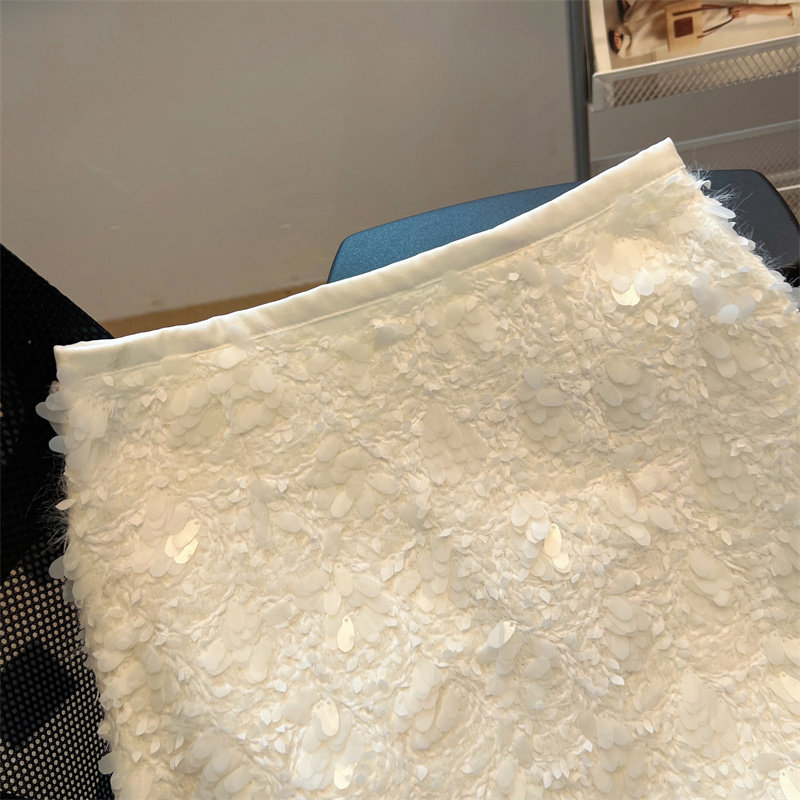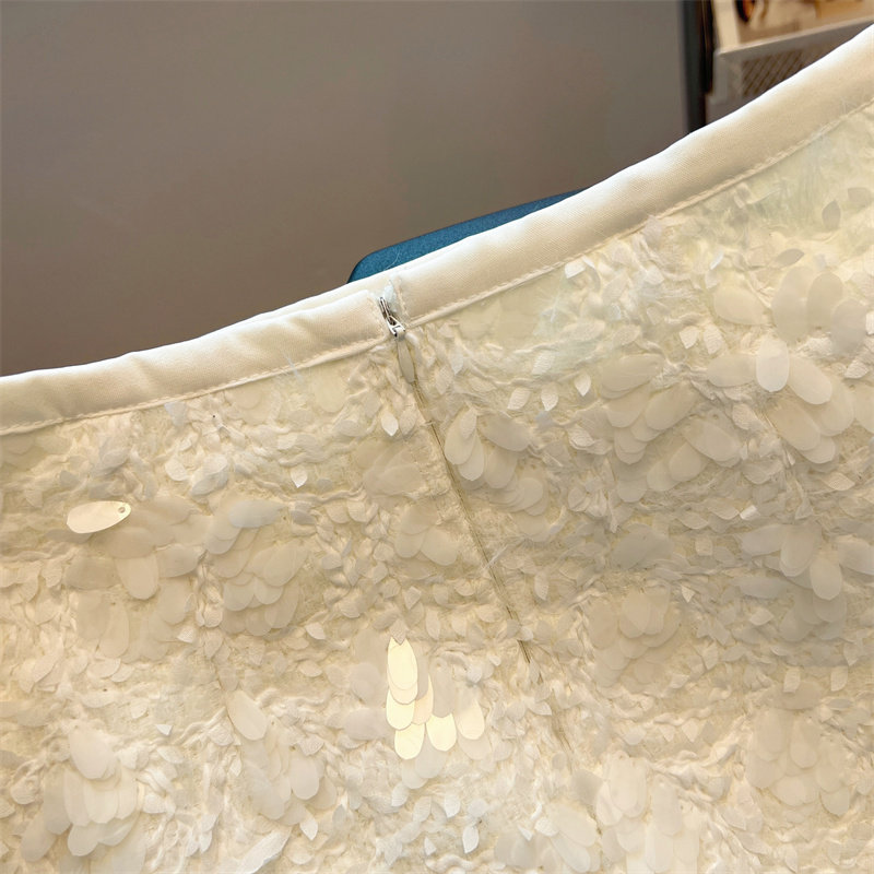 White sequined skirt for women 2026 spring new style this year's popular a-line skirt small fragrant zipper hip skirt