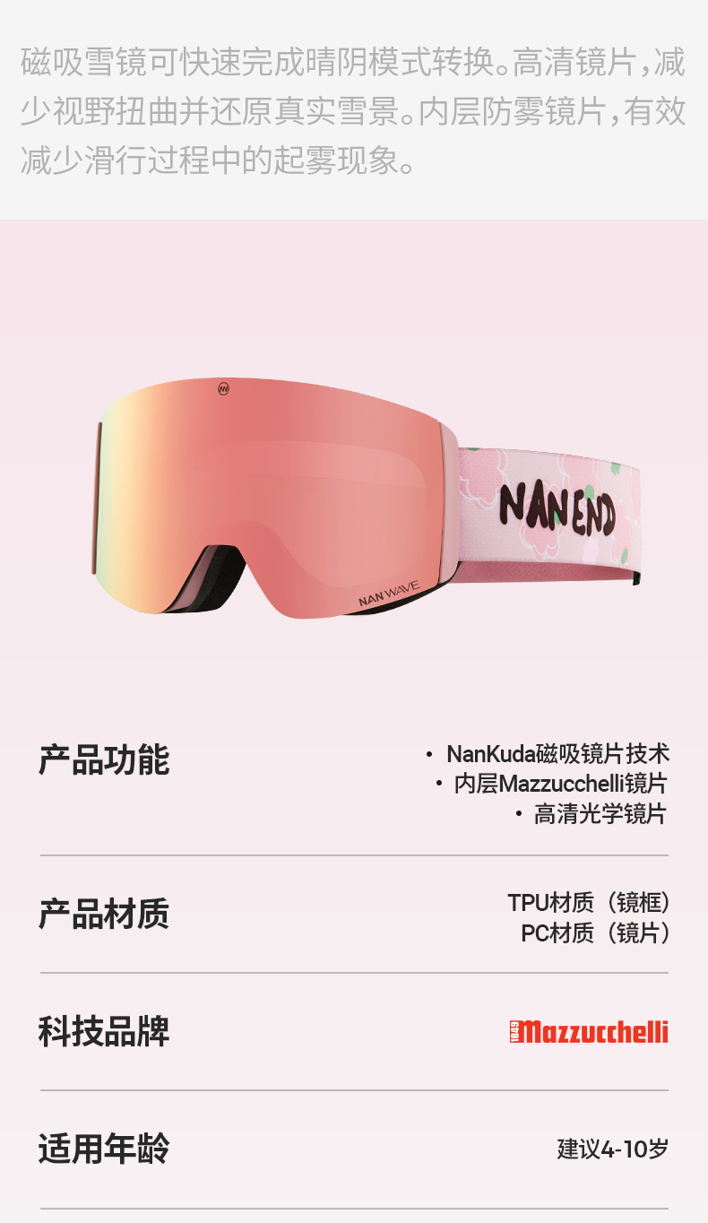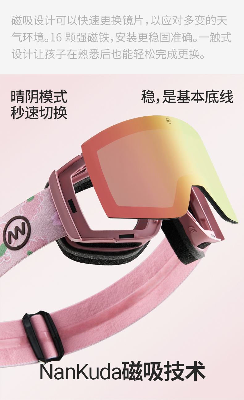 Nanend Nanen 25 New Model Children's Ski Goggles Magnetic Snow Goggles Quick Defogging Single and Double Board Goggles Ng14Ks