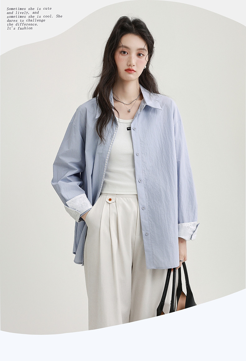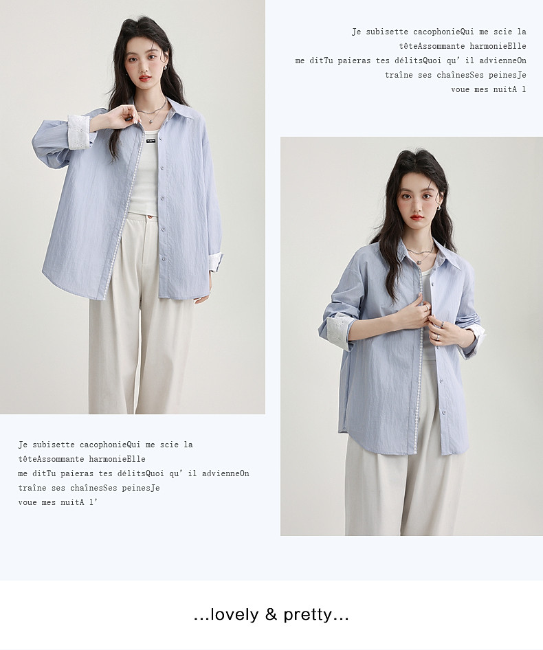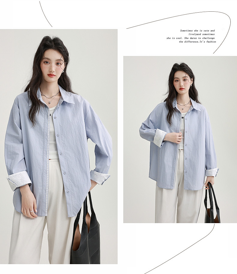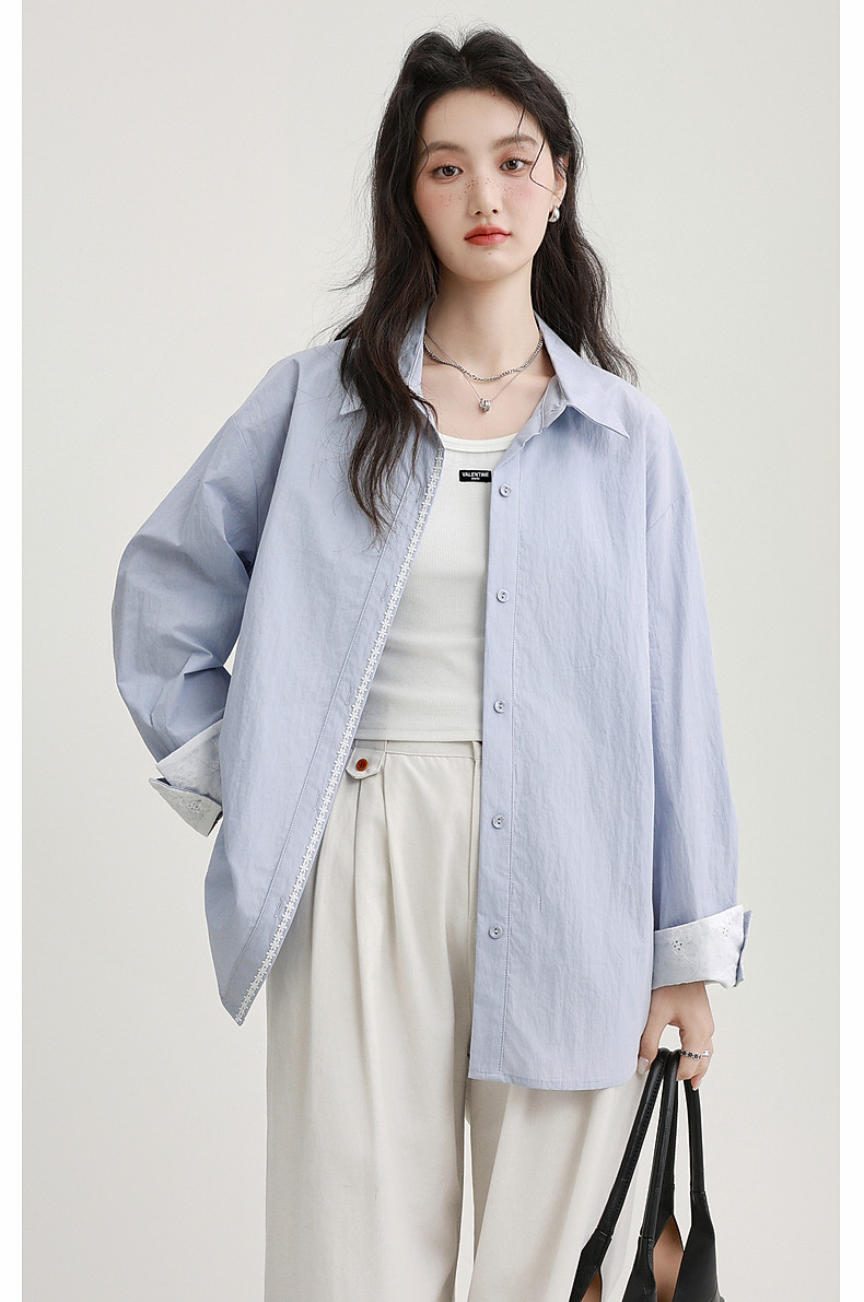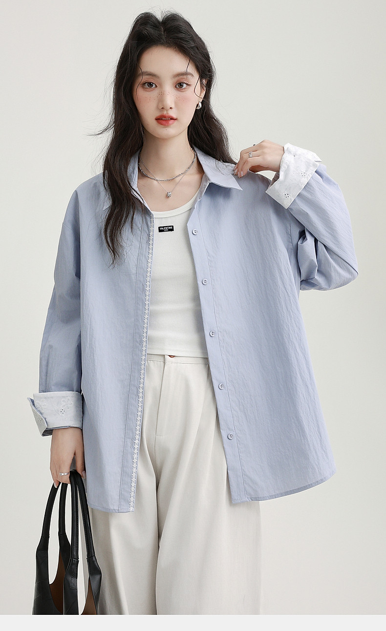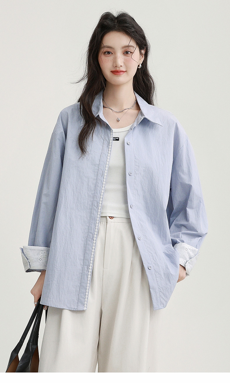 2025 Spring New Light Purple Polo Collar Long Sleeve Shirt for Women, Loose Korean Style Thin Shirt Jacket Versatile Top