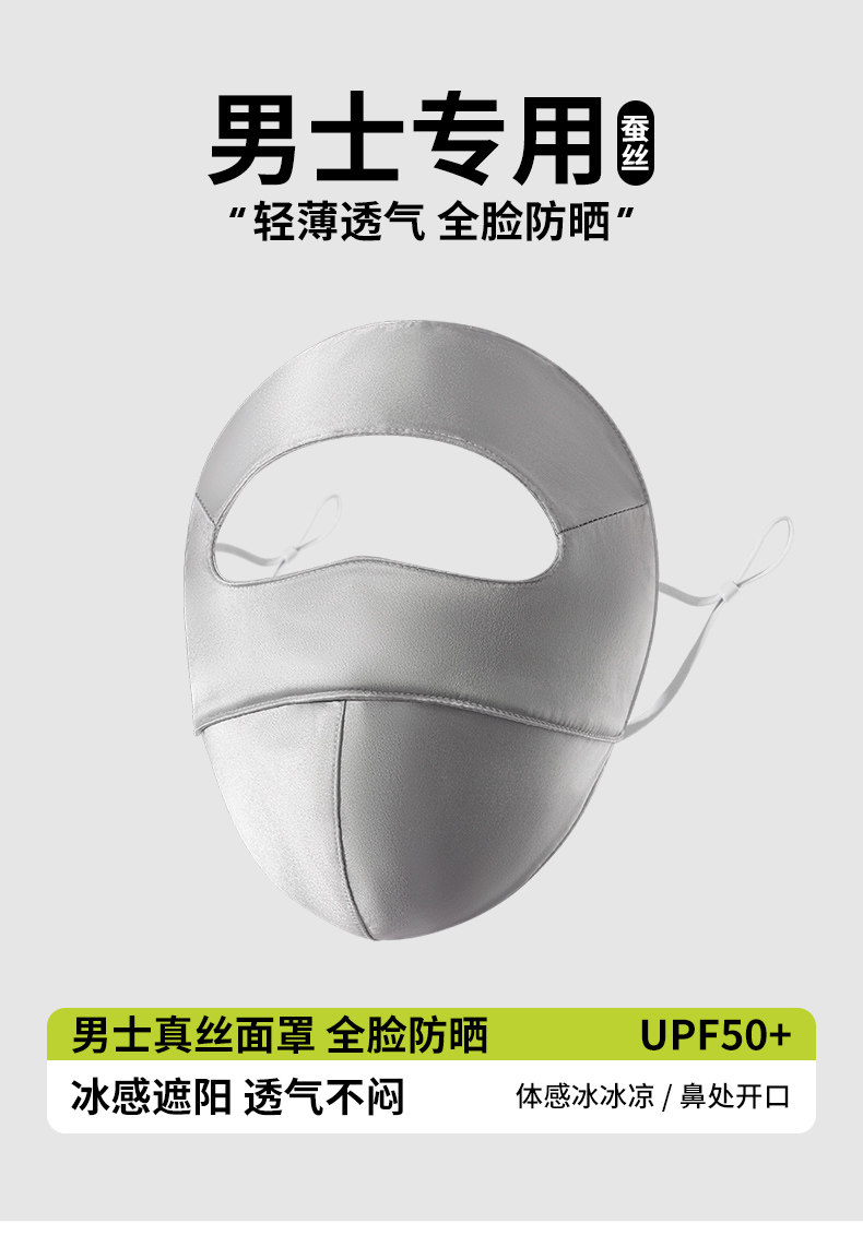 Men's Full-Face Sun Protection Mask, Silk Summer Uv Protection Mulberry Silk Face Mask, Cycling and Driving Face Mask