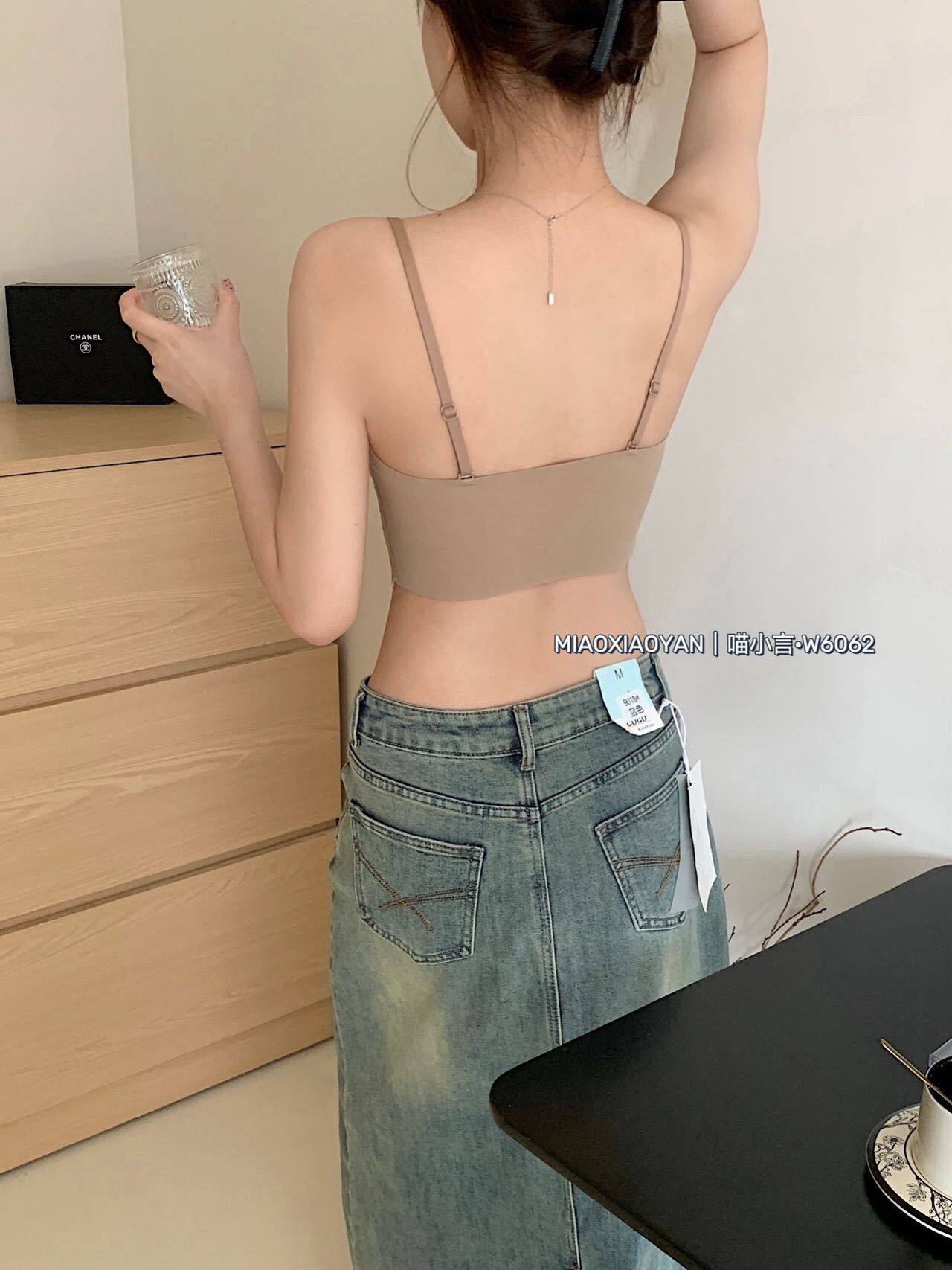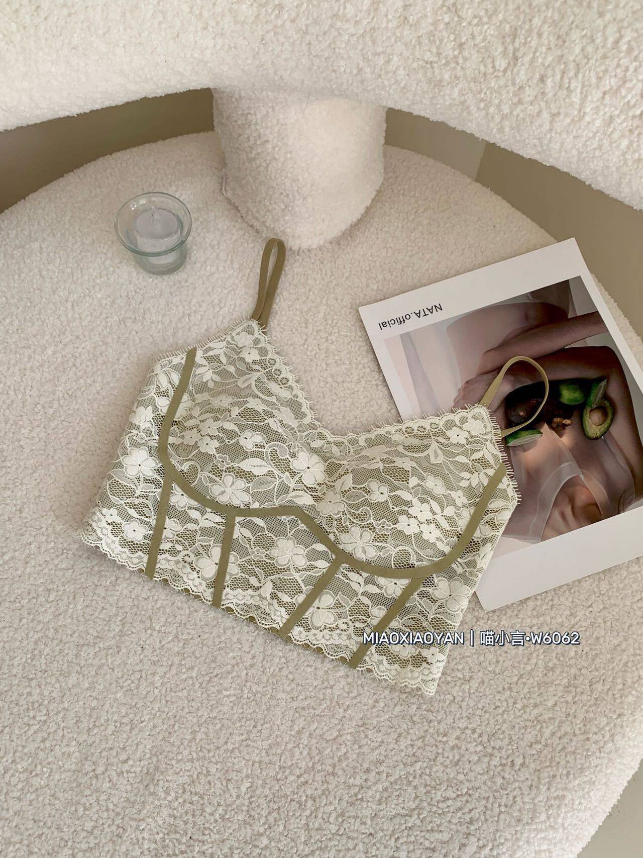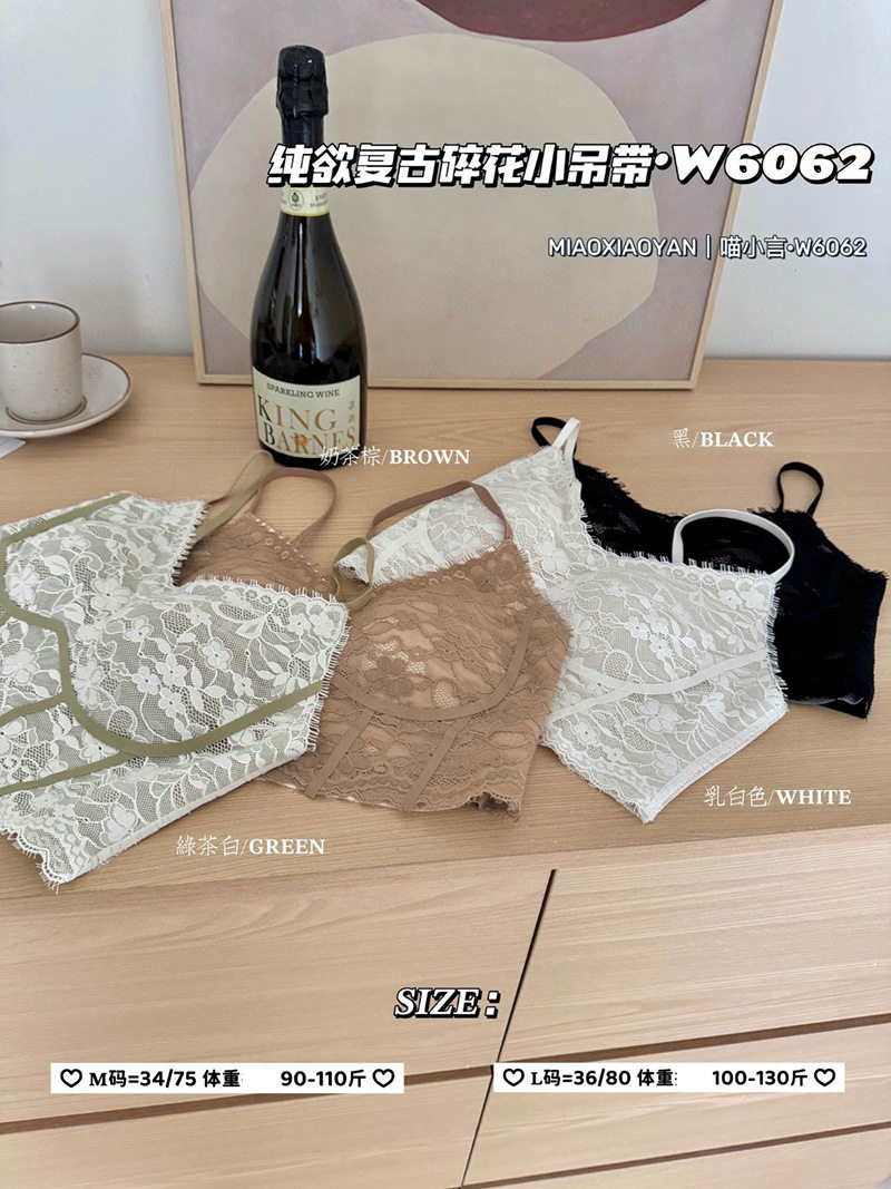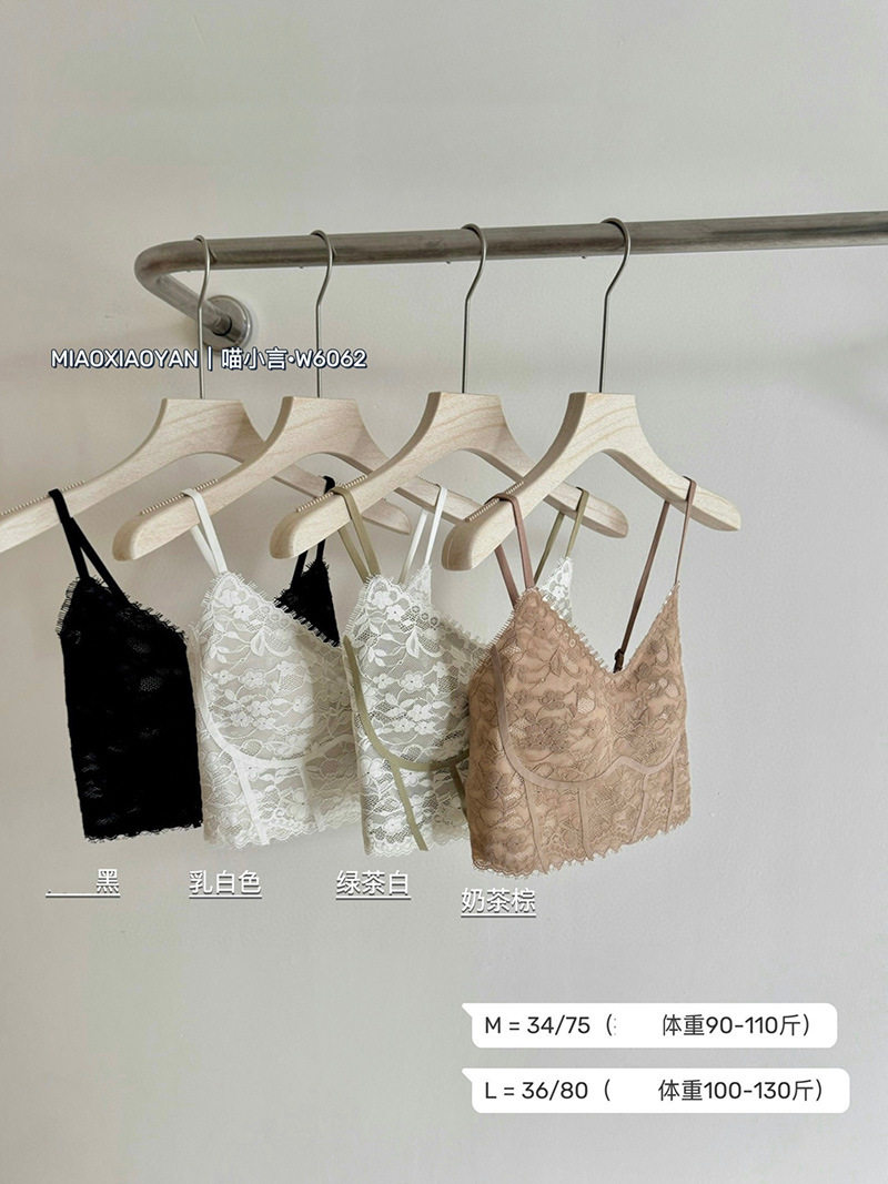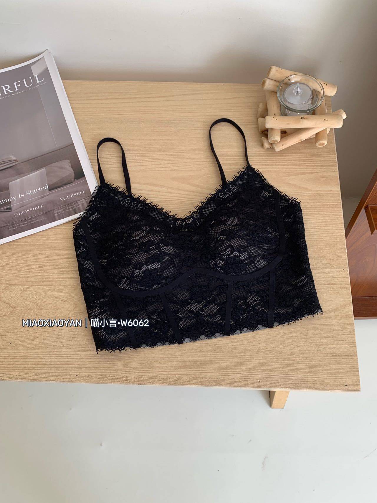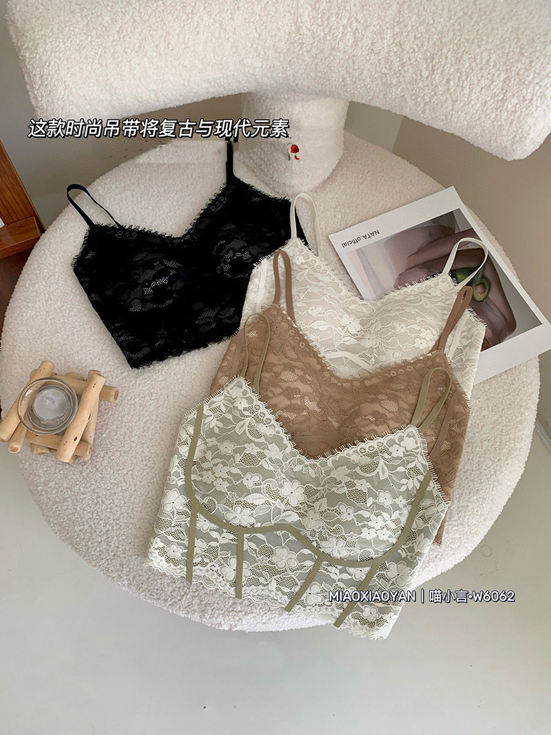 Camisole with breast pads for women, summer beautiful back bra, all-in-one bottoming top, short lace sexy underwear