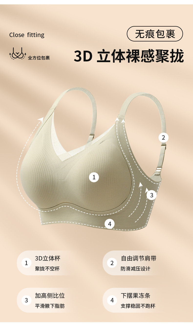 Women's Seamless Lingerie for Small Busts, with Lift and Support, No Underwire, Soft Support, Back-Shaping Bra