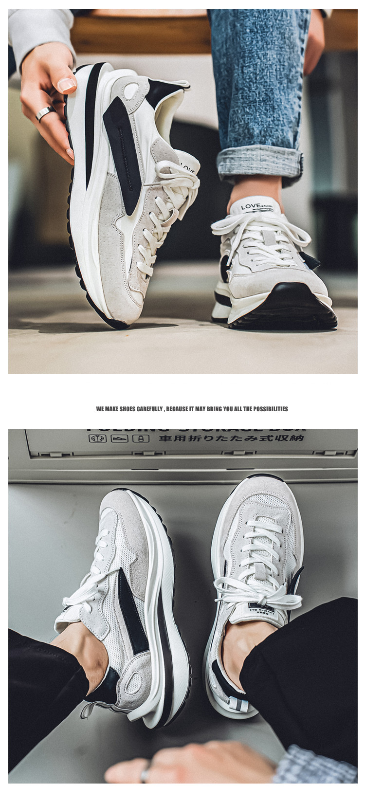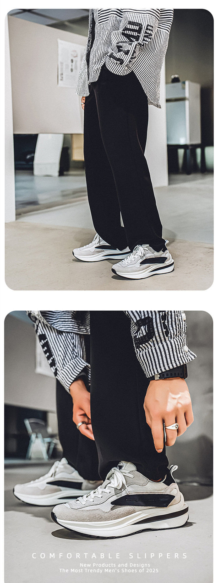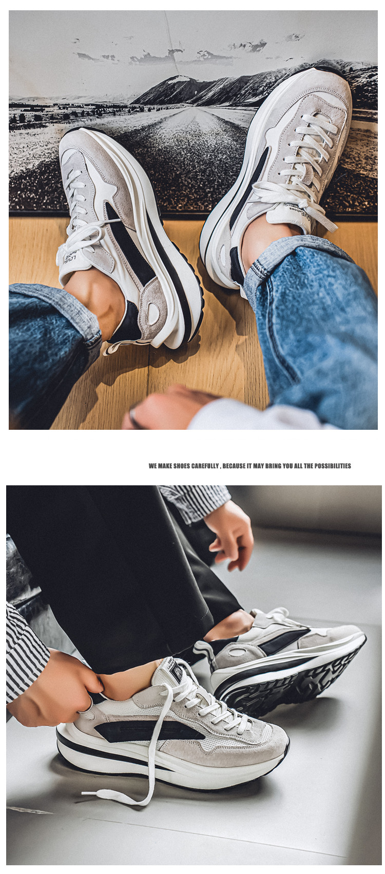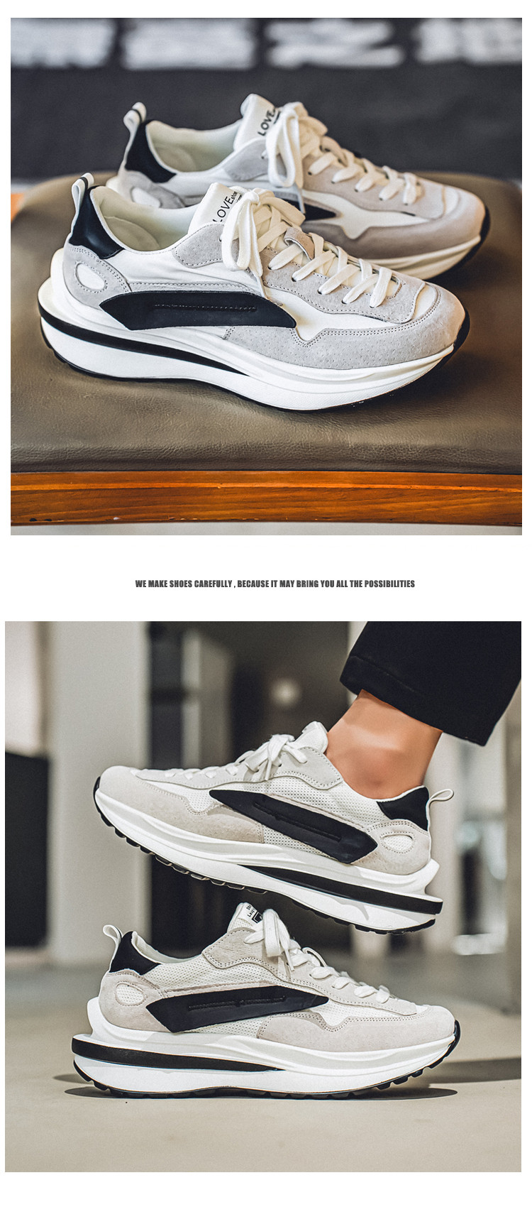 Men's Sports Shoes 2025 New Summer Mesh Breathable Casual Shoes Thick-Soled Genuine Leather Running Shoes Soft-Soled Dad Shoes
