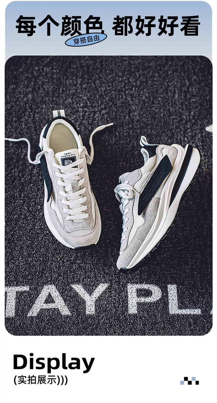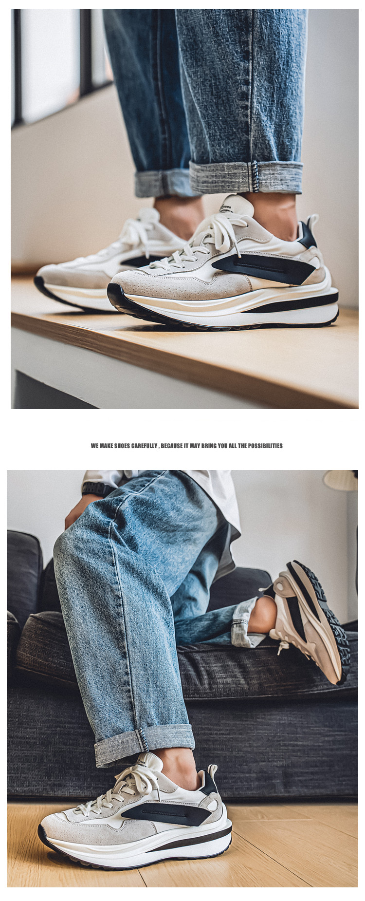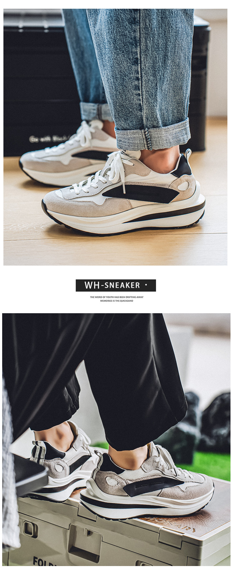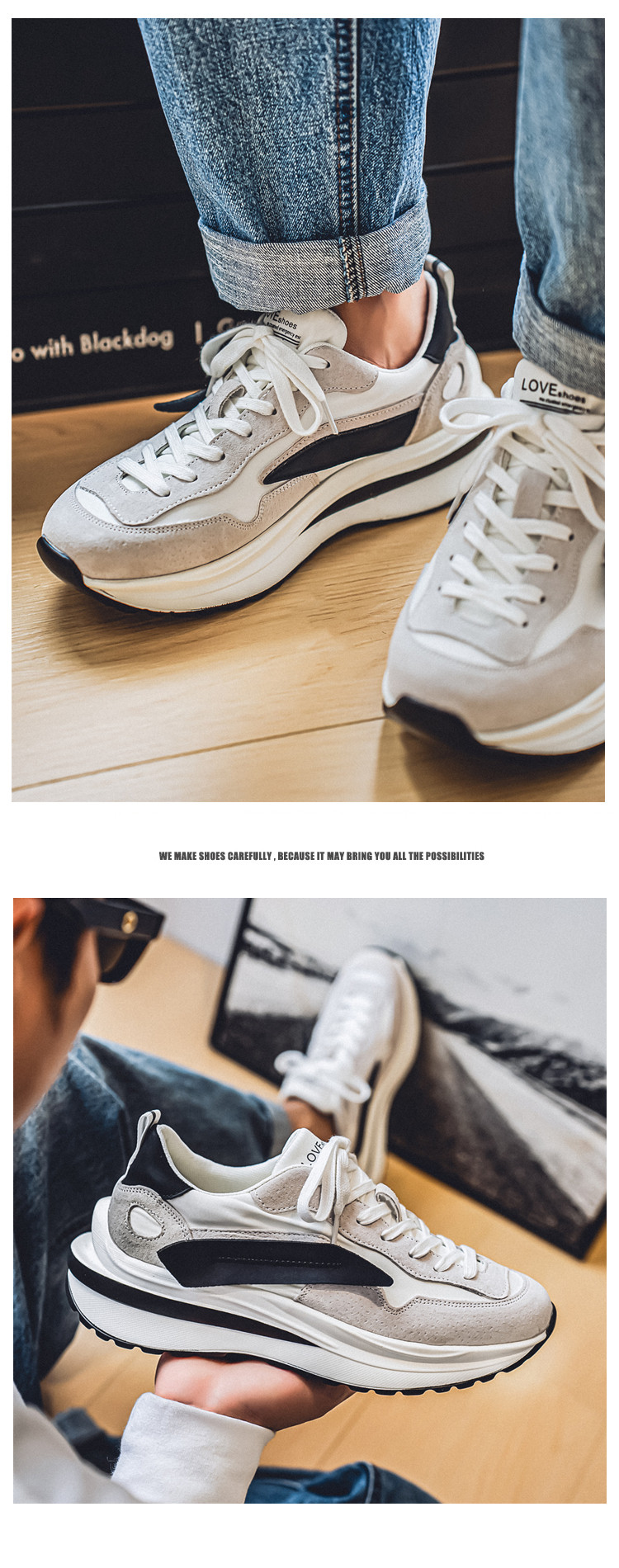 Men's Sports Shoes 2025 New Summer Mesh Breathable Casual Shoes Thick-Soled Genuine Leather Running Shoes Soft-Soled Dad Shoes
