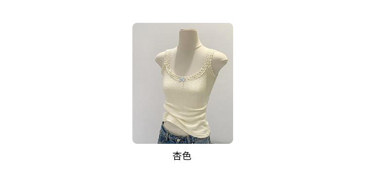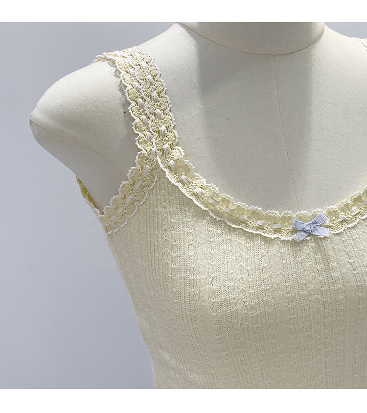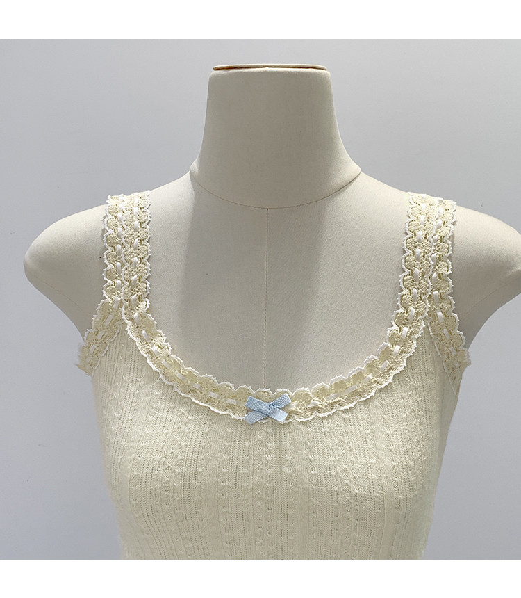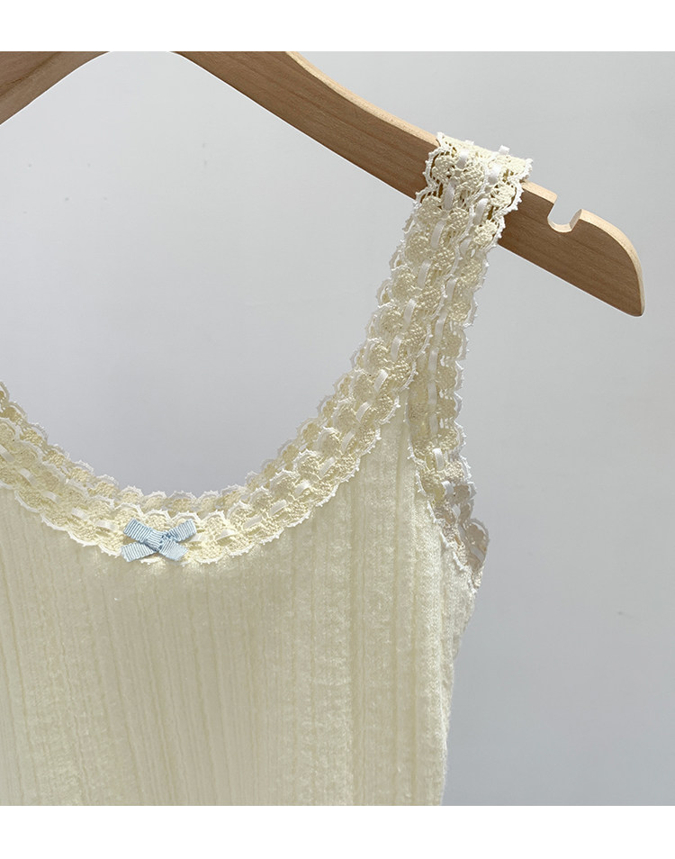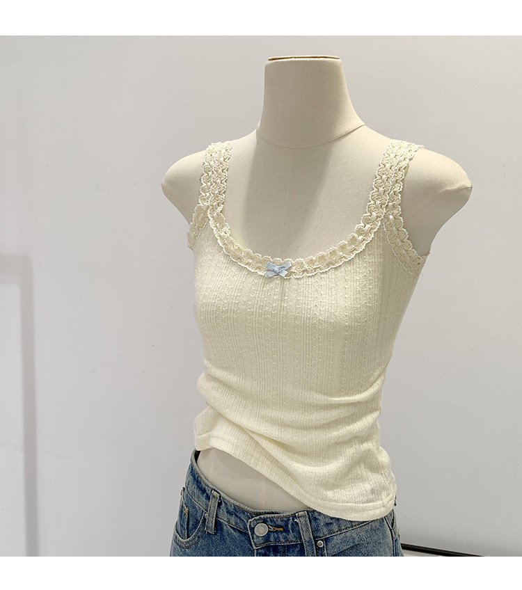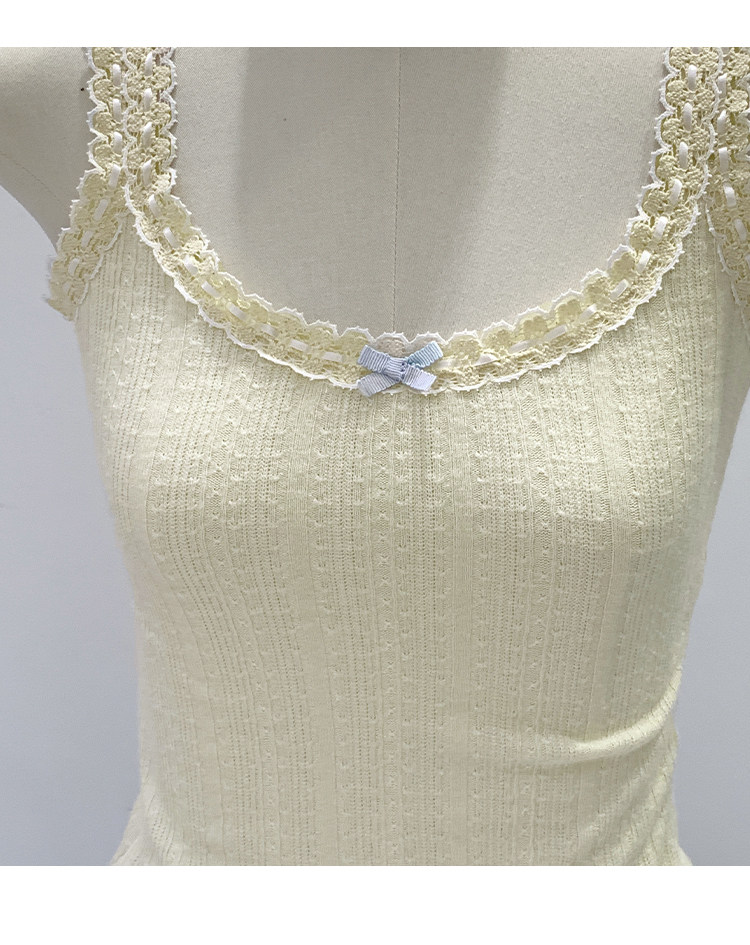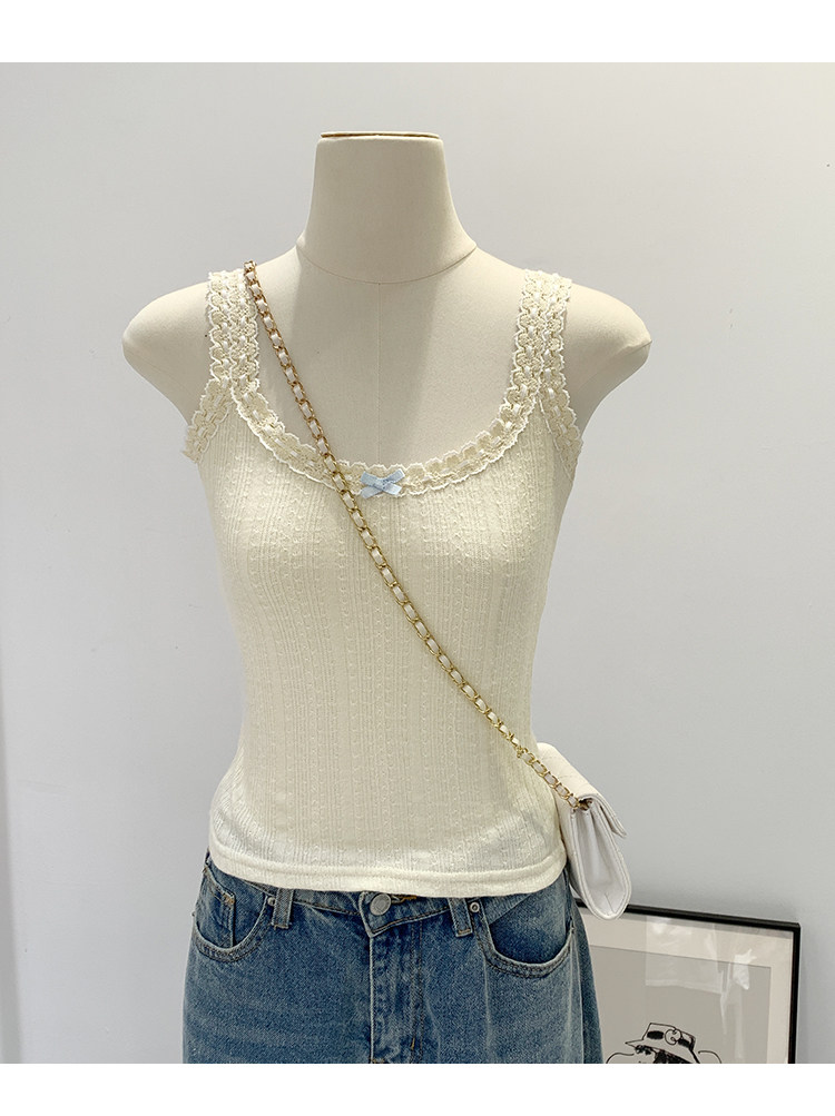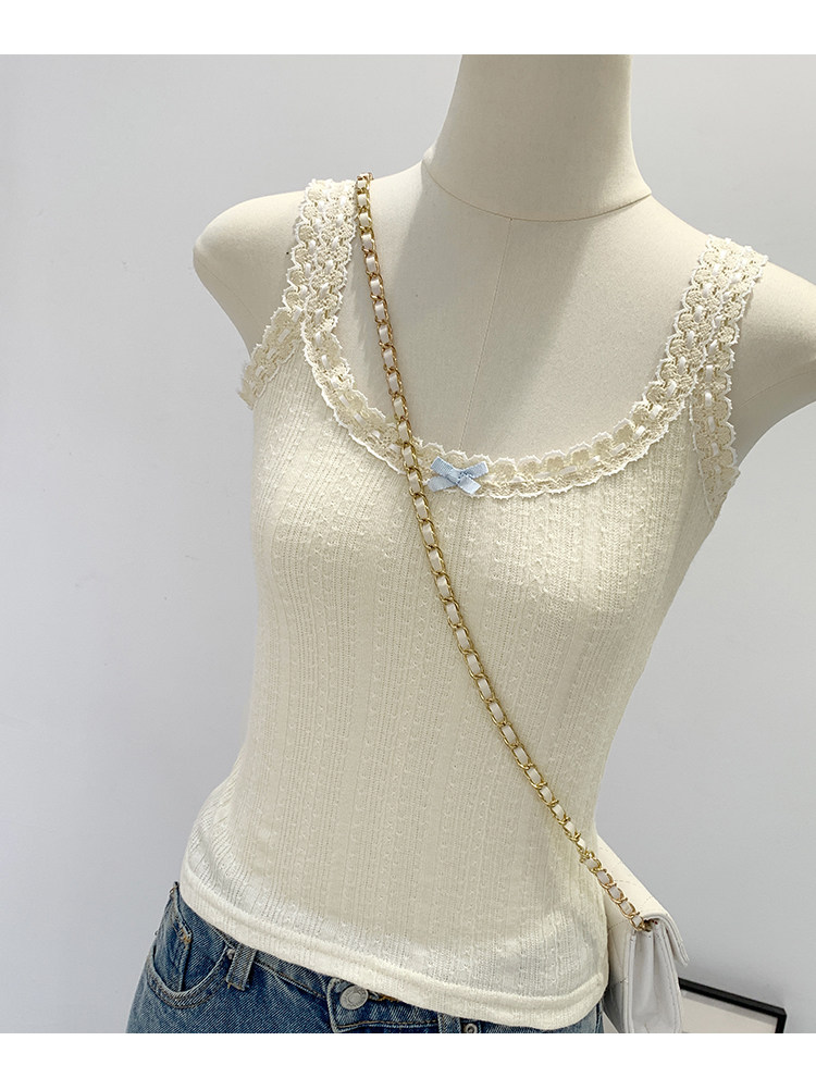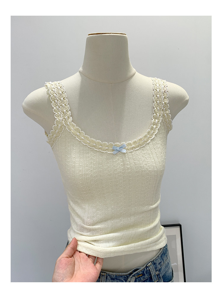 Sweet and Pure Miu-Style Bow-Tie Camisole for Women, Spring and Summer Anti-Exposure U-Neck Vest, Covers Side Breasts, Inner Layer Base Top