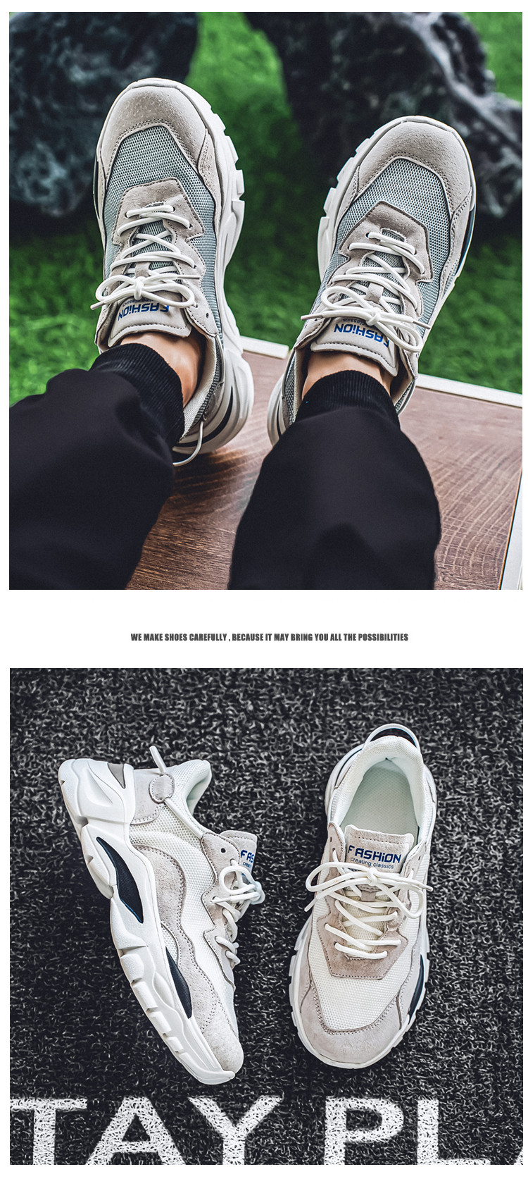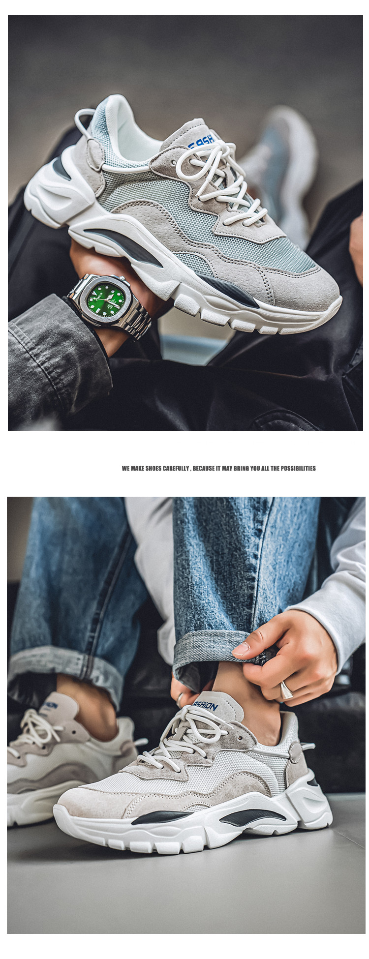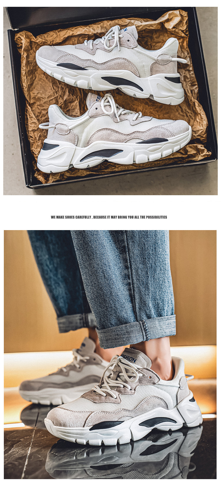 Men's Sneakers 2025 New Summer Mesh Breathable Thick-Soled Genuine Leather Soft-Soled Lightweight Casual Running Dad Shoes
