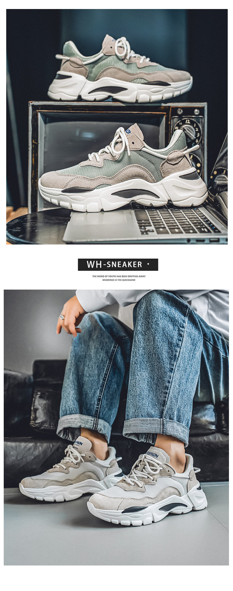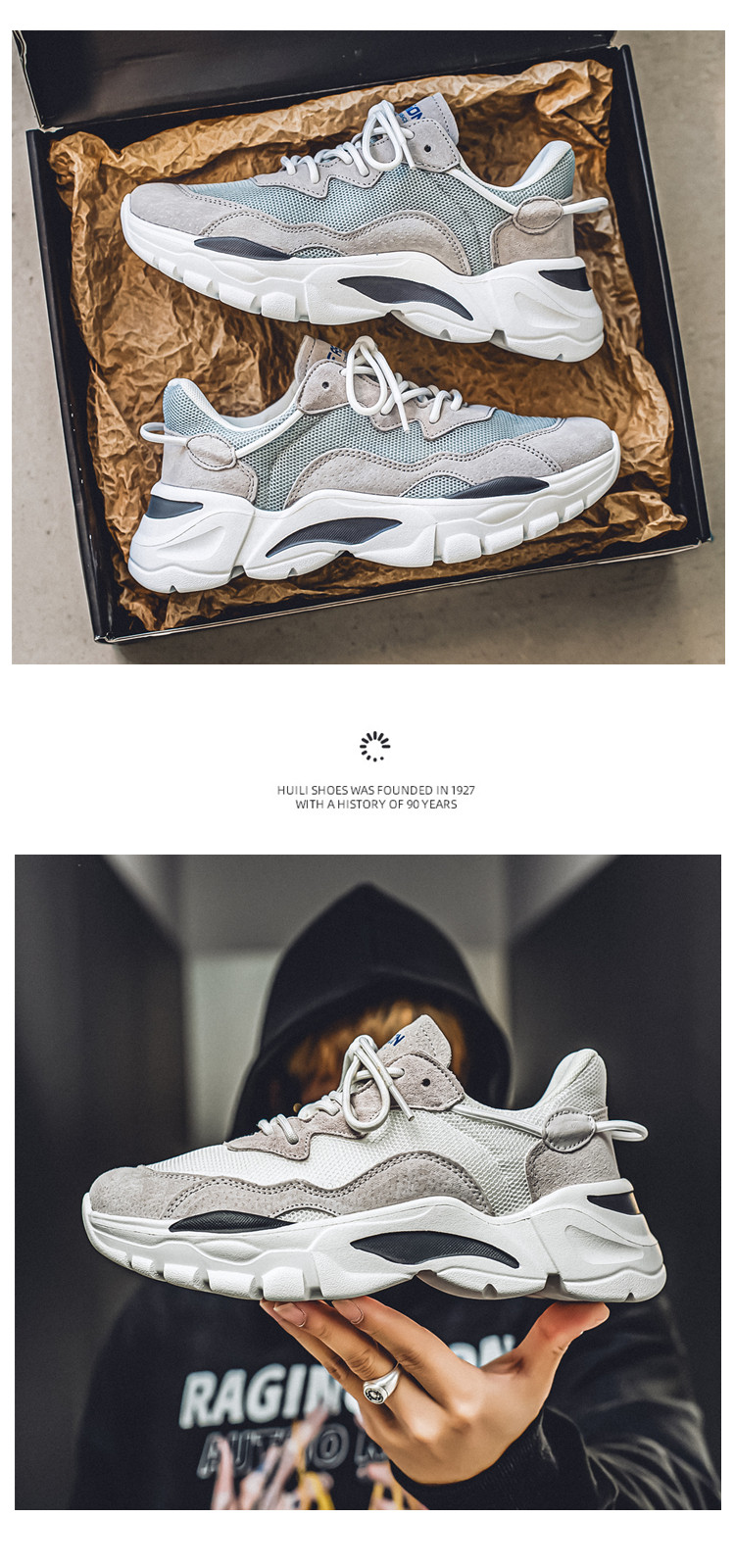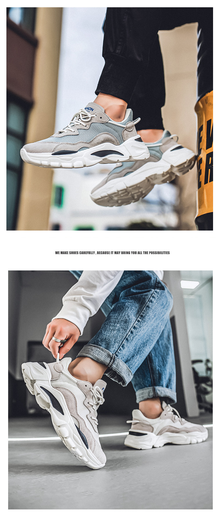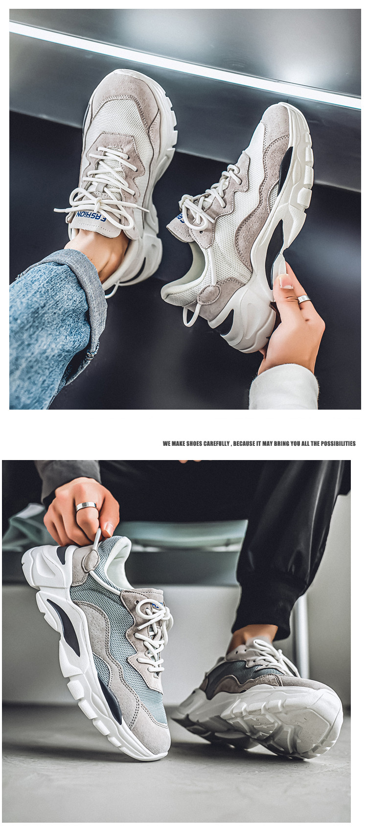 Men's Sneakers 2025 New Summer Mesh Breathable Thick-Soled Genuine Leather Soft-Soled Lightweight Casual Running Dad Shoes