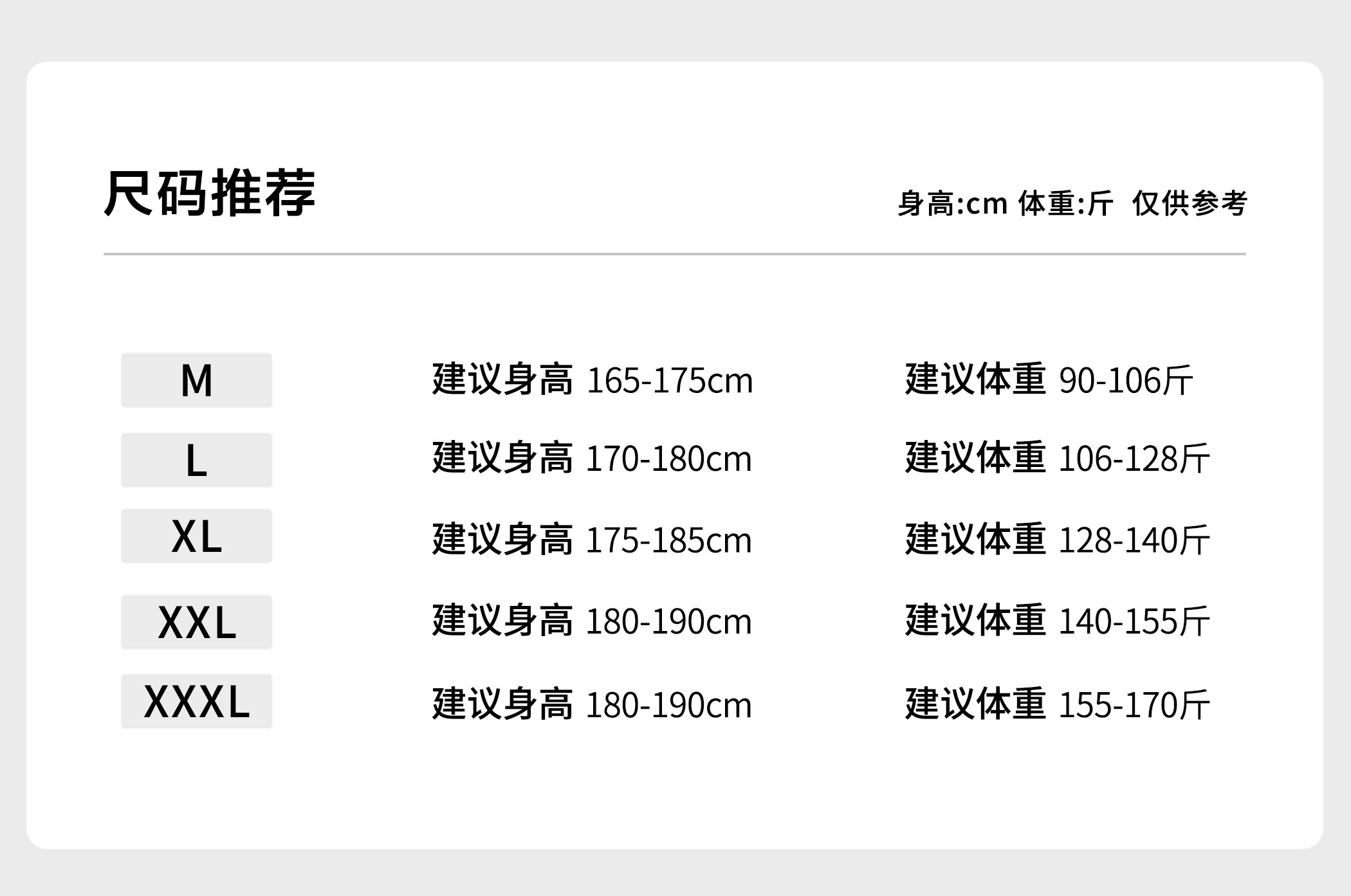 China (cm) 165 / 88-90 170 / 96-98 175 / 108-110 180 / 118-122 185 / 126-130