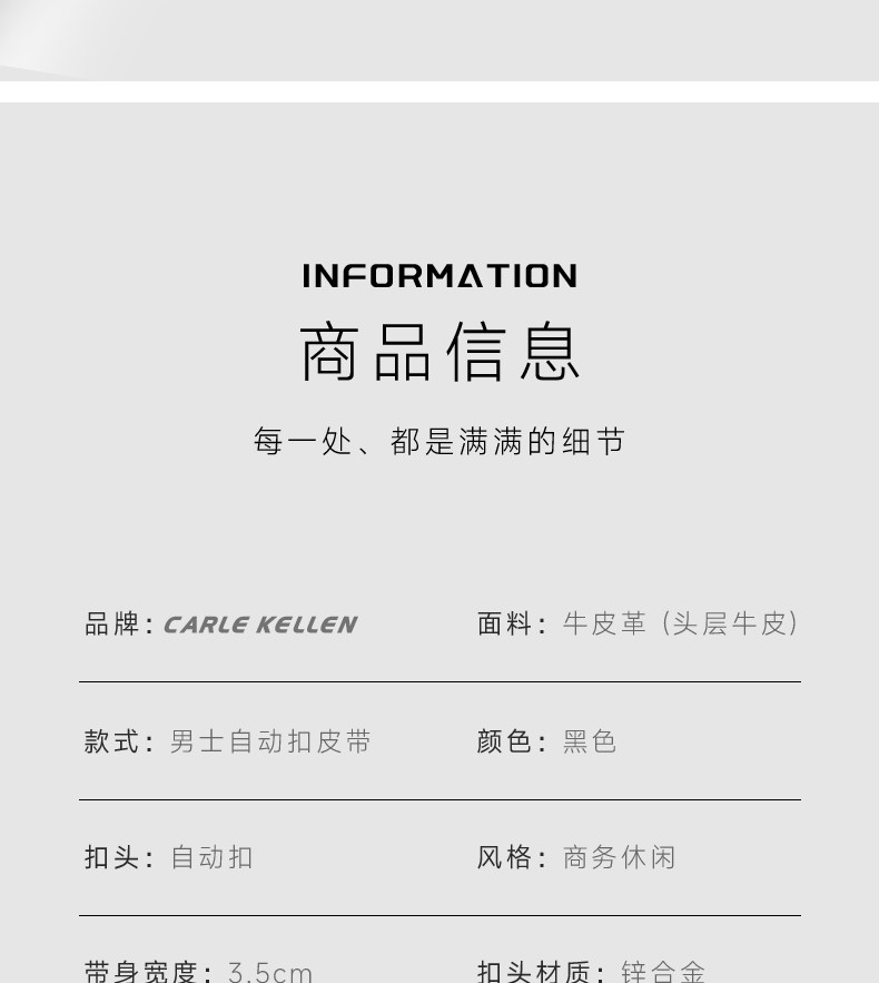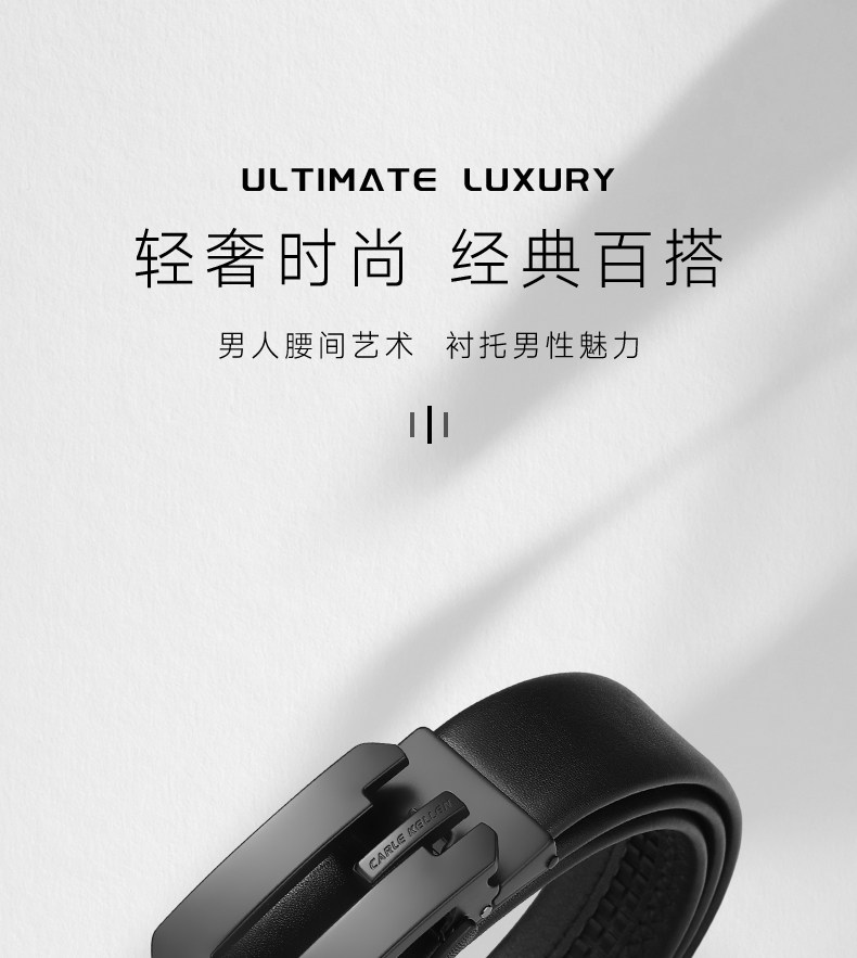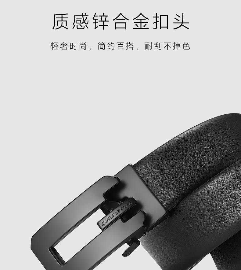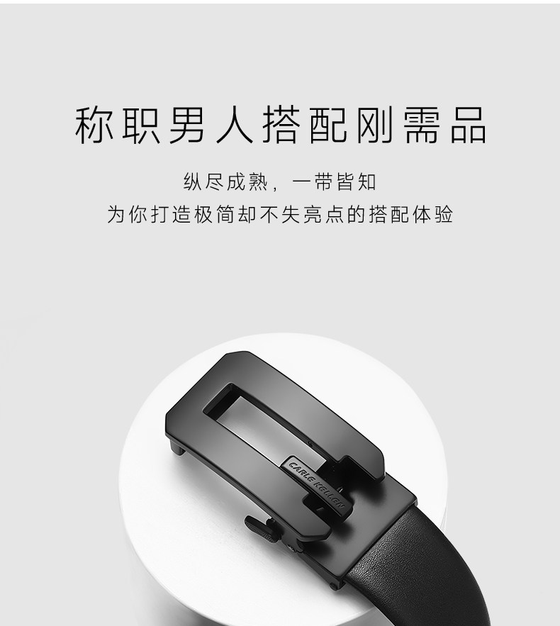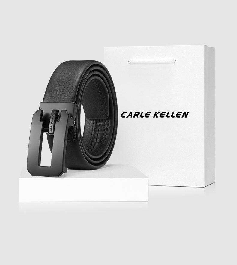 Carle Kellen Men's Leather Belt with Automatic Buckle, Pure Cowhide, Men's Waist Belt, Birthday Gift for Boyfriend
