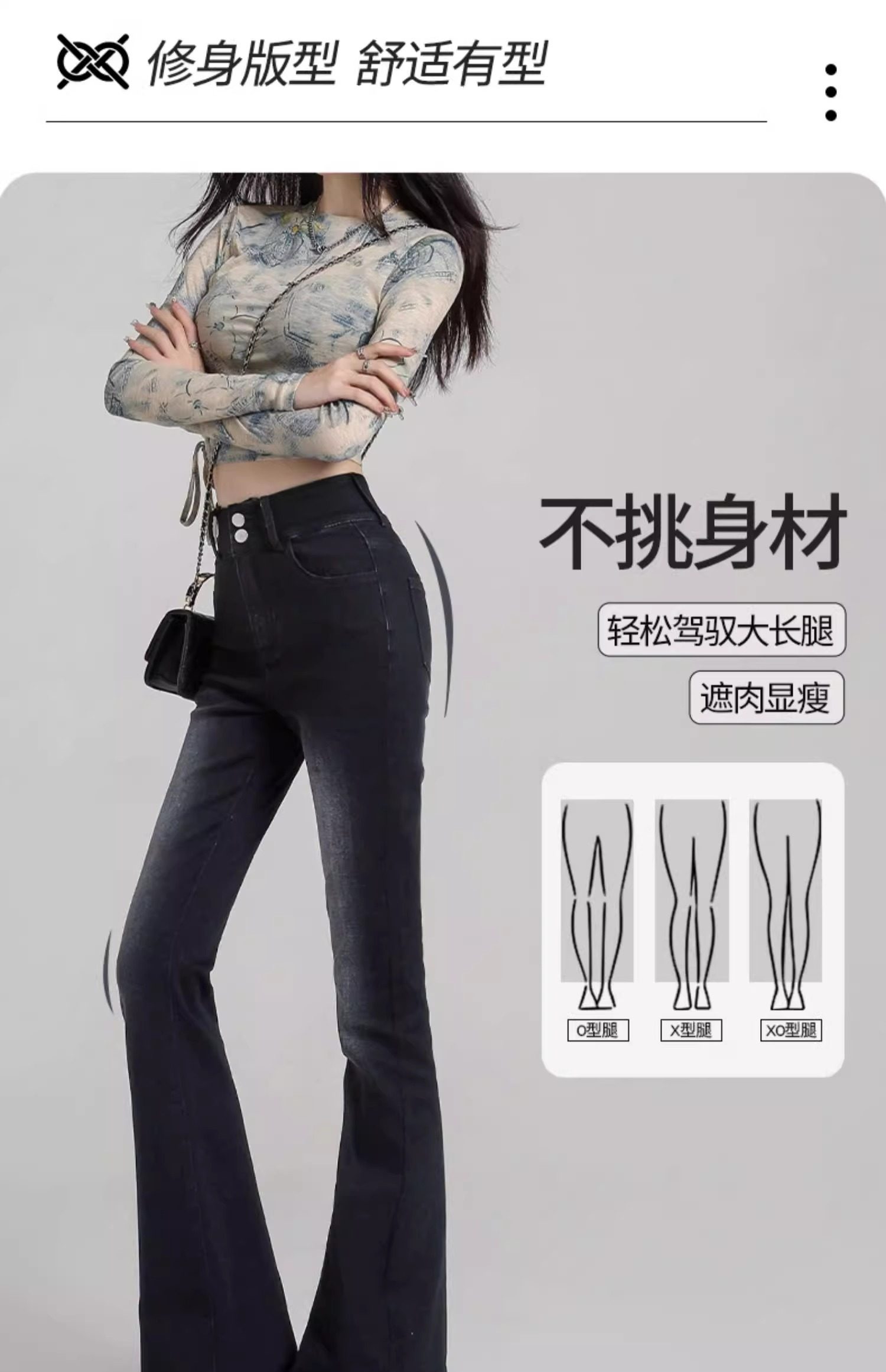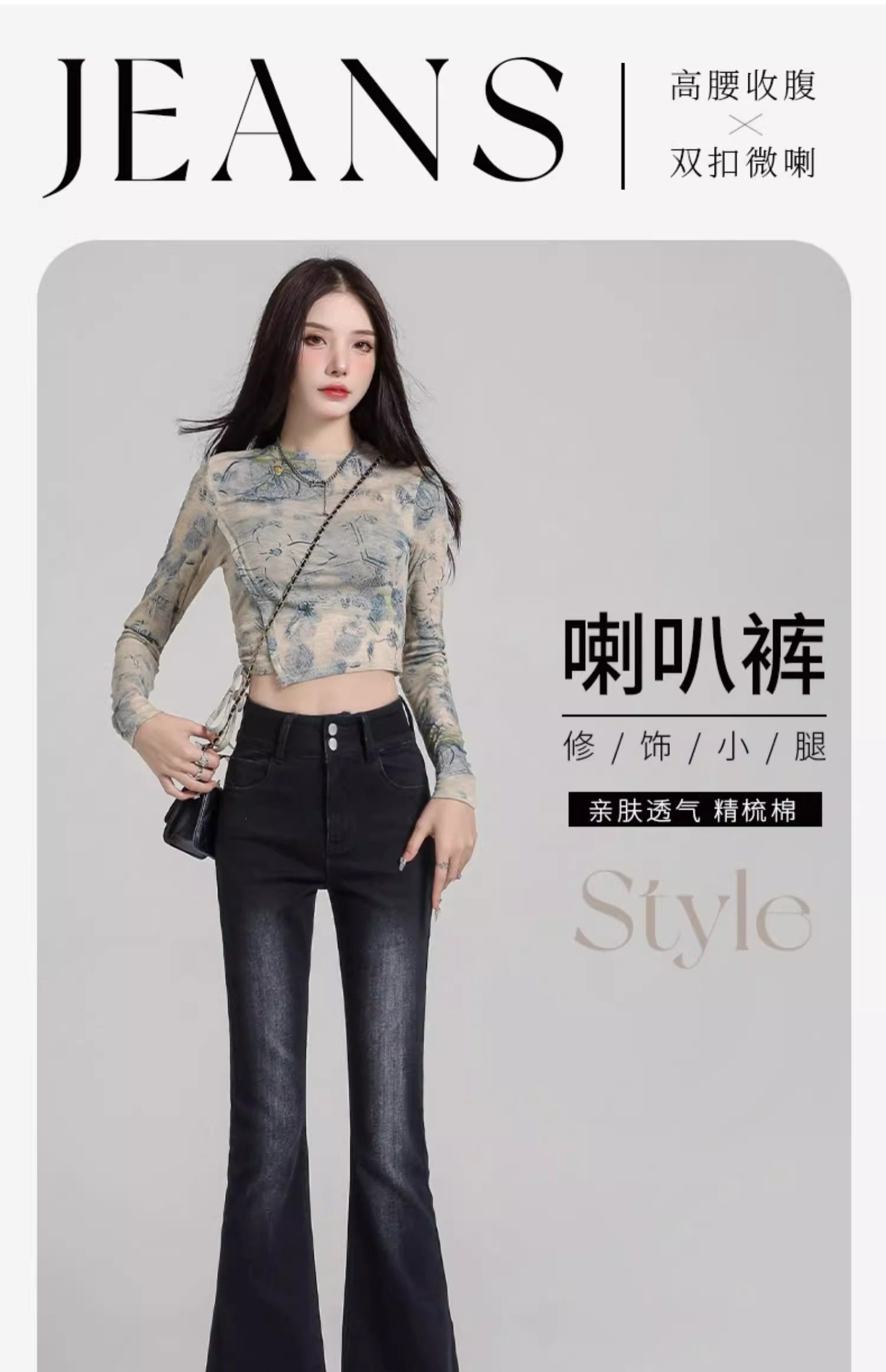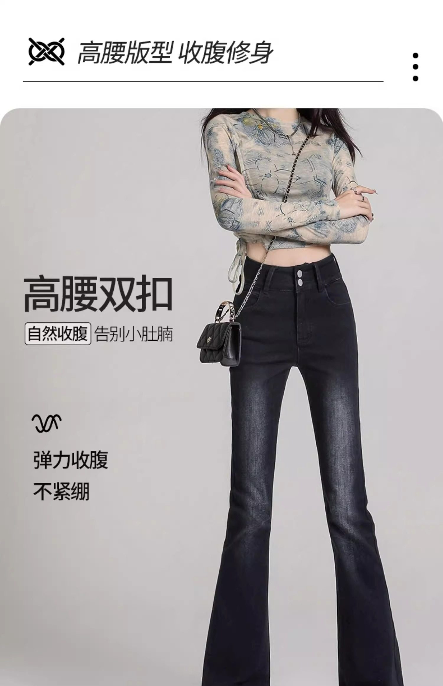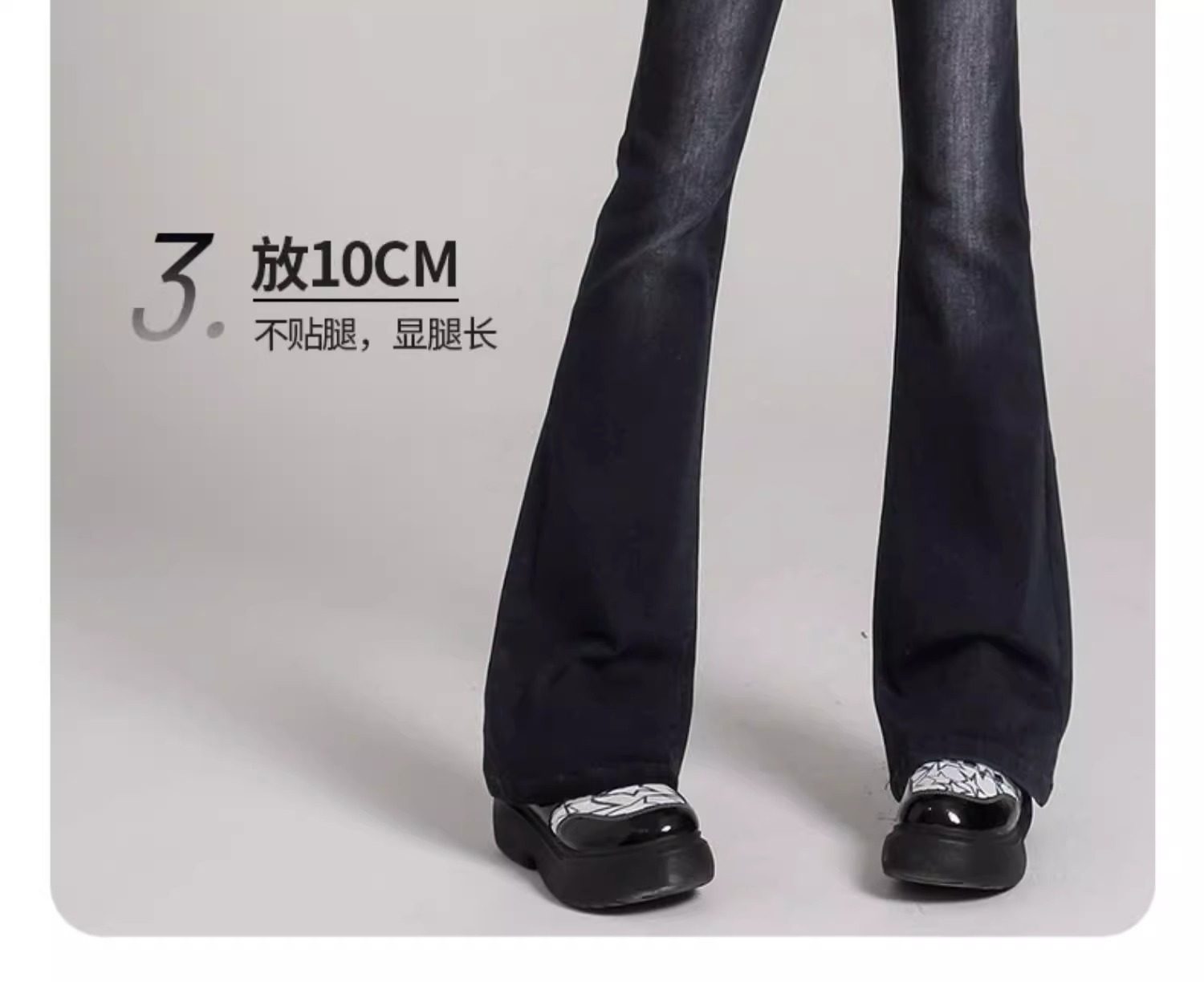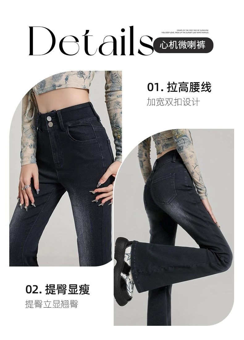 Schwarz-graue, dehnbare Bootcut-Jeans für Damen, Frühling 2025, neue hoch taillierte, schmal geschnittene, bodenlange, ausgestellte Pferdehufhose