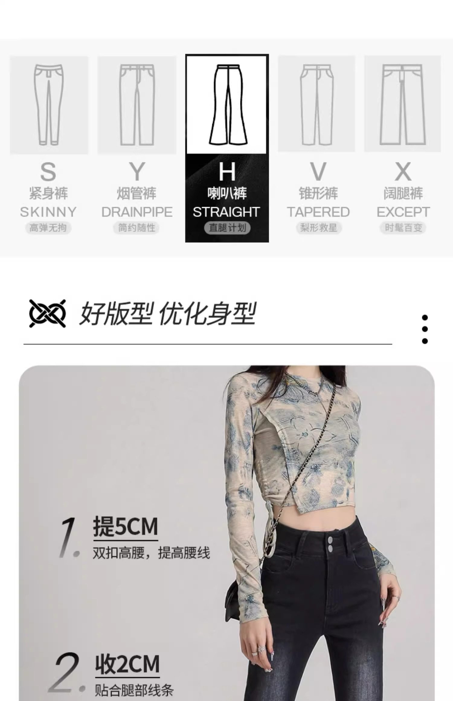 Outseam (cm) 99 cm 101.5 cm 104 cm 106.5 cm 109 cm