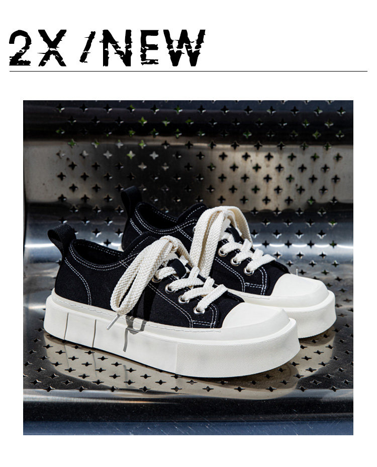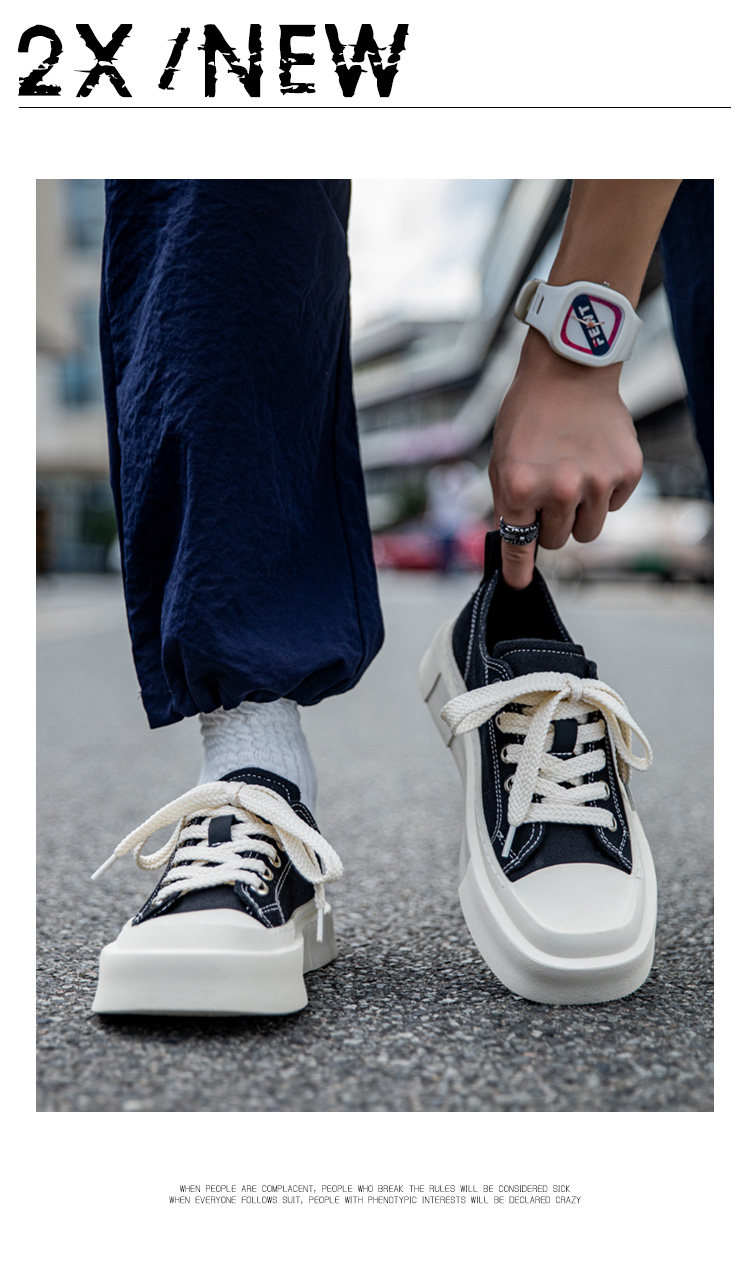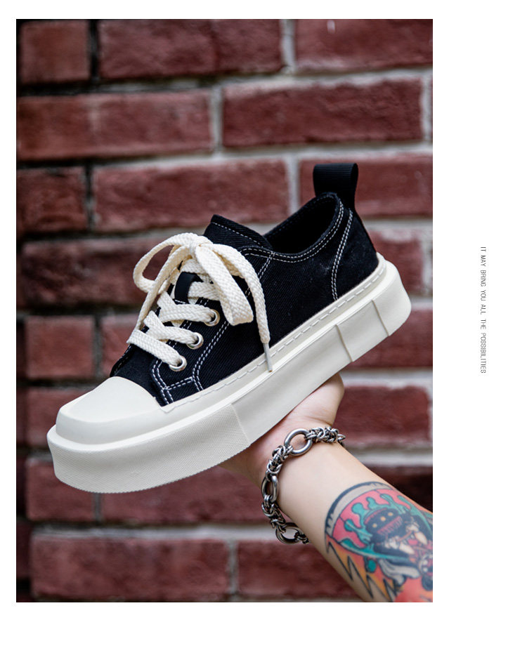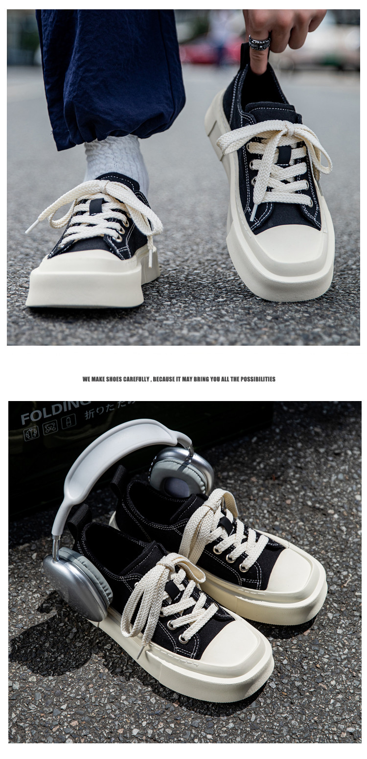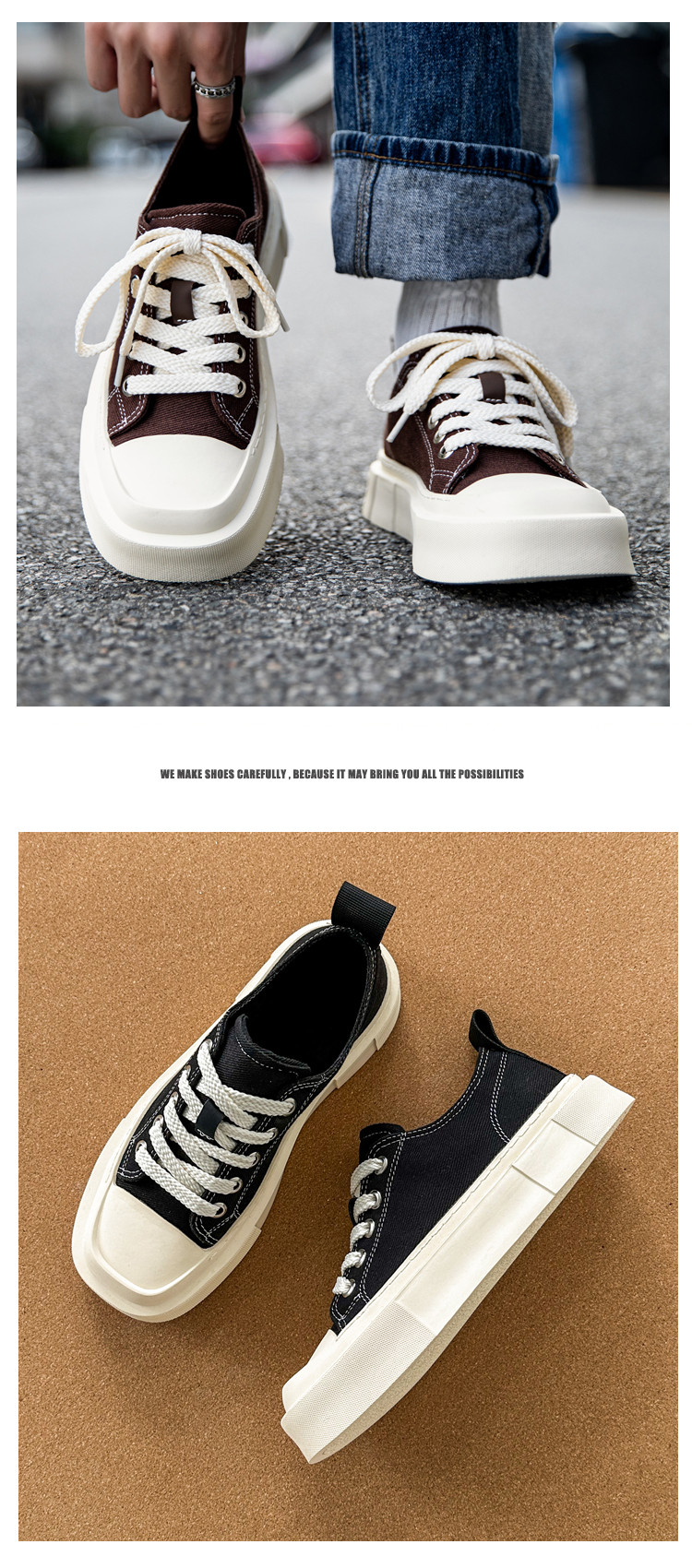 Canvas Shoes for Men, Summer Thick-Soled Trendy Versatile Casual Shoes, Low-Top Breathable Korean Style Black Soft-Soled Sports Sneakers