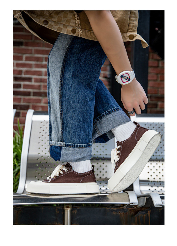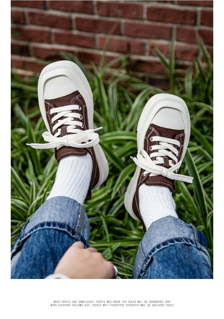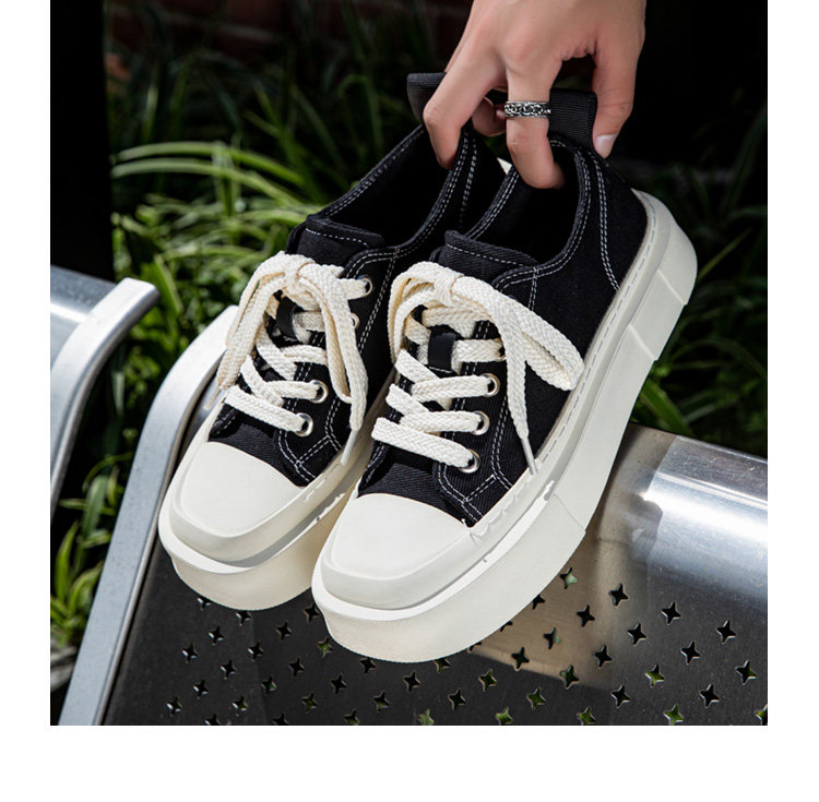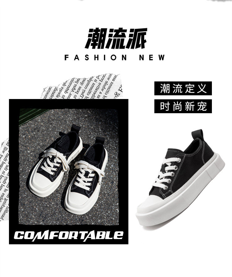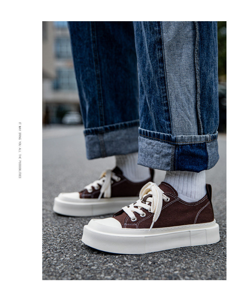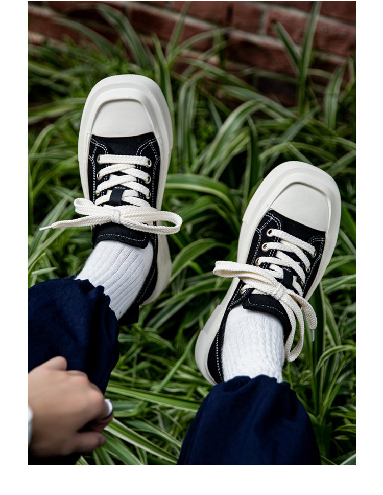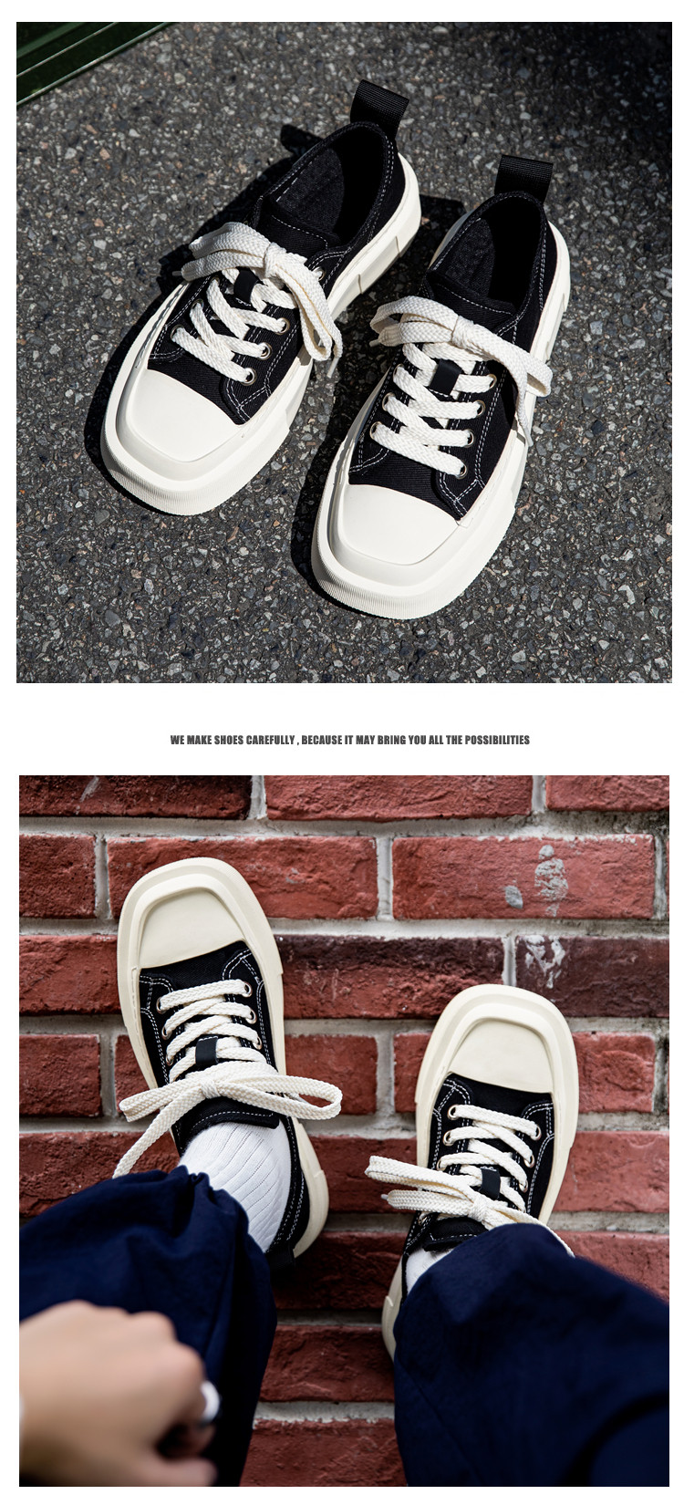 Canvas Shoes for Men, Summer Thick-Soled Trendy Versatile Casual Shoes, Low-Top Breathable Korean Style Black Soft-Soled Sports Sneakers