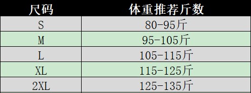 Sort by color Pink +S recommended 80-95Jin Jin is equal to 0.5kg,Pink+M recommended 95-105Jin Jin is equal to 0.5kg,Pink + L recommended 105-115 Jin Jin equals 0.5 kg,Pink+XL recommended 115-125Jin Jin is equal to 0.5kg,Pink +2XL recommended 125-135Jin Jin is equal to 0.5kg,White +S recommended 80-95Jin Jin is equal to 0.5kg,White + M recommended 95-105 Jin Jin equals 0.5 kg,White + L recommended 105-115 Jin Jin equals 0.5 kg,White+XL recommended 115-125Jin Jin is equal to 0.5kg,White +2XL recommended 125-135Jin Jin is equal to 0.5kg,Black +S recommended 80-95Jin Jin equals 0.5kg,Black+M recommended 95-105Jin Jin is equal to 0.5kg,Black+L recommended 105-115Jin Jin is equal to 0.5kg,Black+XL recommended 115-125Jin Jin is equal to 0.5kg,Black +2XL recommended 125-135Jin Jin is equal to 0.5kg