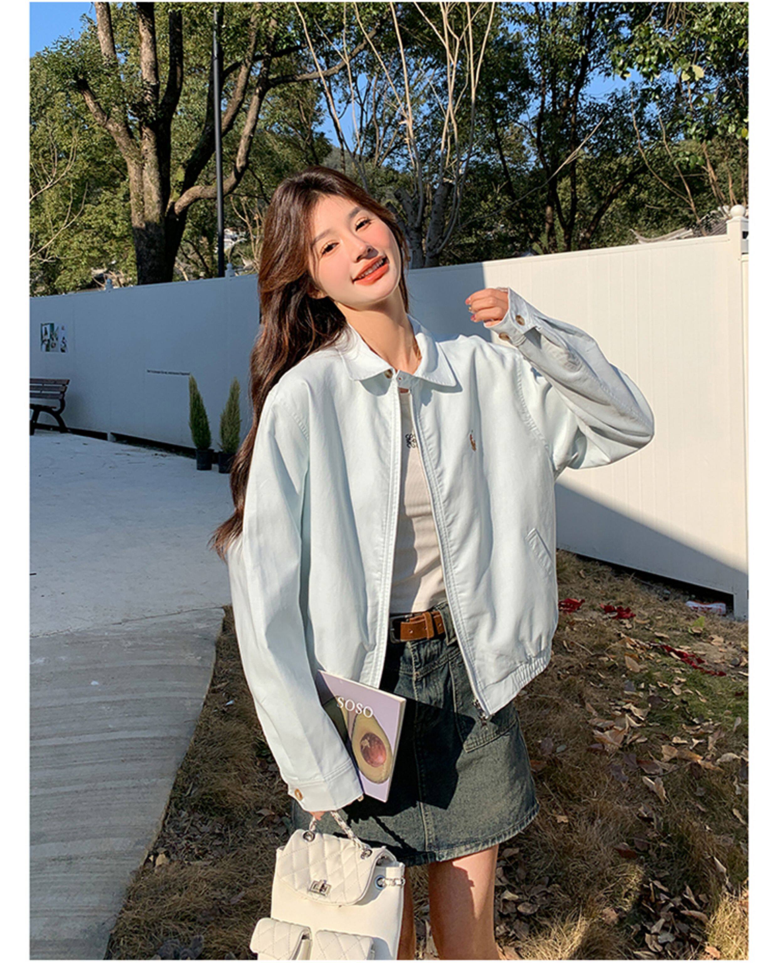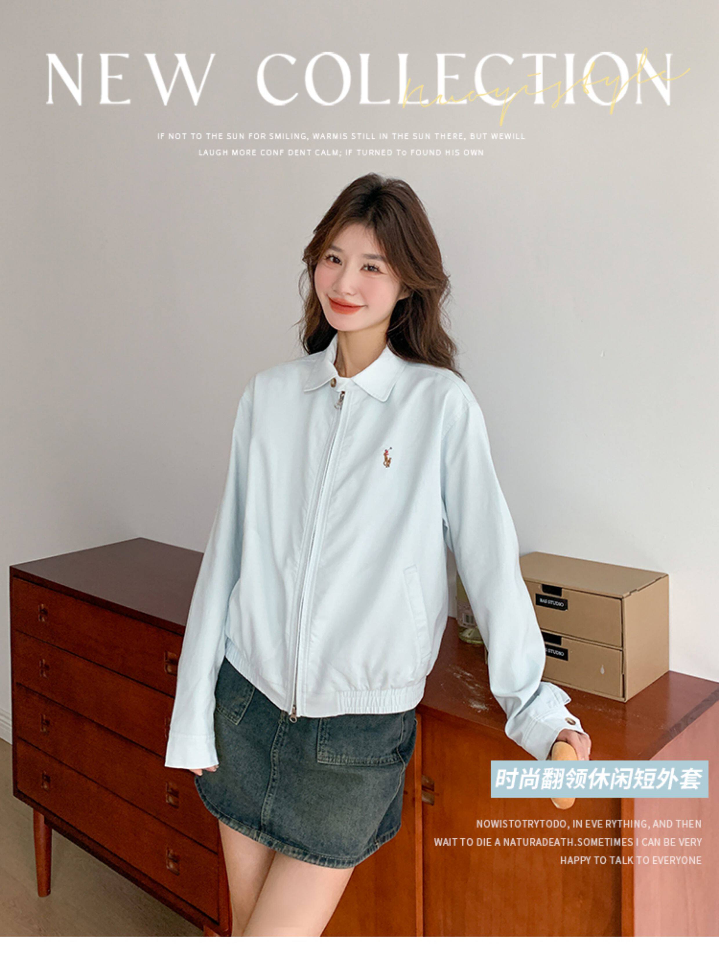 Blue Lapel Jacket for Women, 2026 Spring and Autumn New Popular Style, Super Trendy, Age-Reducing, Short Top for Petite Figures