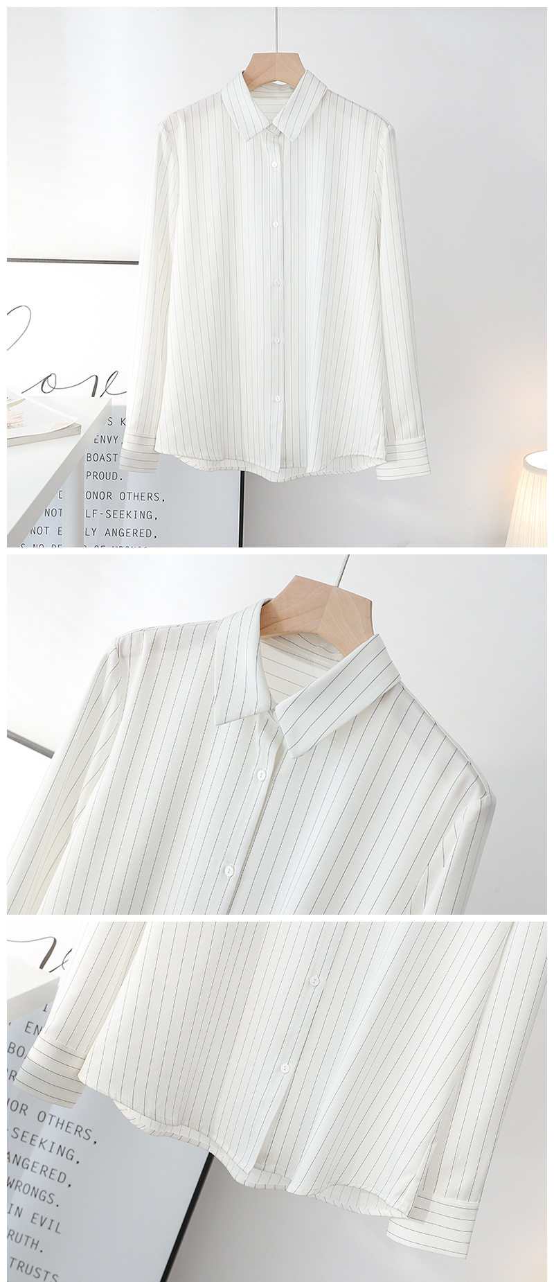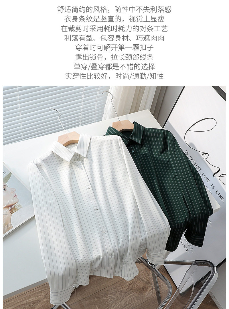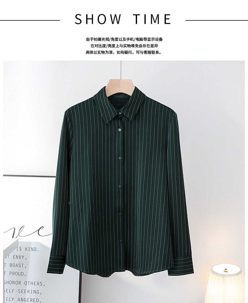 Classic versatile black and white striped chiffon shirt 2025 new slim commuting elegant dark green shirt for women