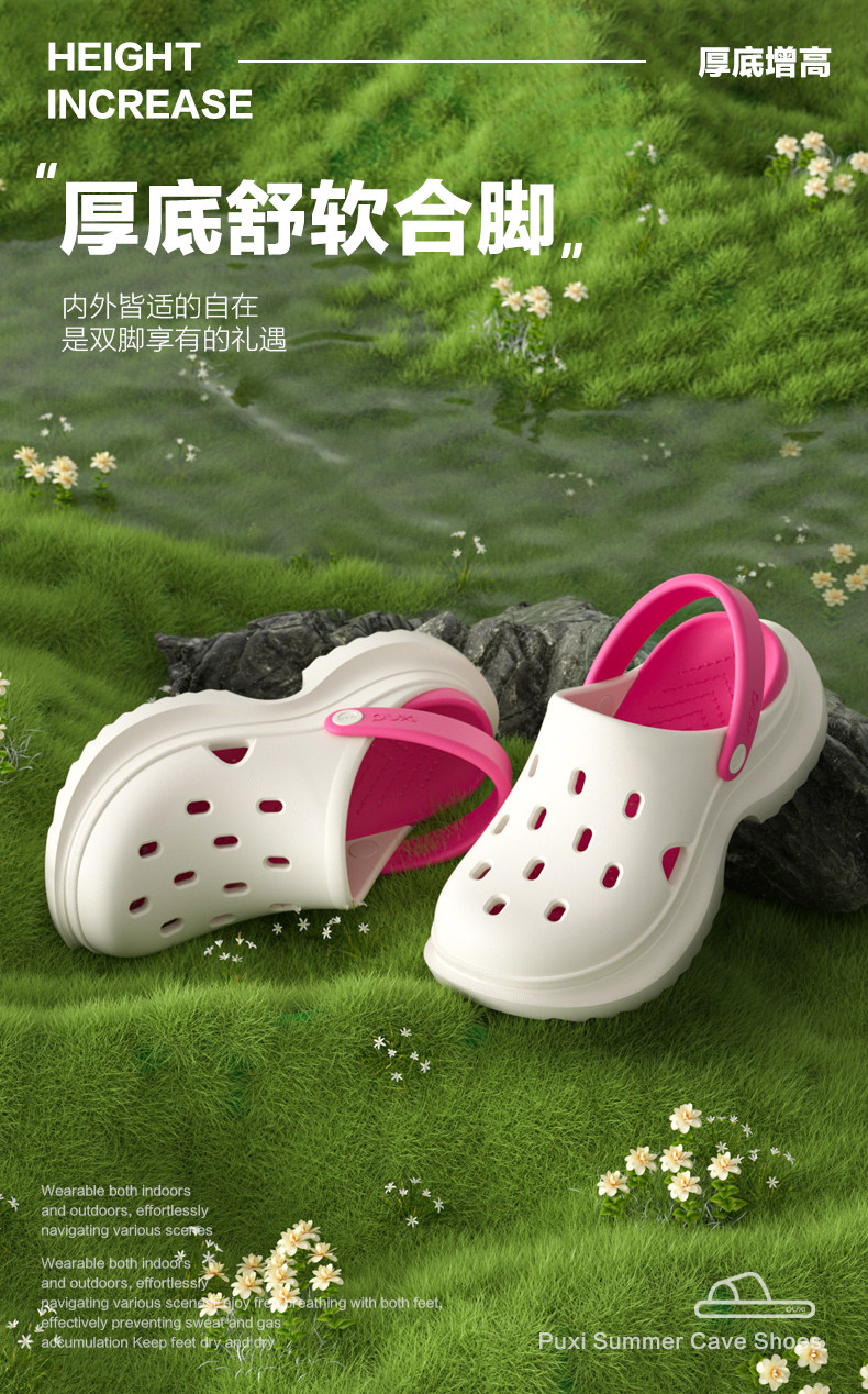 Puxi's new EVA Crocs women's thick-soled increased summer non-slip soft-soled toe-cap outer beach sandals and slippers