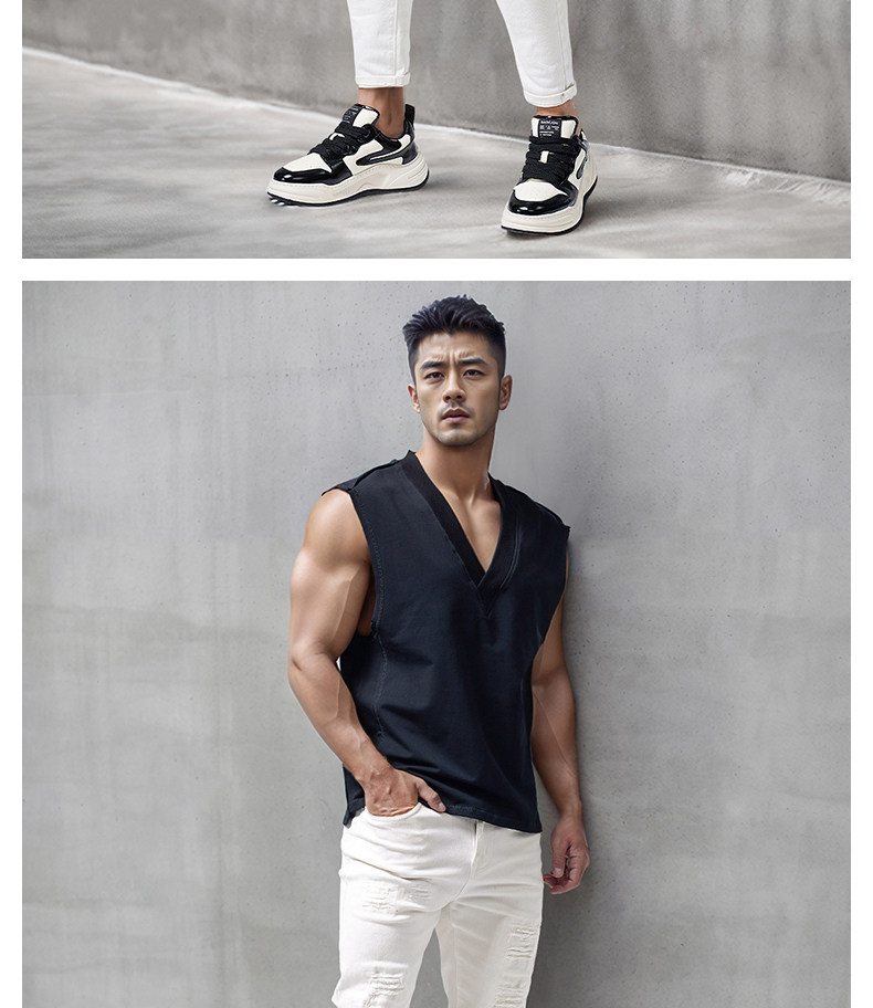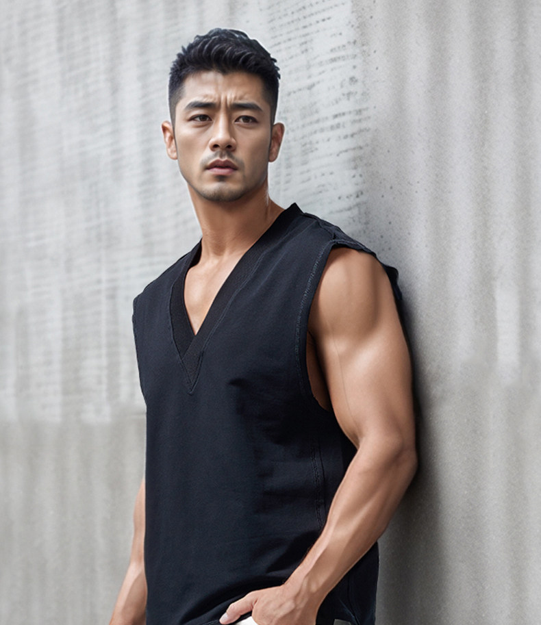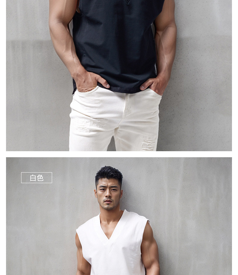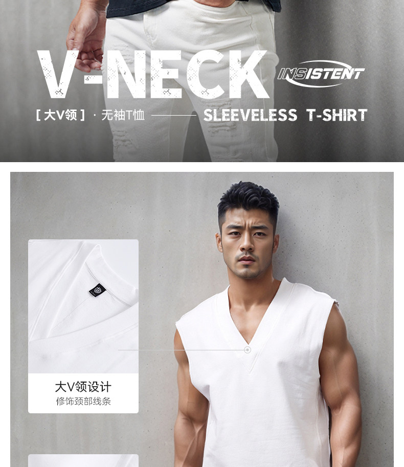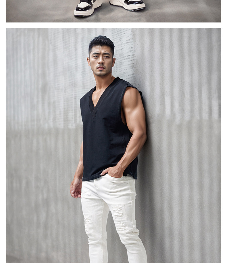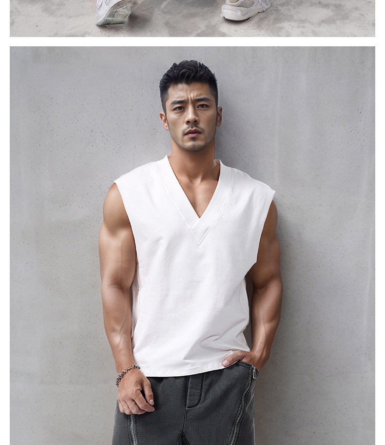 Heavyweight V-Neck Wide-Shoulder Tank Top for Men, Loose Fit, Sports Fitness, Sleeveless, Solid Color Cotton, Sleeveless T-Shirt for Men, Summer Vest