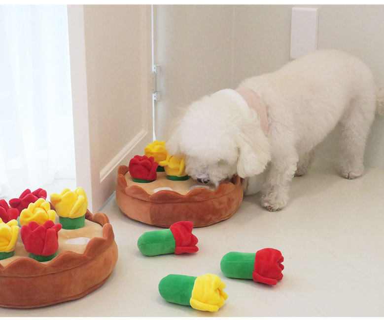 ins Wind Tulip Hidden Treat Toy Set Pet Bb Barking Dog Interactive Toy Self-Entertainment Sound Toy Cute