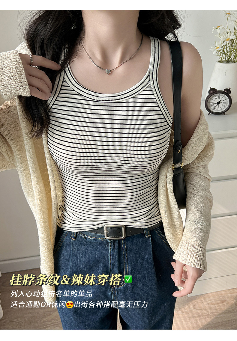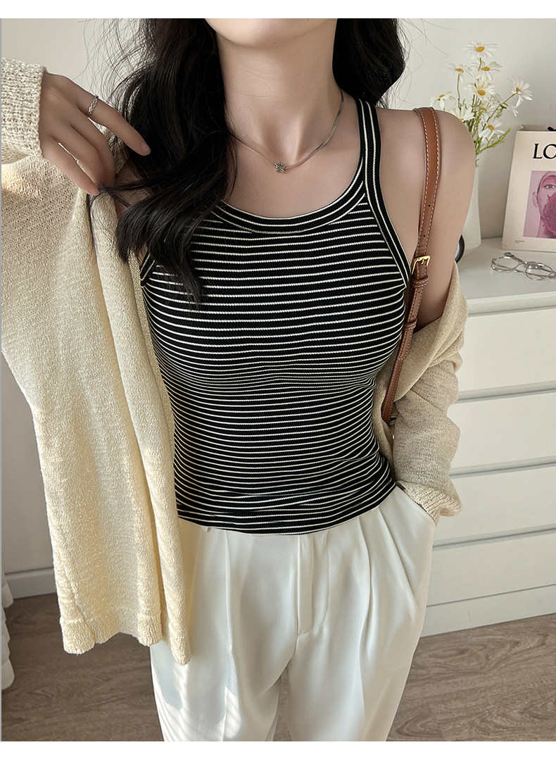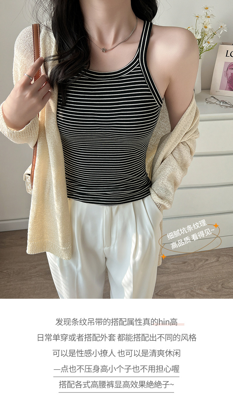 Striped Camisole for Women, Inner Layer or Outer Wear, Spring and Summer Thin Style, Sexy Backless, Slim Fit, Flattering Top
