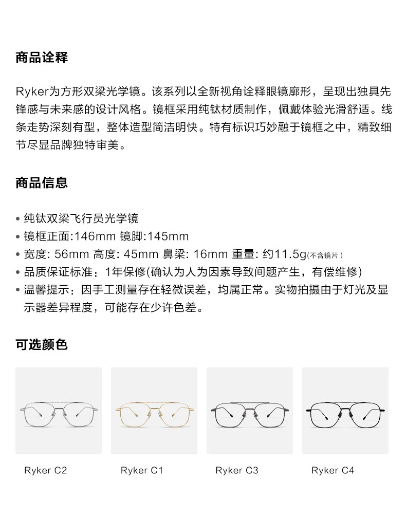 Sort by color Model's same style: light silver Ryker C2,Light gold Ryker C1,Light gun Ryker C3,Matt Black Ryker C4