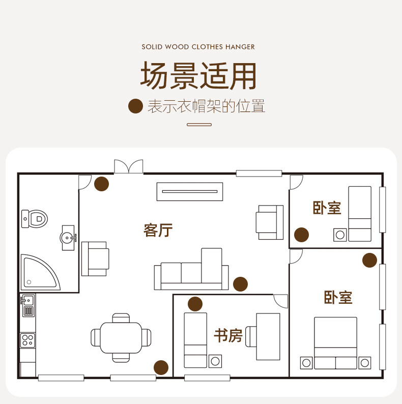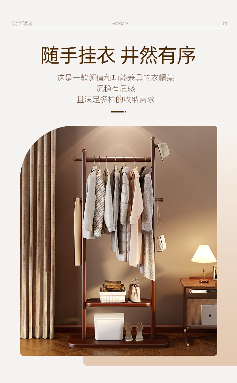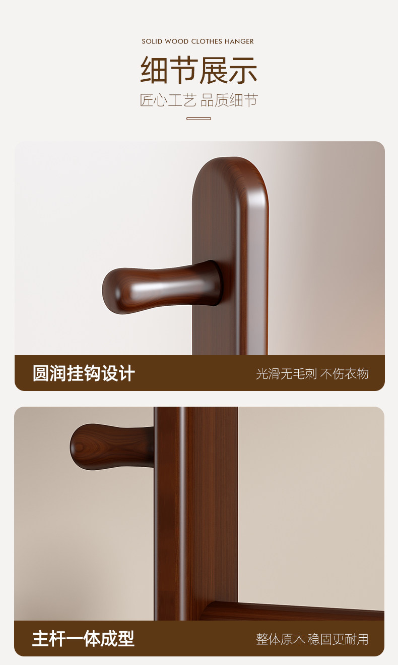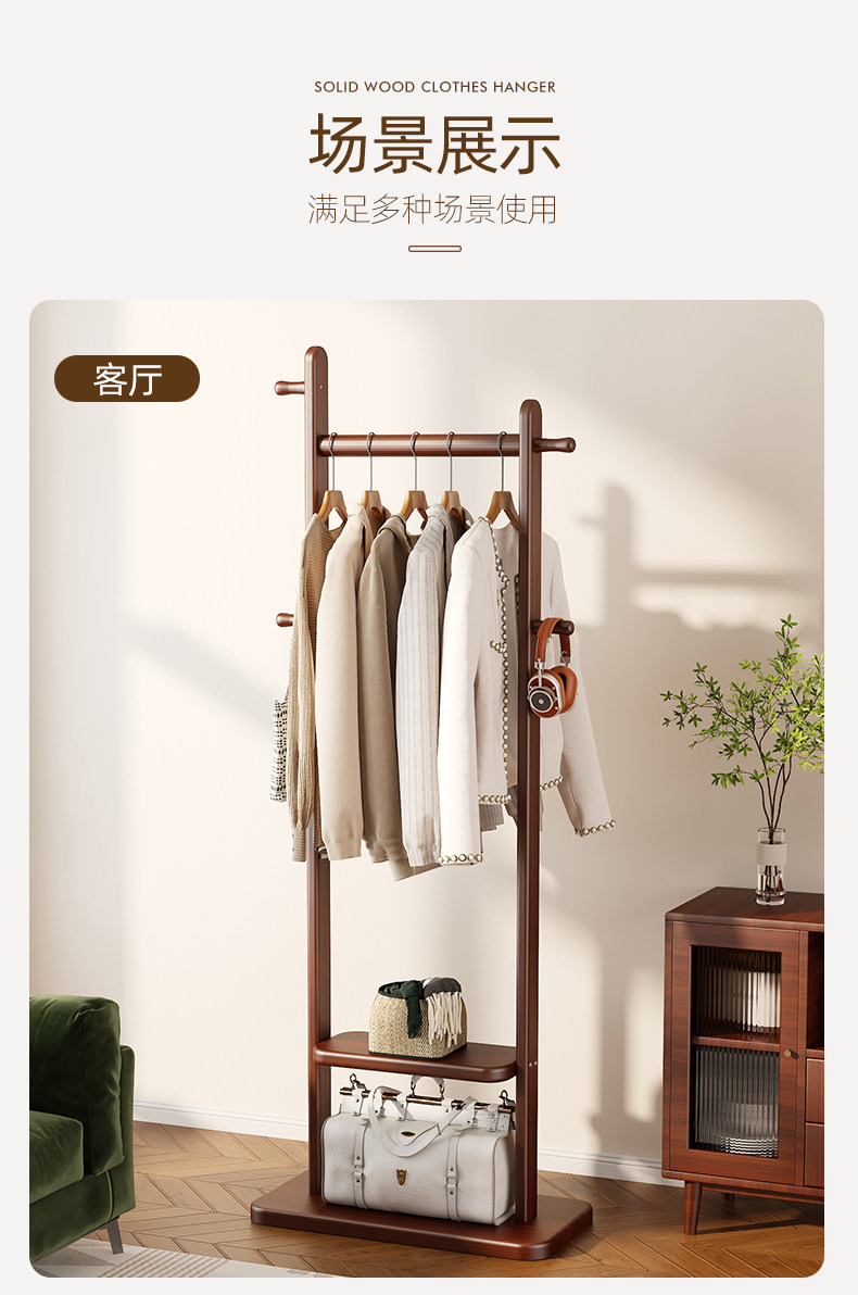 Black Walnut Color Solid Wood Floor-Standing Clothes Rack for Bedroom, Simple Home Use Clothes and Hat Rack, Clothes Hanging Rod