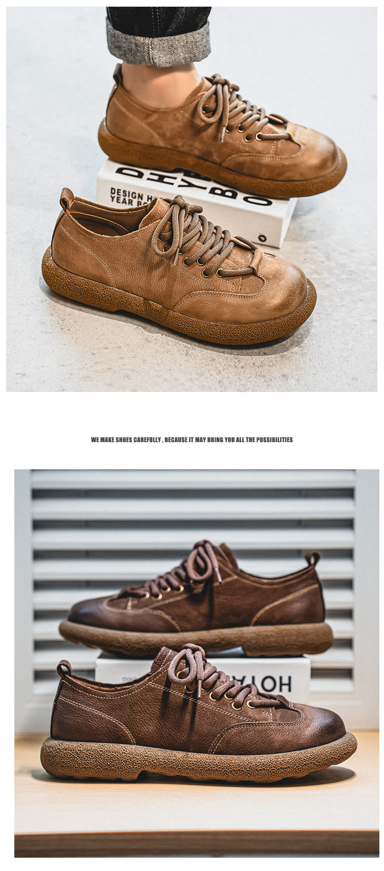 First-layer cowhide casual men's shoes, low-cut new winter big-toe shoes, genuine leather, breathable, soft-soled, retro non-slip leather shoes