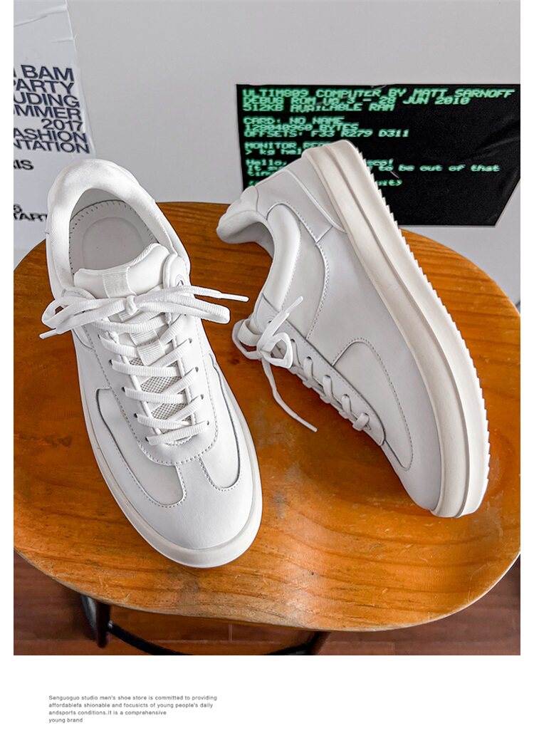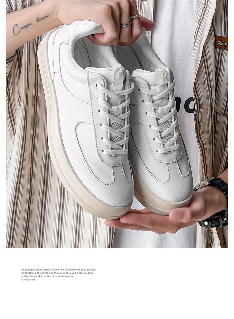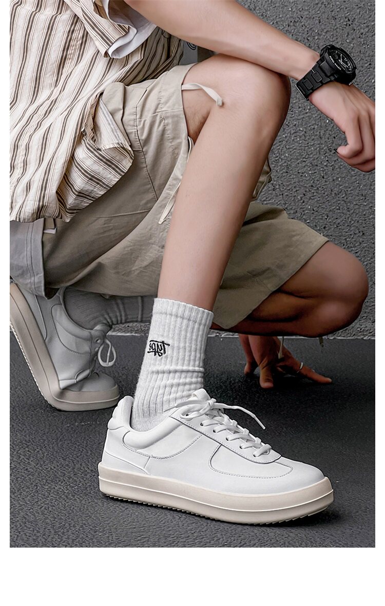 Men's Sneakers 2025 New Summer Style Genuine Leather Korean Fashion Casual Canvas Shoes Versatile Thick-Soled Breathable White Shoes