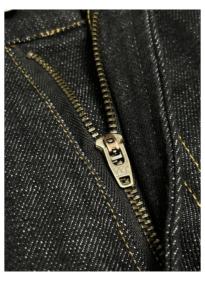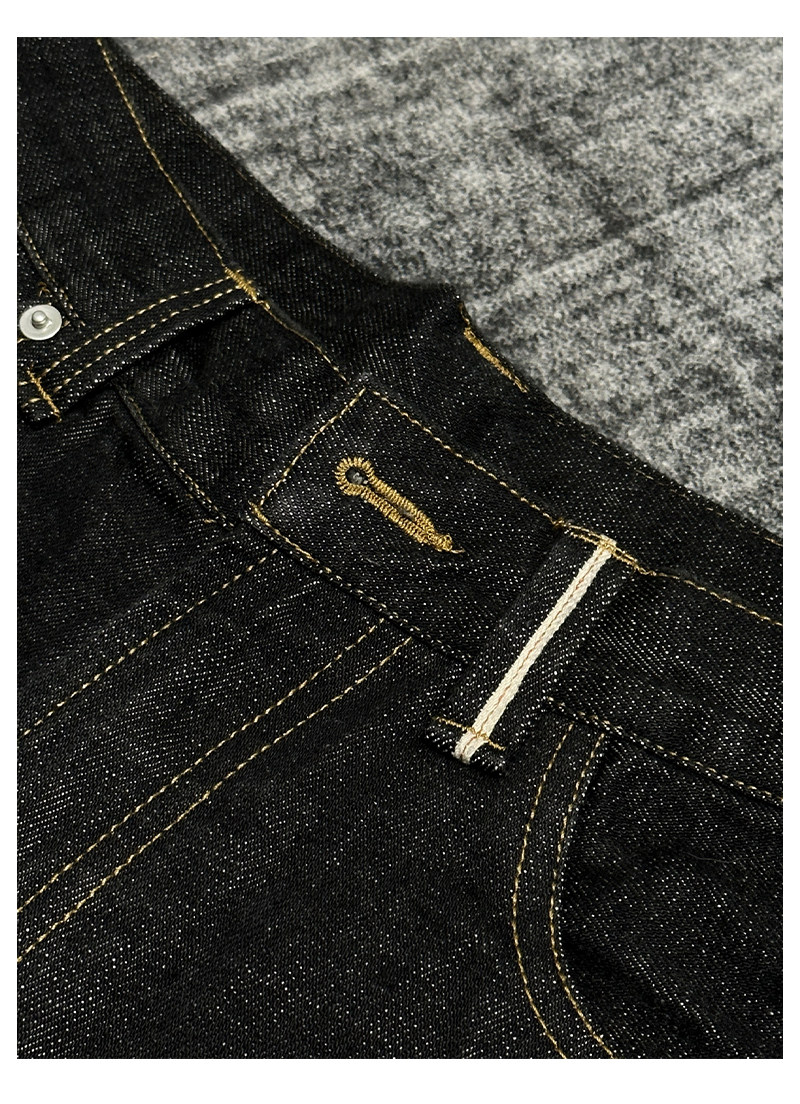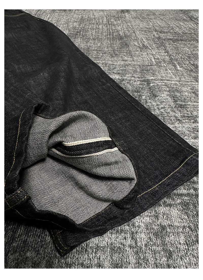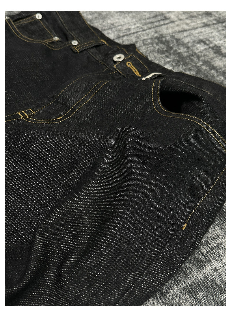 BlankMap black 14.5oz red eared narrow width raw cow straight wide leg loose A-line denim trousers for men