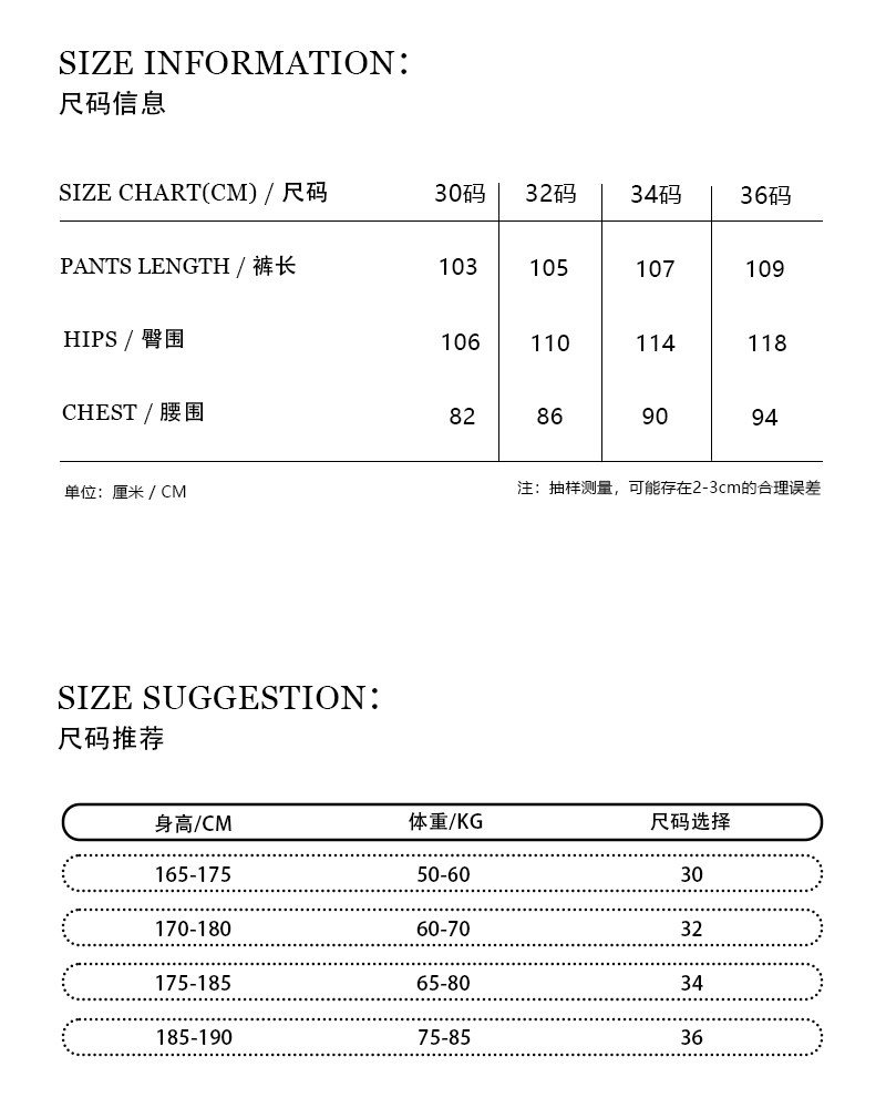 China (cm) 165 / 88-90 170 / 96-98 175 / 108-110 180 / 118-122 185 / 126-130