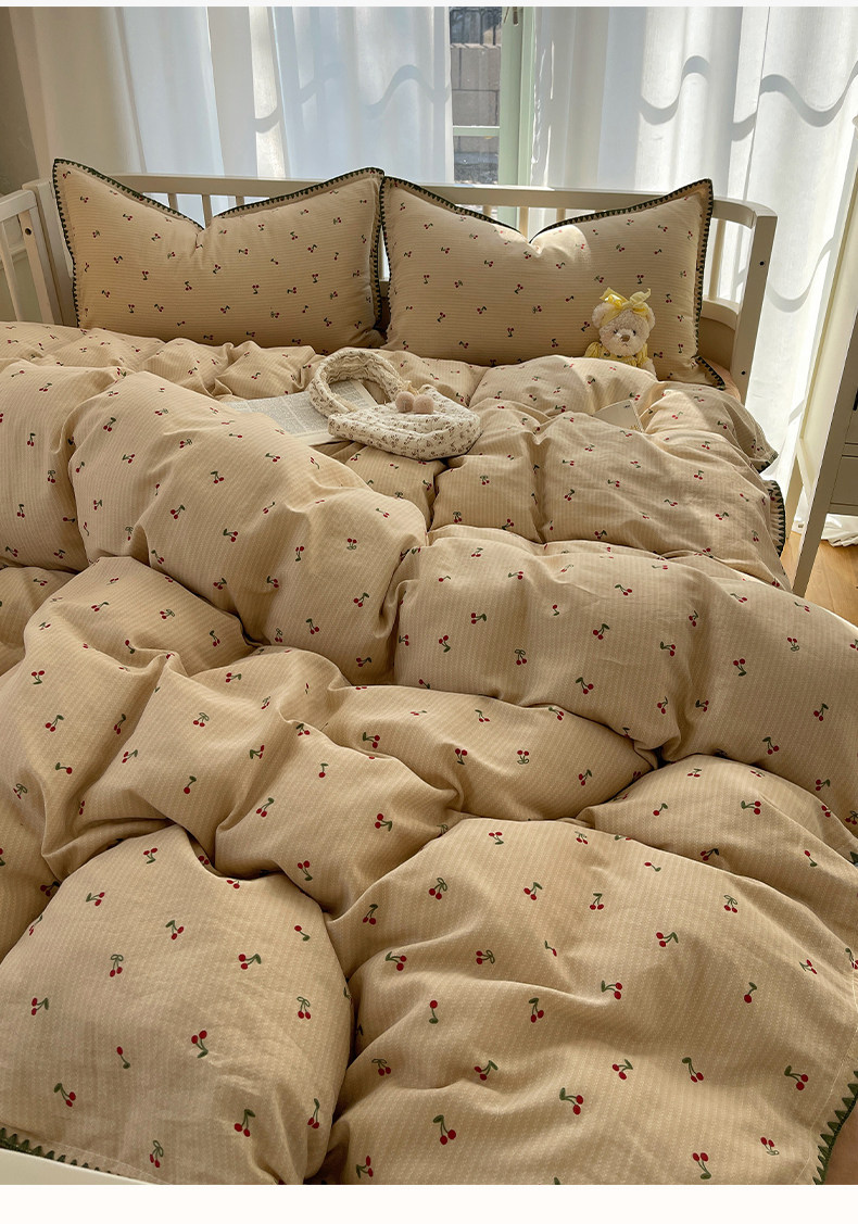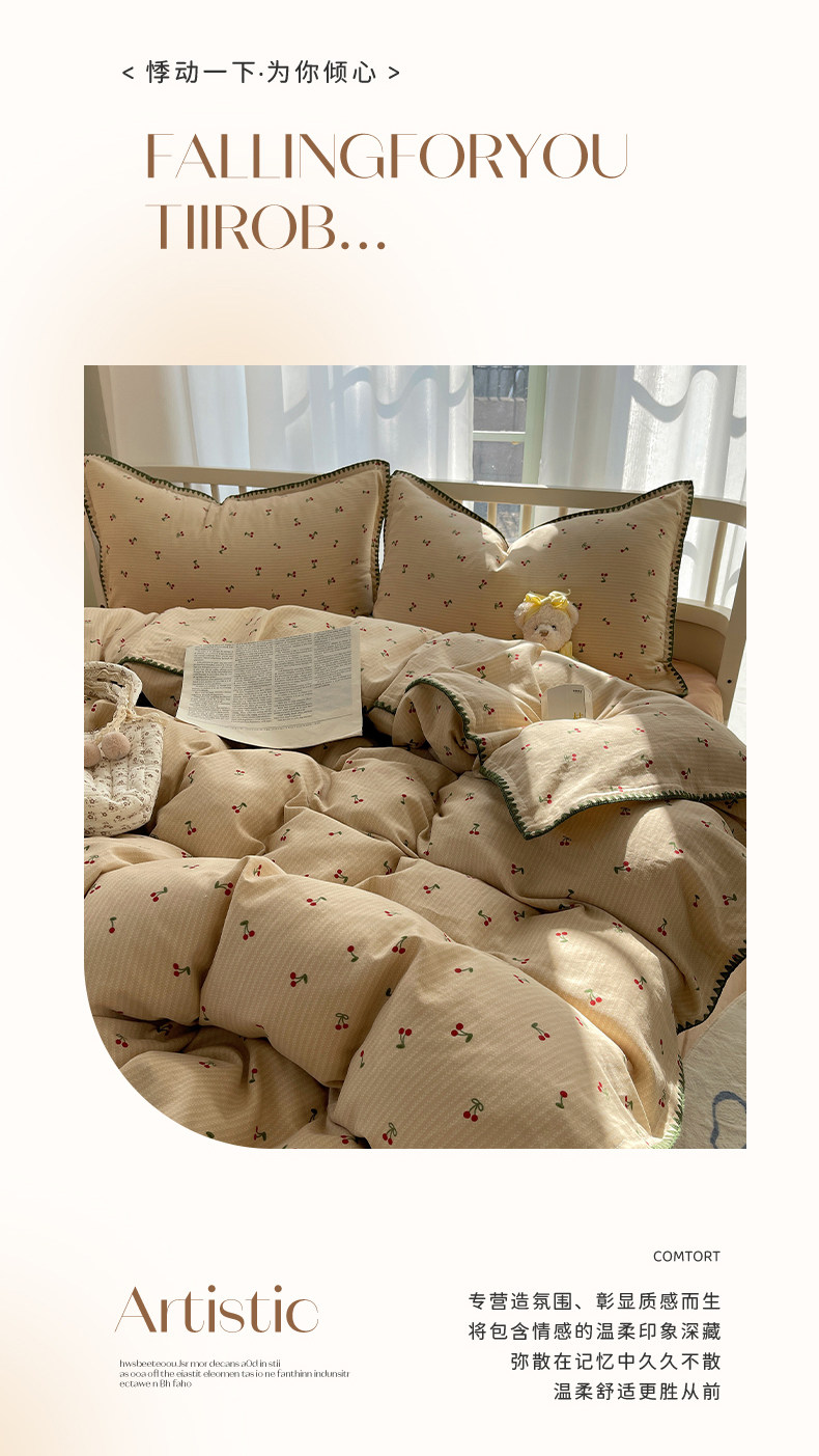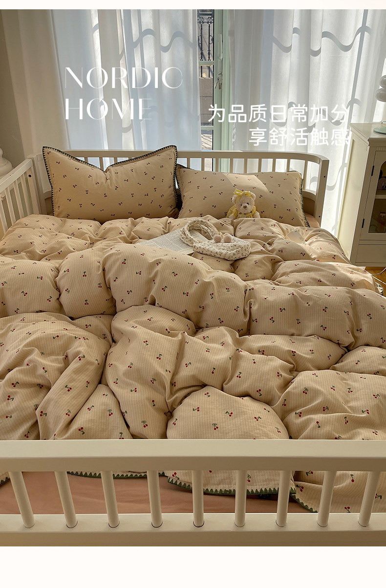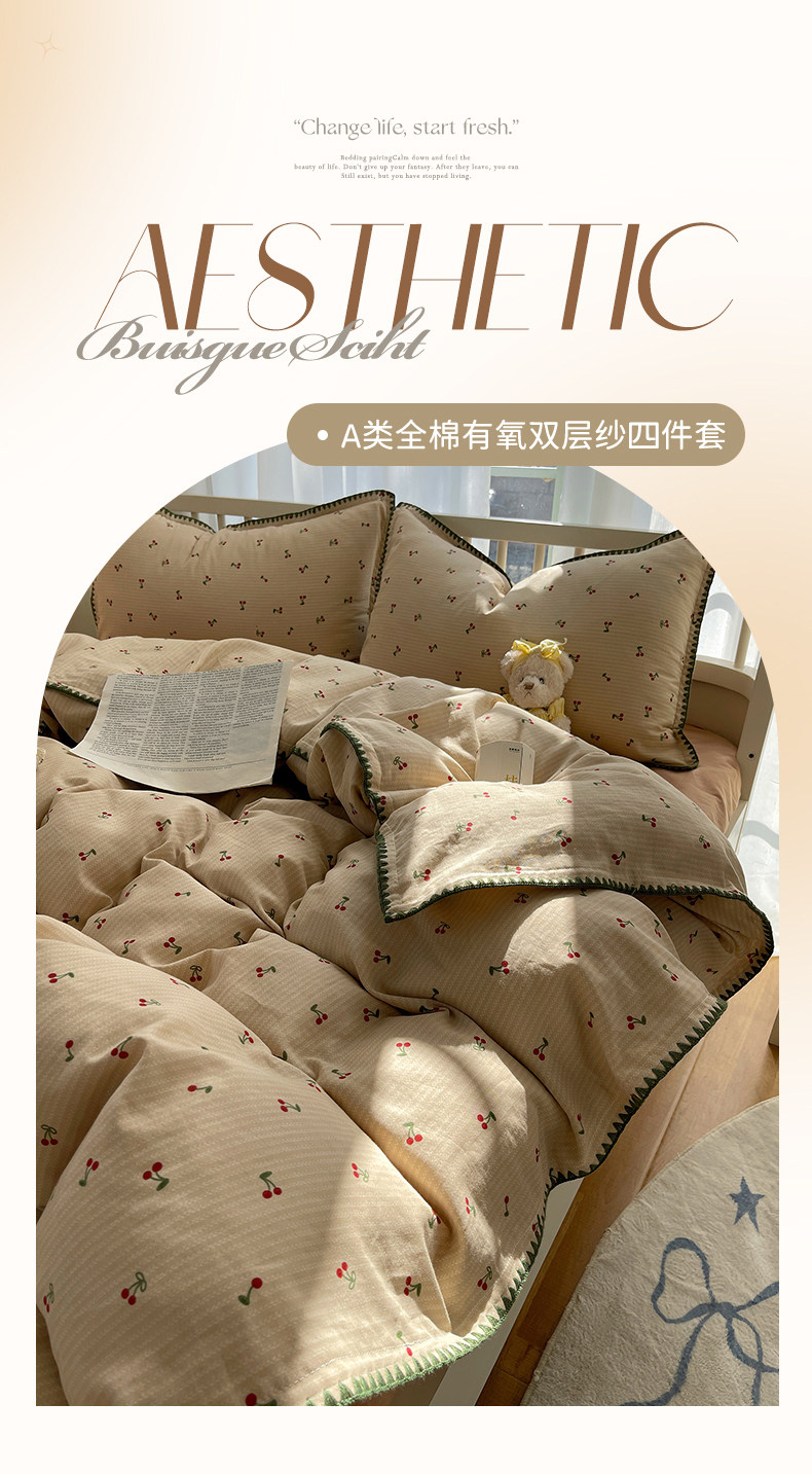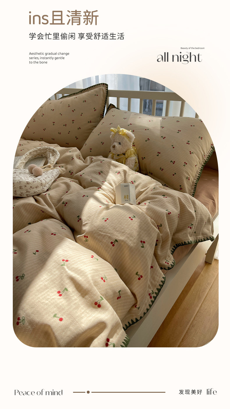 2025 new type A 100% cotton double-layer yarn four-piece set ins pure cotton bed sheet quilt cover bed sheet three-piece set